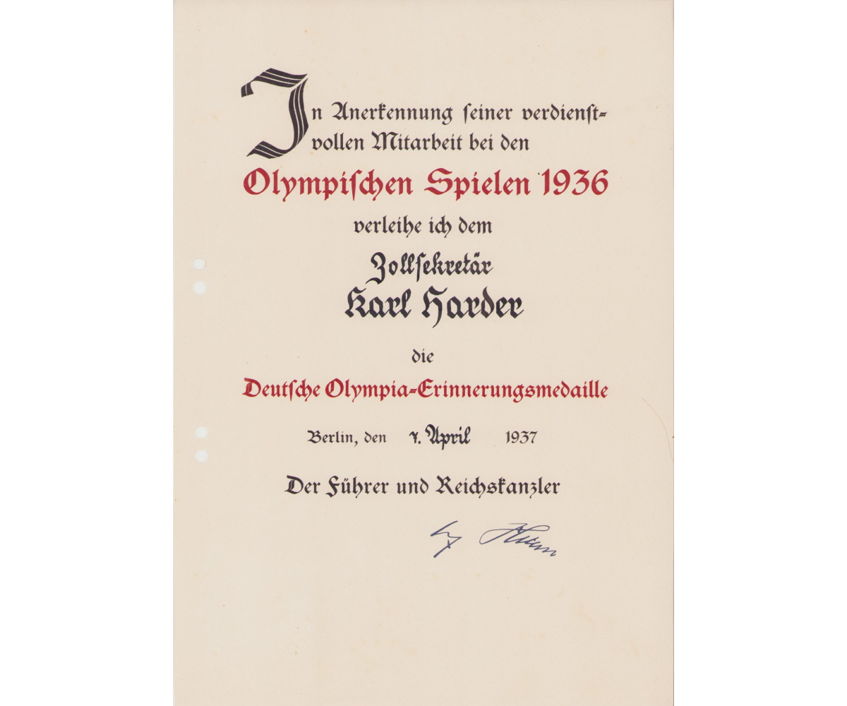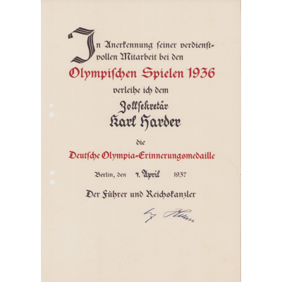 Very nice Olympischen Erinnerungsmedaille award document grouping in used, but very good condition.