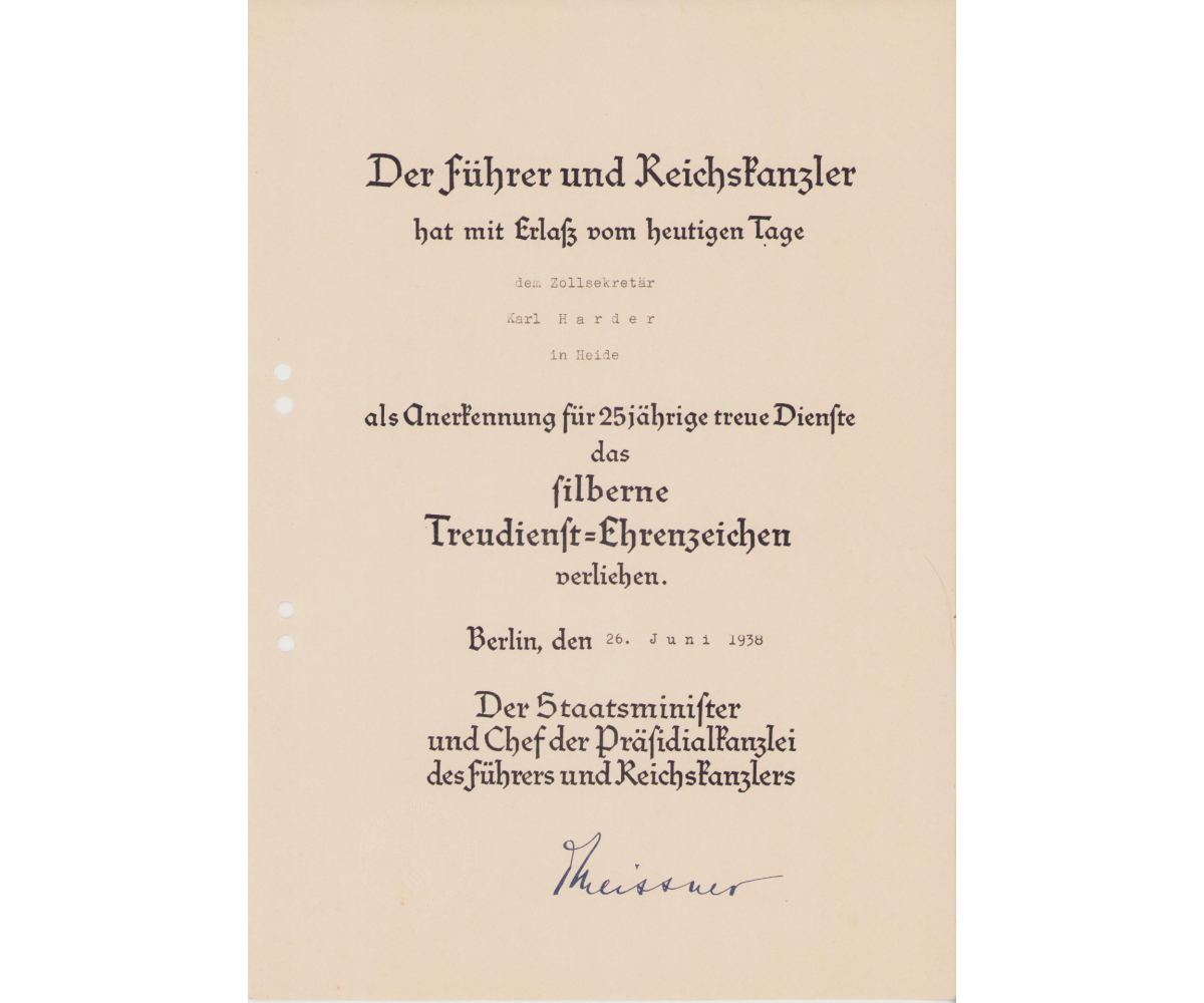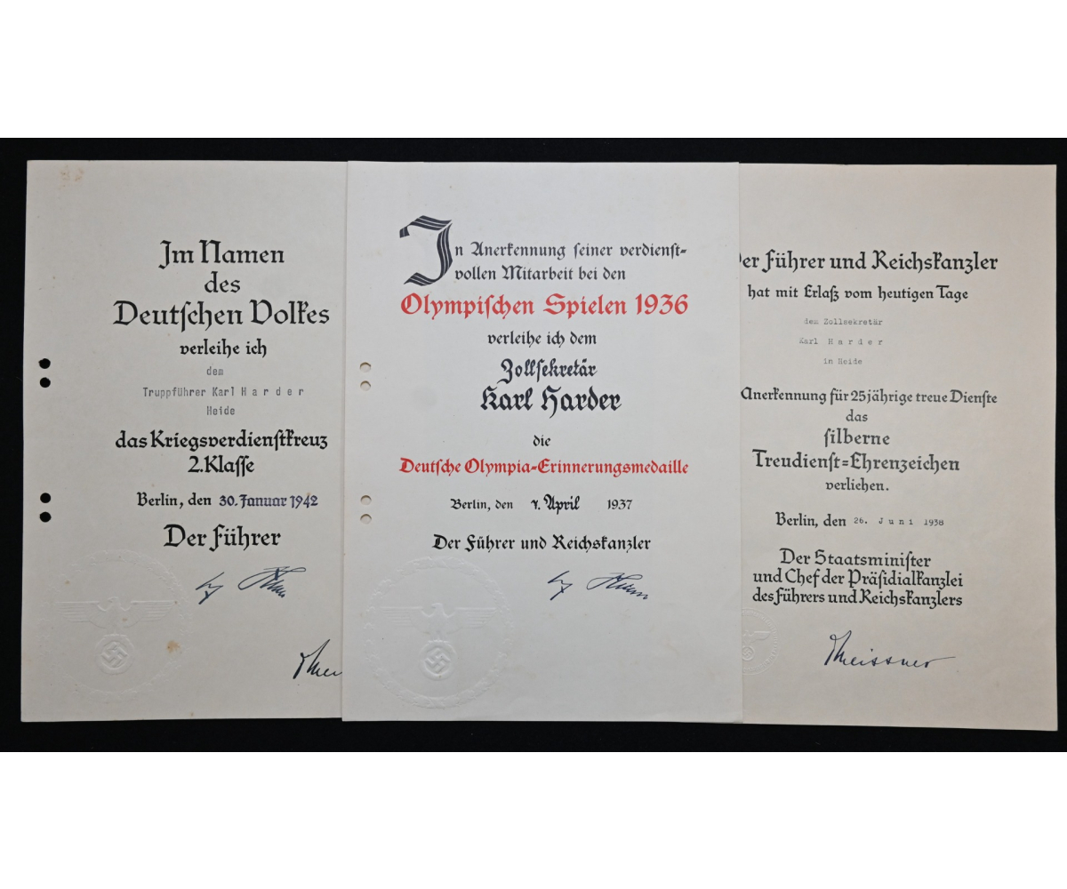 All document show overall normal signs of wear. They are named to Karl Harder who was a Zollsekretar from Heide.