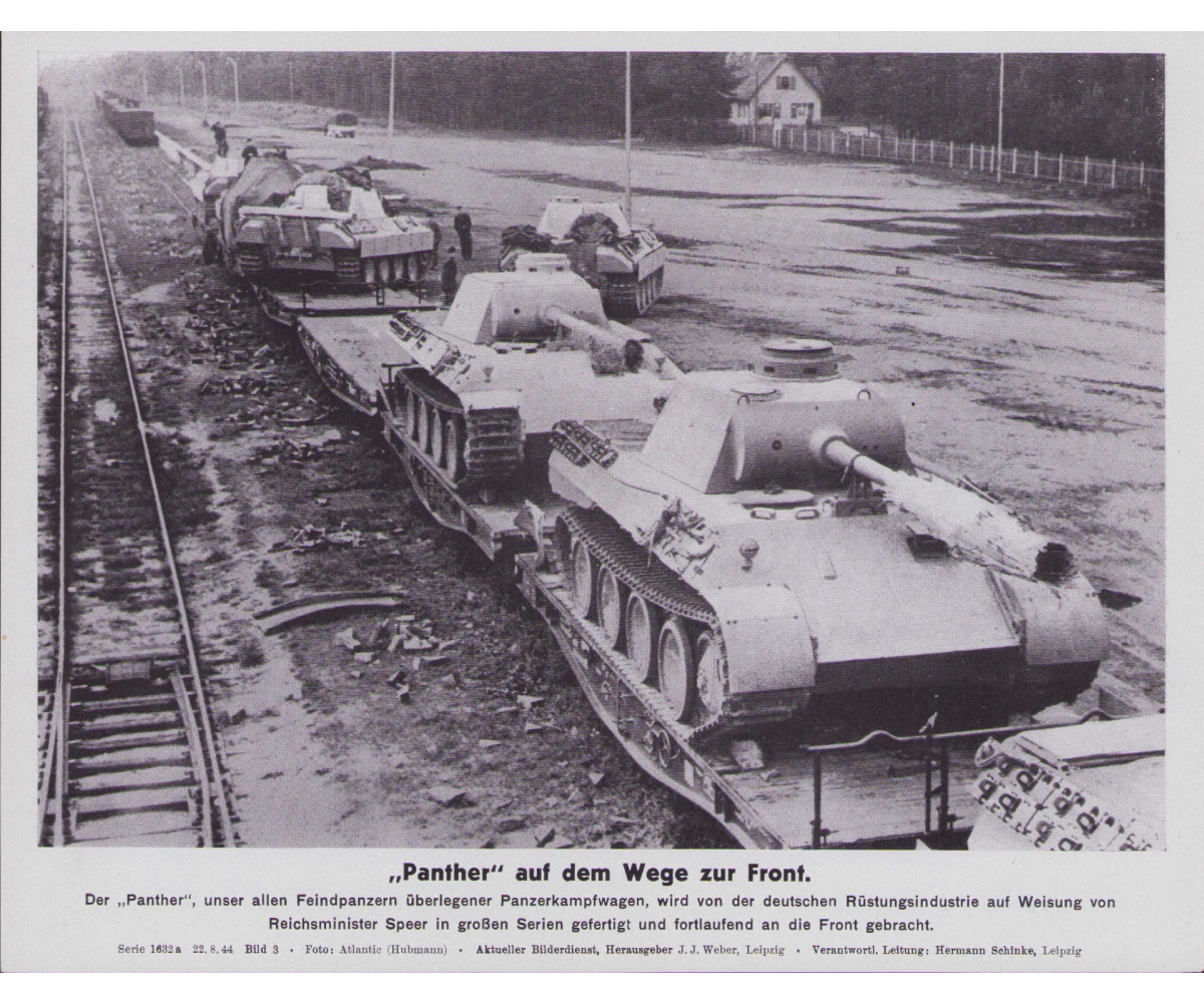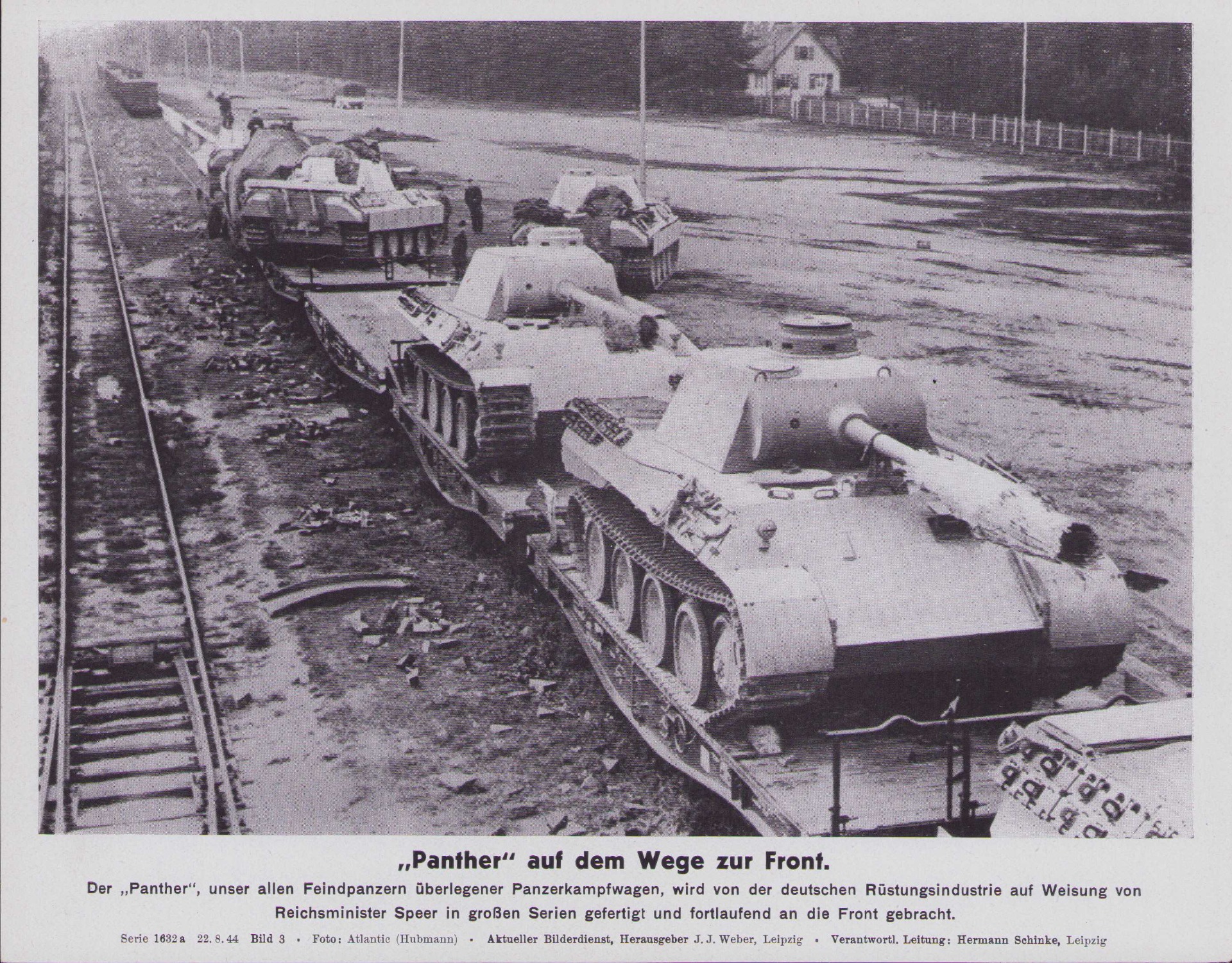 The photo shows overall normal signs of storage wear. Here brand new Panther tanks on a train are on their way to the front.