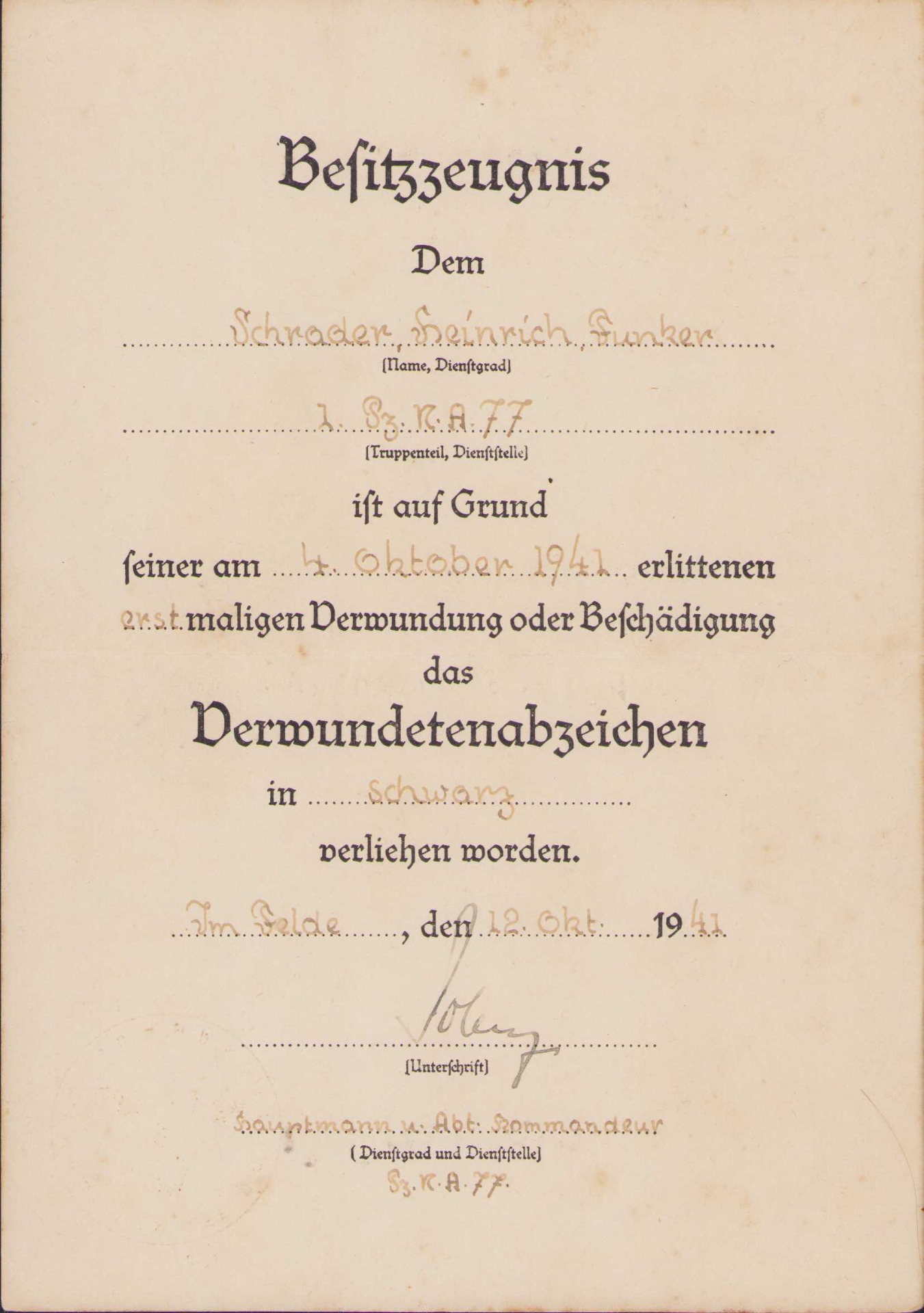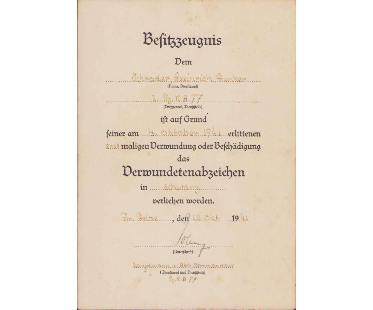 Very nice Panzergrenadier related wound badge award document in used, but very good condition.