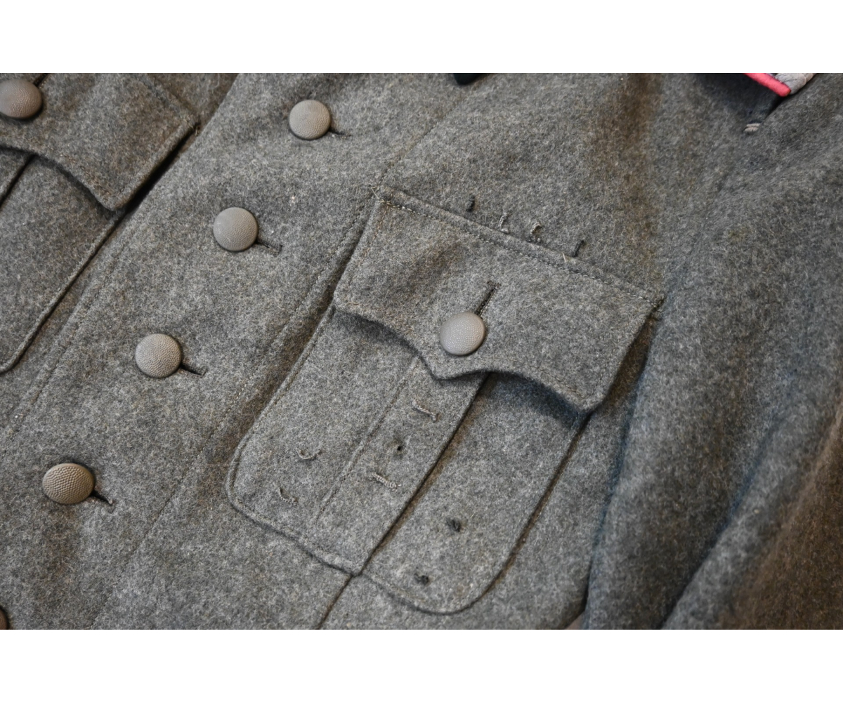 Besides the insignia, all buttons are present (some have been replaced) and the felbluse has multiple loops for medals and ribbons on and above the breast pockets (see photos).