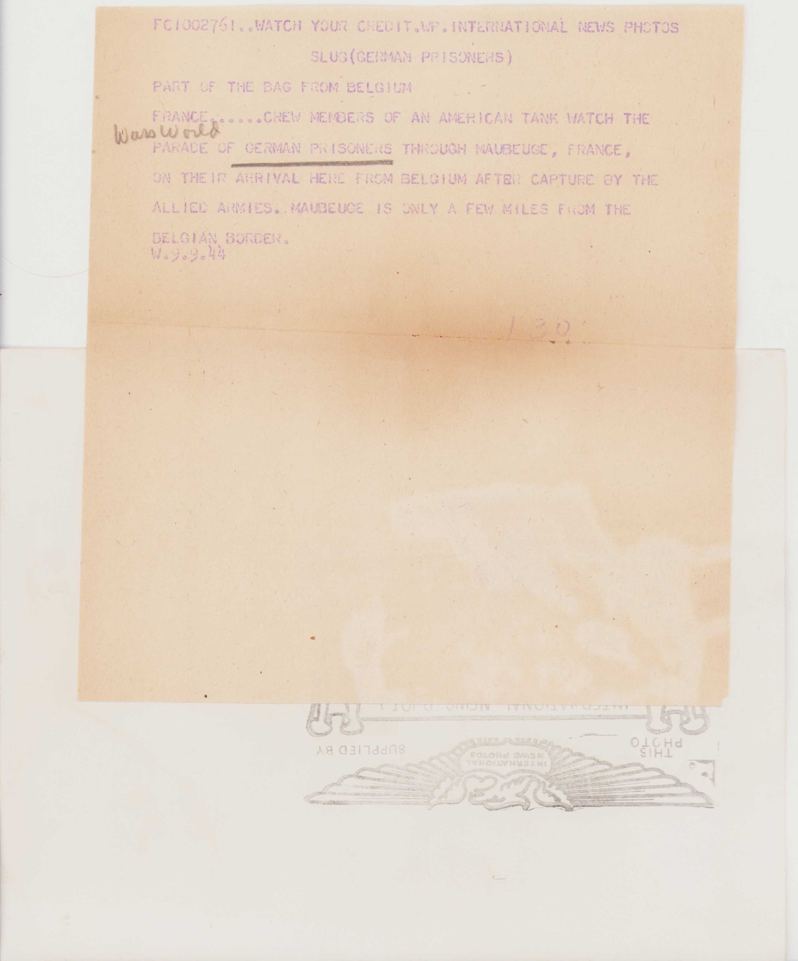 The release date of the photo was 9 September 1944. The size of the photograph is 22cms*17cms.
