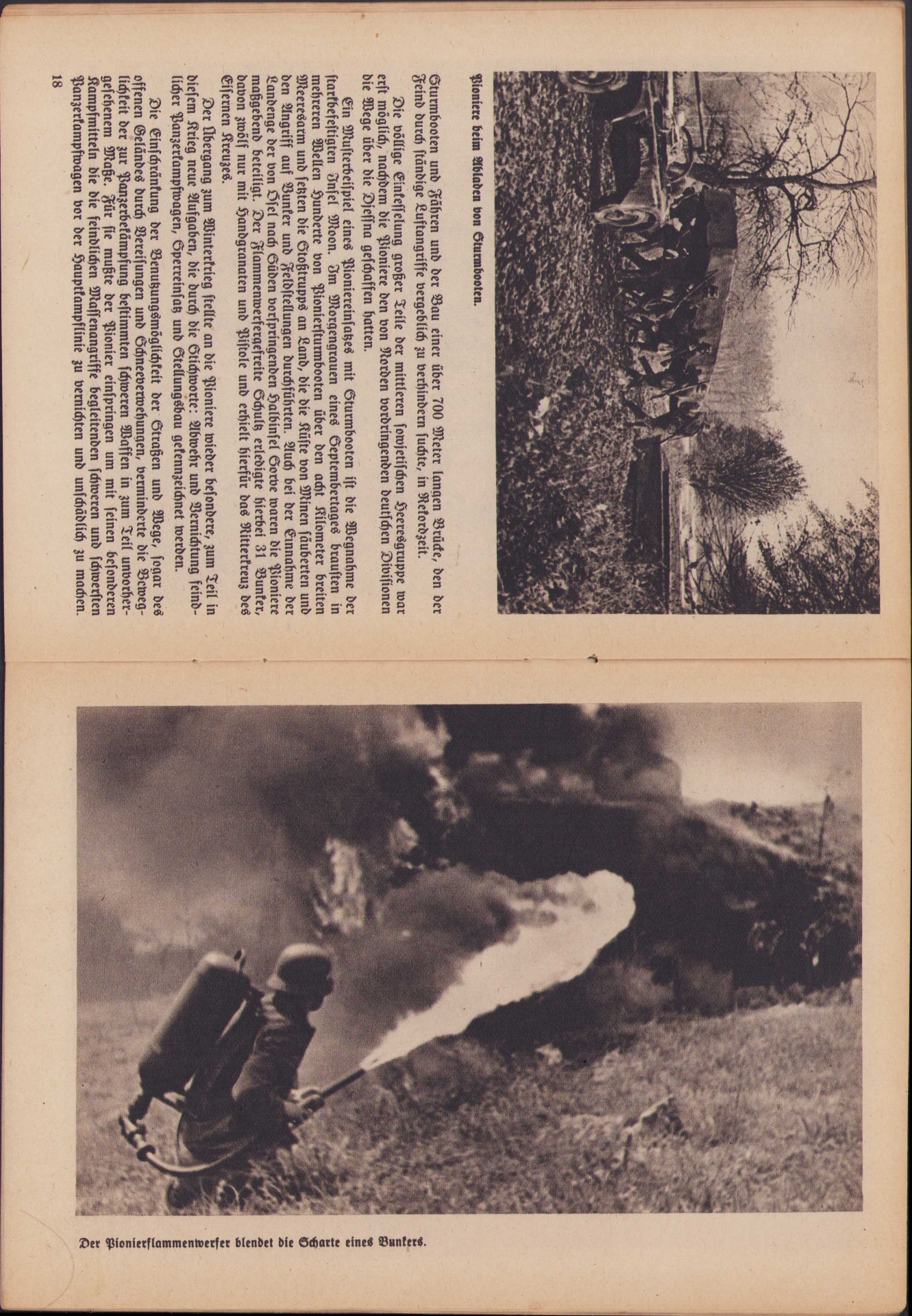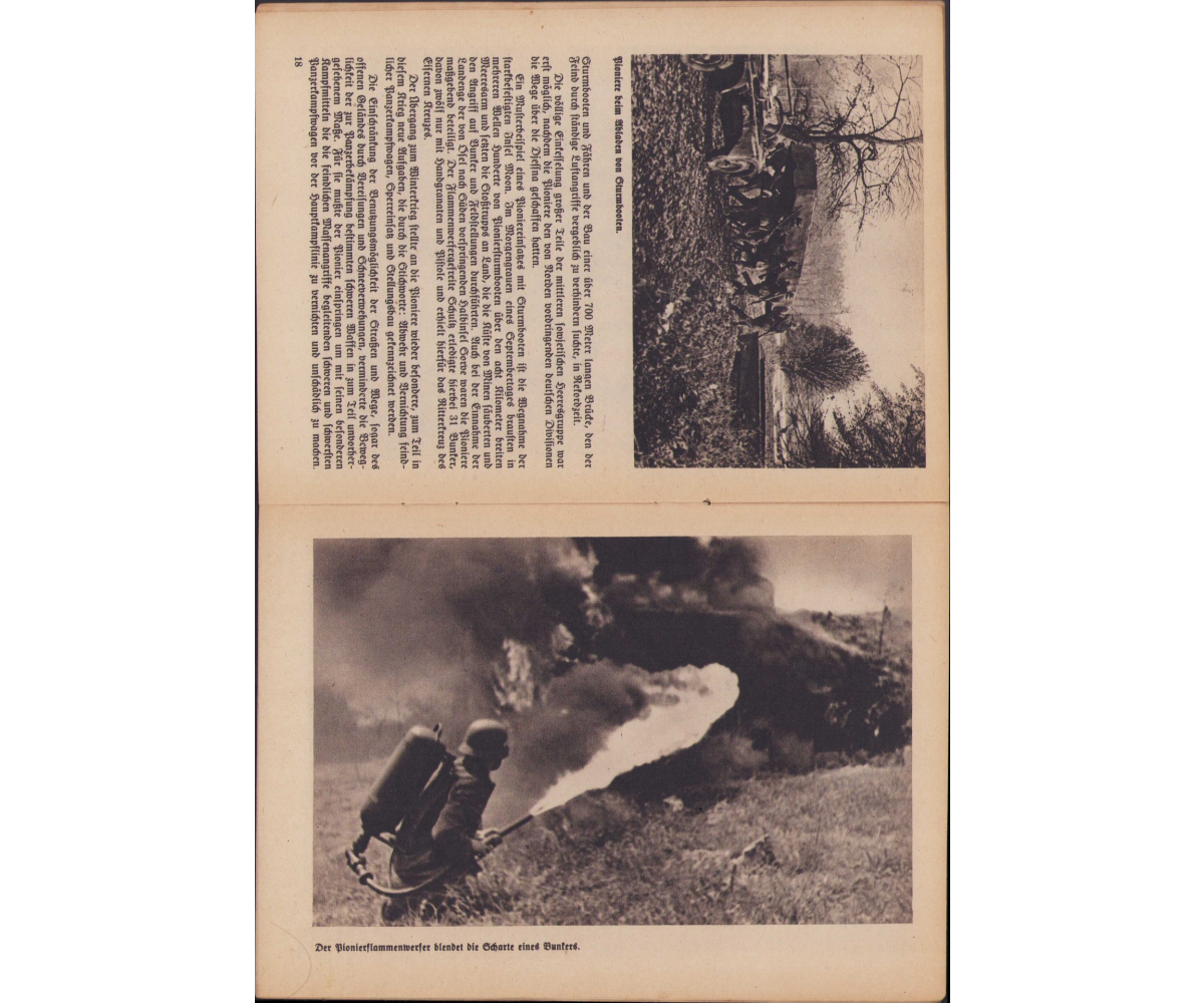 The booklet shows normal signs of use. It's solid and complete with all 31 pages. Consist out of interesting information and pictures of the engineer branche of the Wehrmacht.