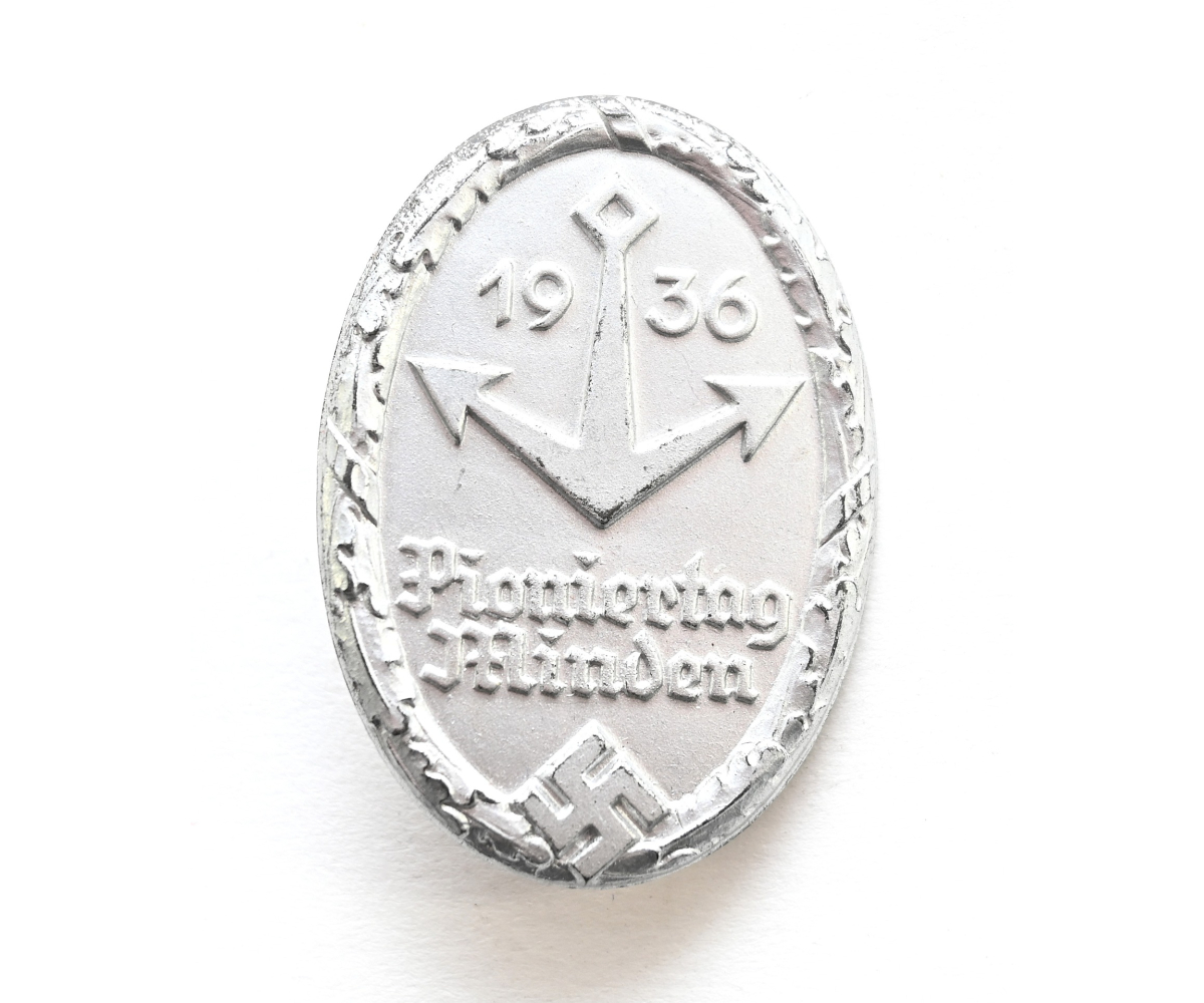 The badge or Abzeichen shows overall no signs of wear. It's complete with pin on the back. Issued during the Pioniertag in Minden in the year 1936.