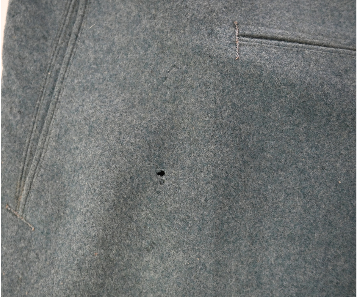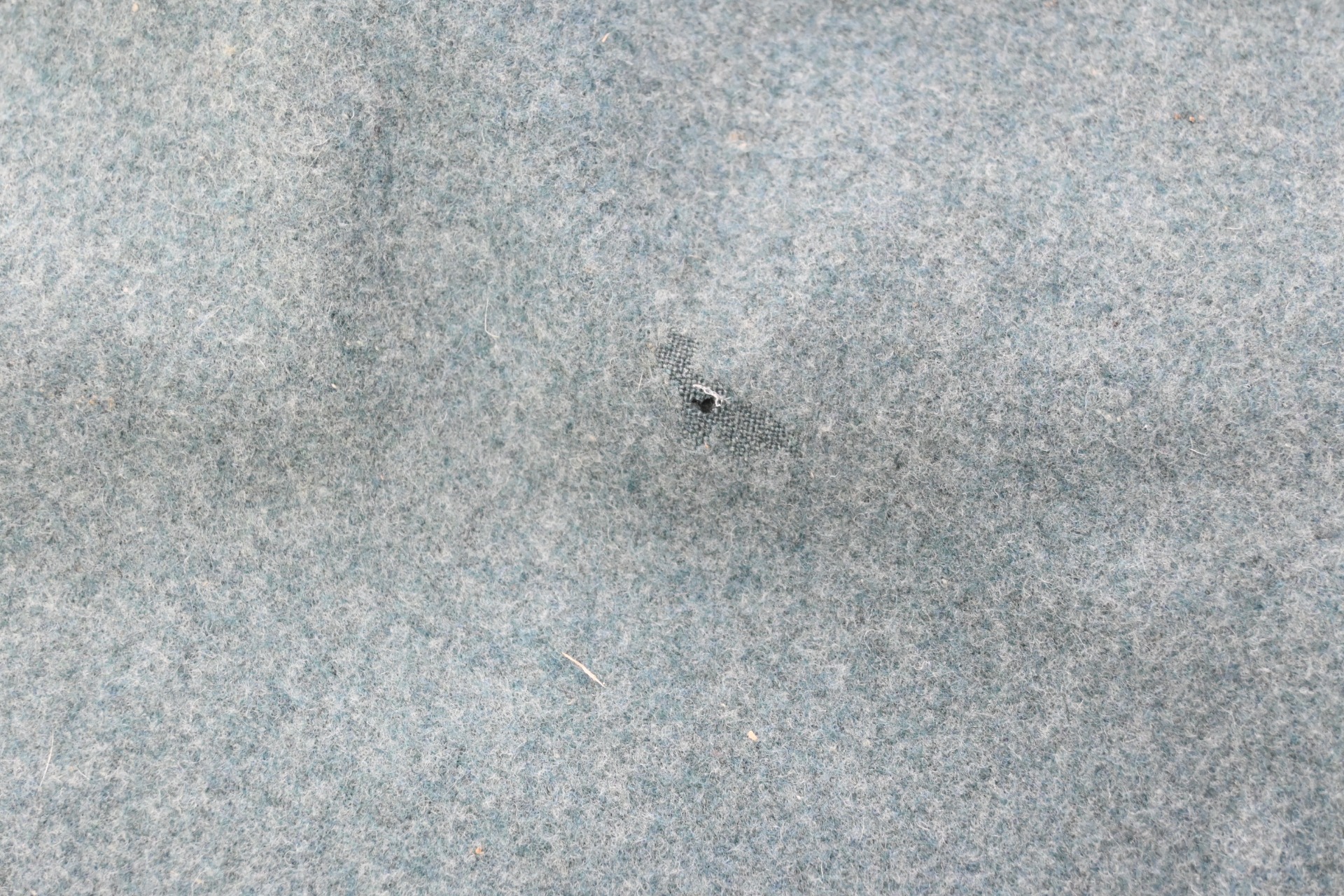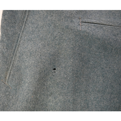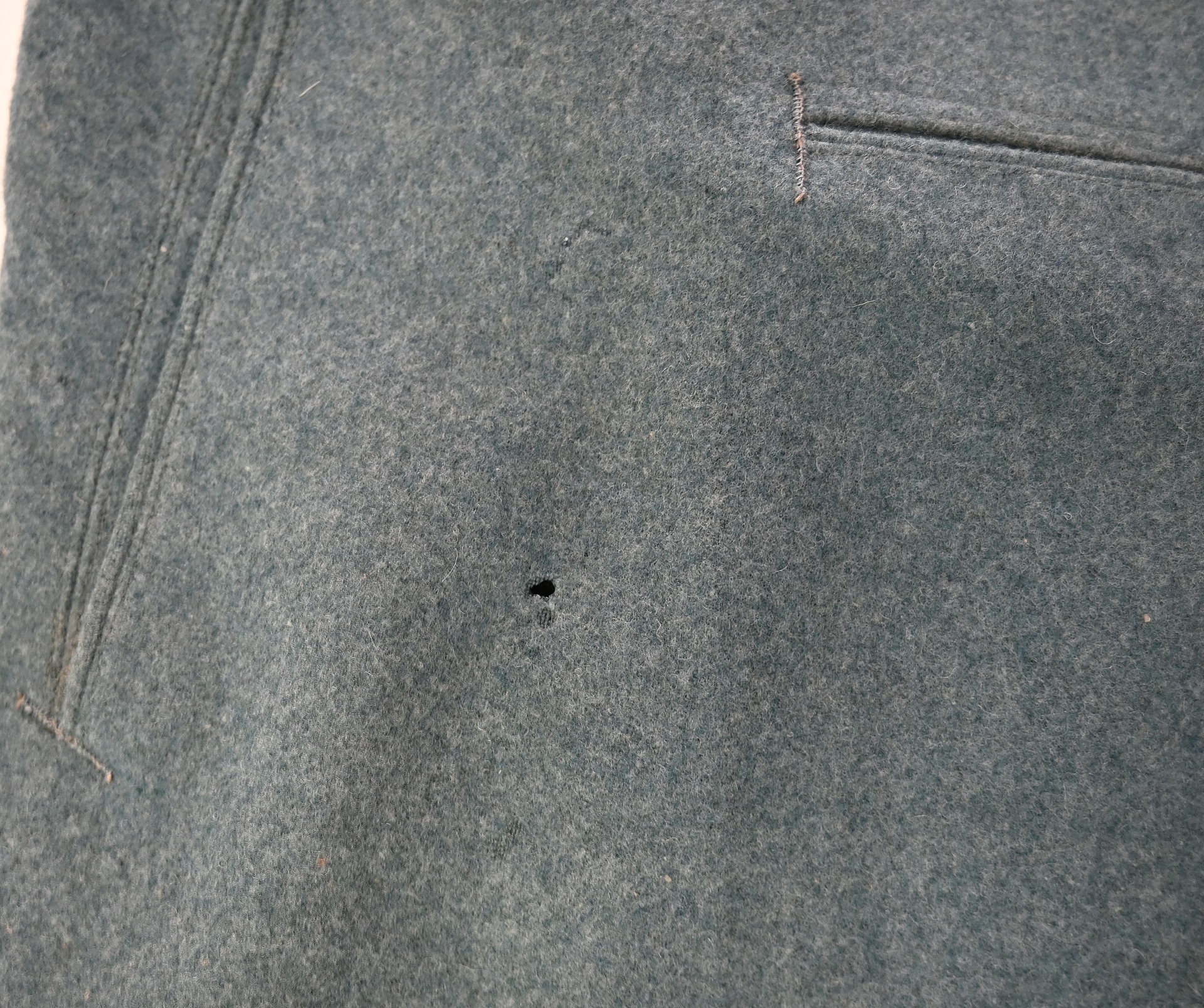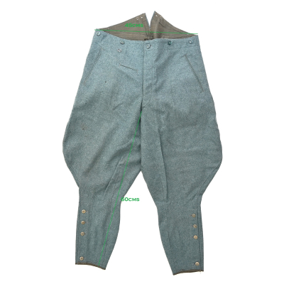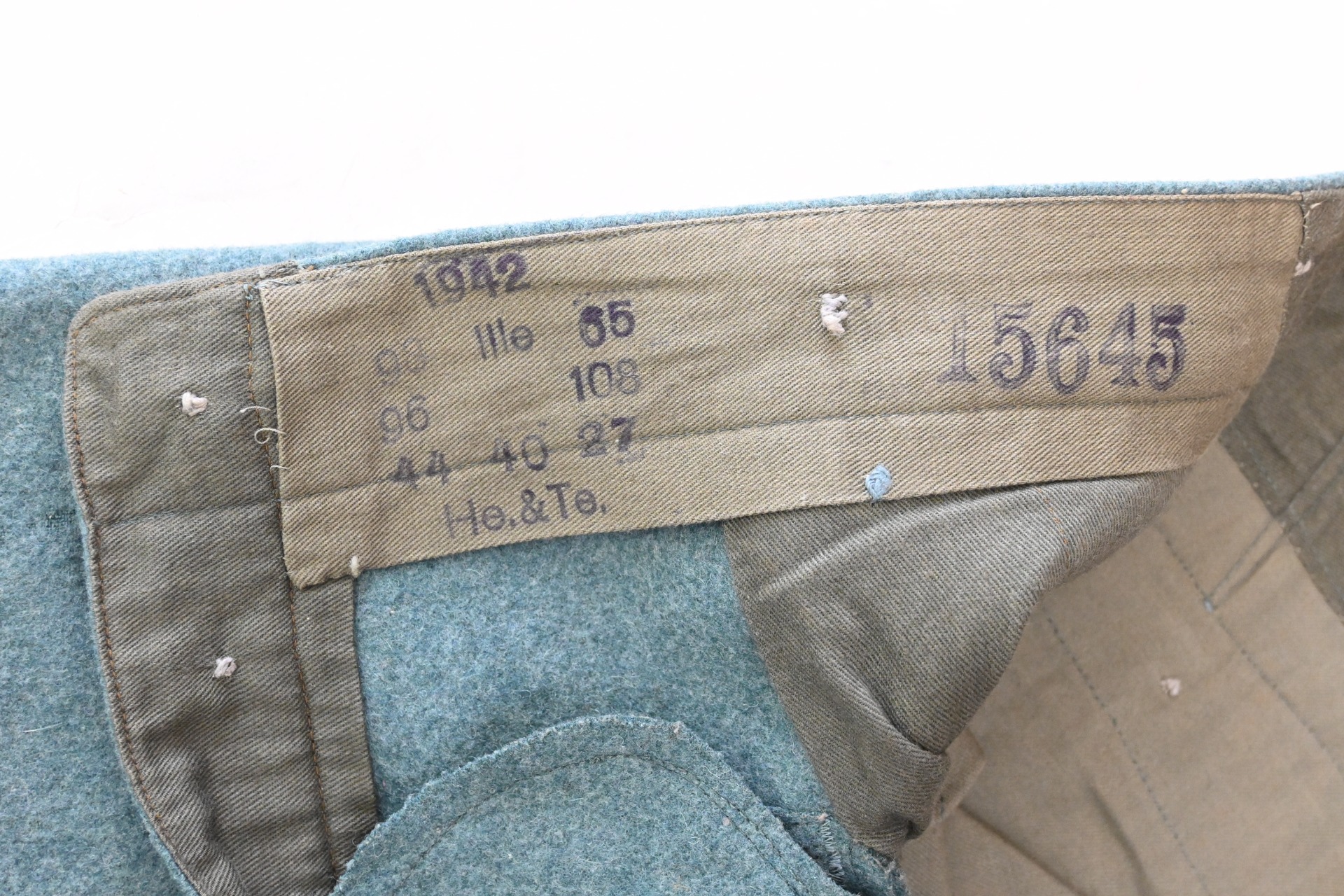 The trousers show overall normal signs of storage wear. It has a couple of tiny moth bites on both sides, but nothing major. It's complete with all buttons. Nicely marked on the inside with the makers initials and the size markings. Dated 1942.