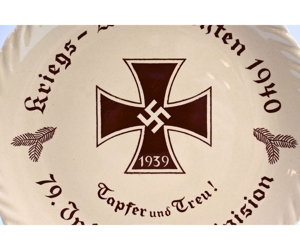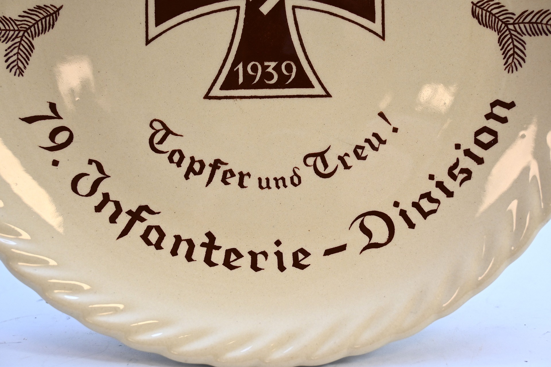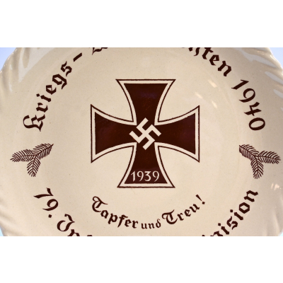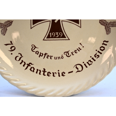 The plate is nicely maker marked by 'Villeroy & Boch' on the back. Solid condition and no damages. The diameter is approx. 20.5cms. The 79.Infanterie-Division participated in the 'Westfeldzug' and fought in France in June 1940.