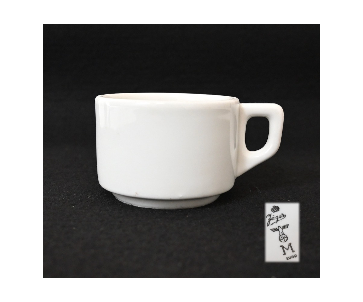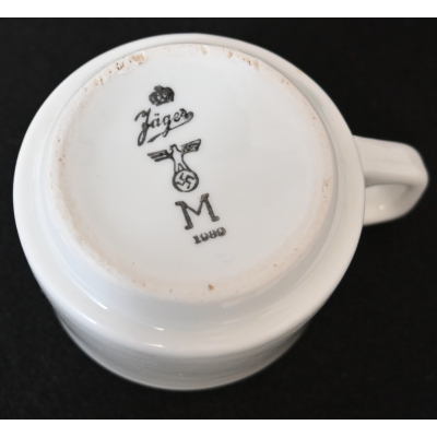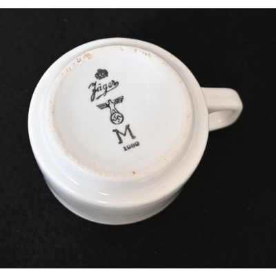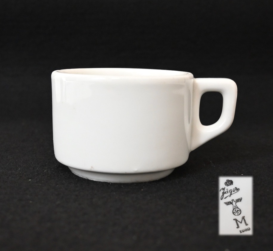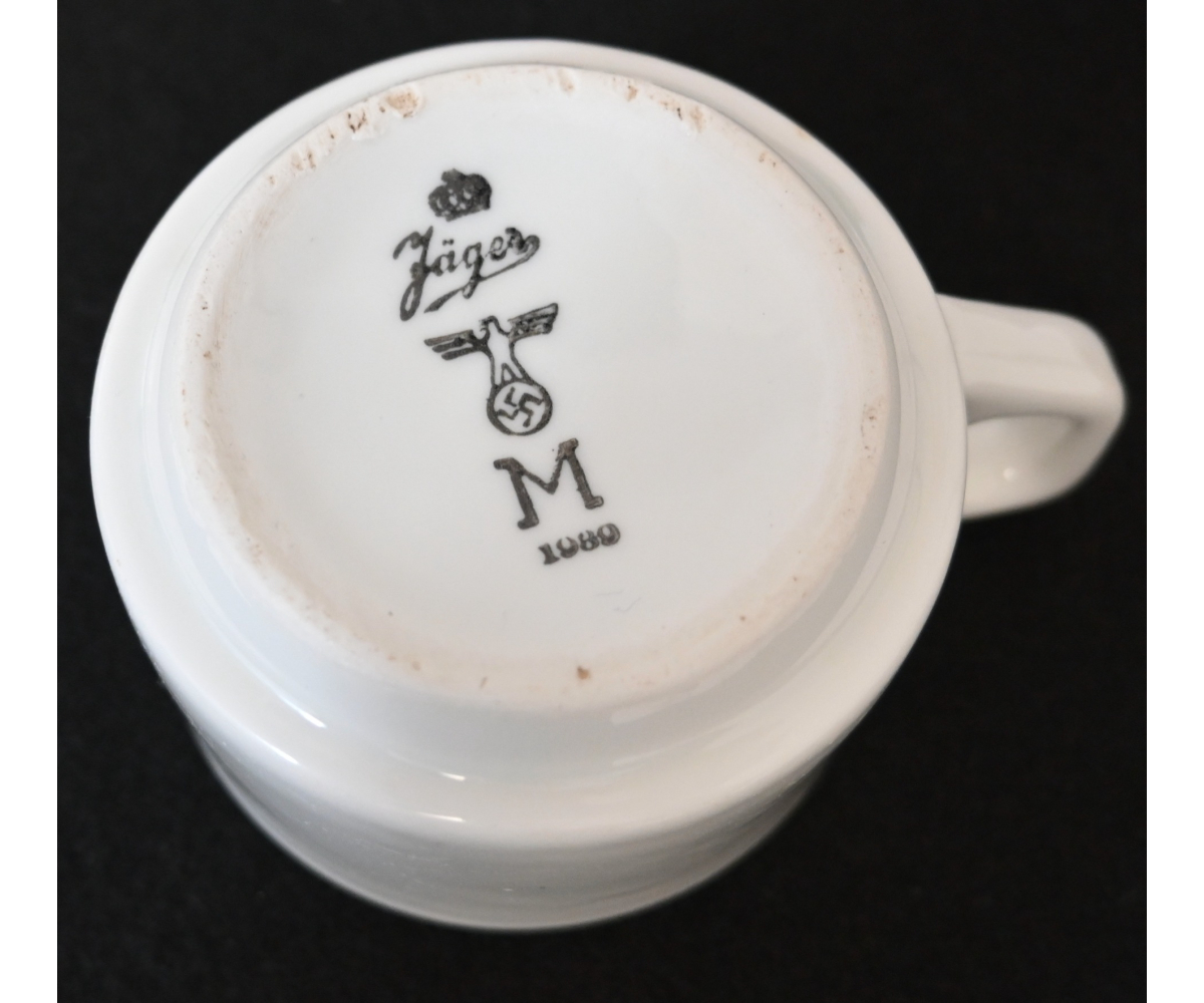 The cup is in used but good condition. It shows normal signs of usage/scratches. Nicely marked on the bottom with the Kriegsmarine eagle, the maker 'Jäger' and year of production '1939'.