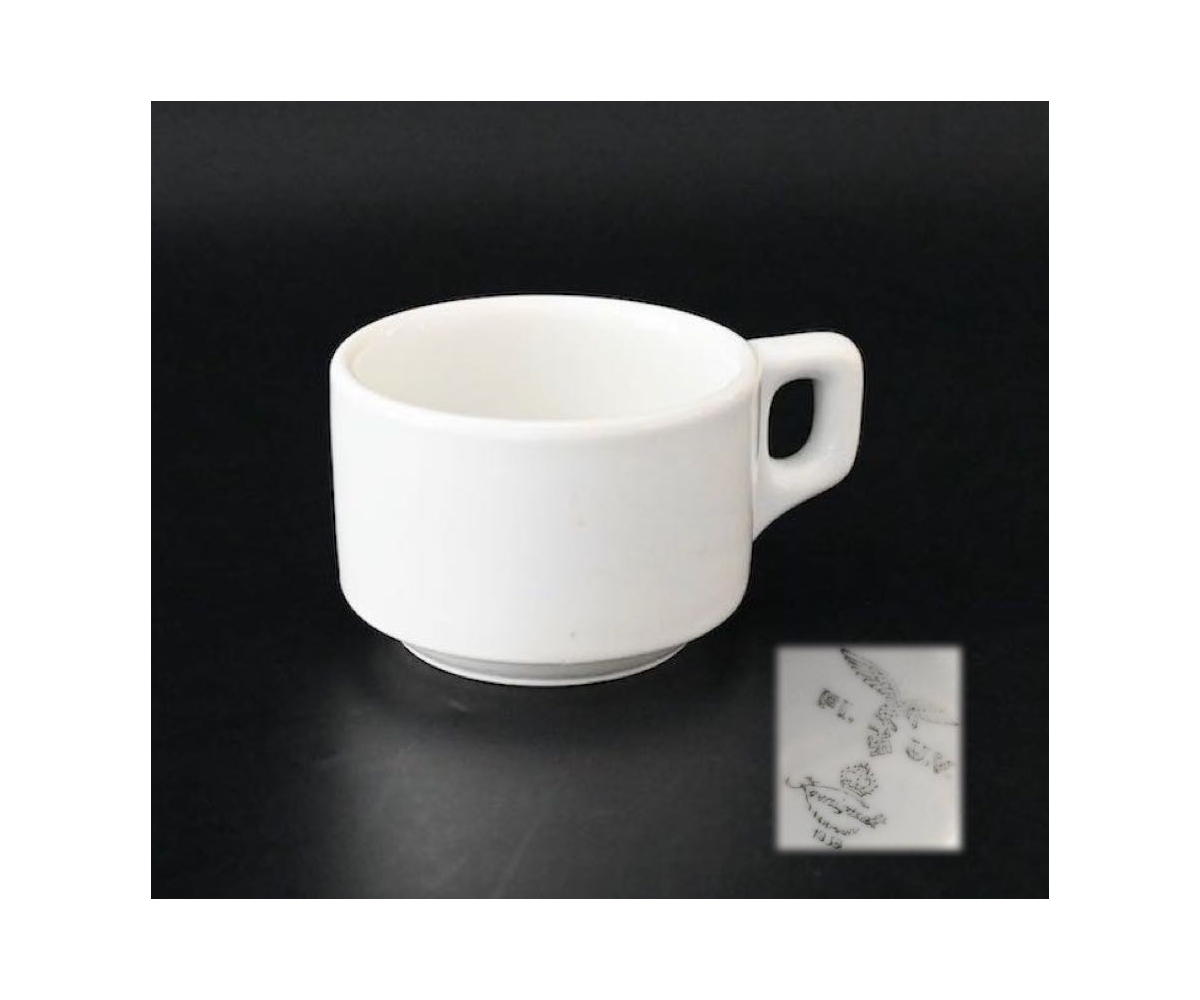 The cup is in used but good condition. It shows normal signs of usage/scratches. The piece is marked on the bottom with the Luftwaffe eagle, 'F.L.U.V.' the maker 'Koningszelt' and year of production '1938'.
