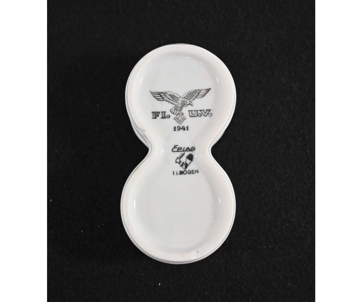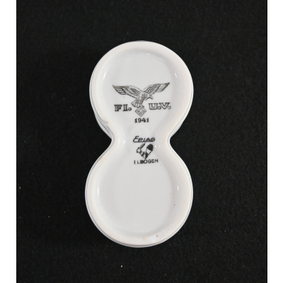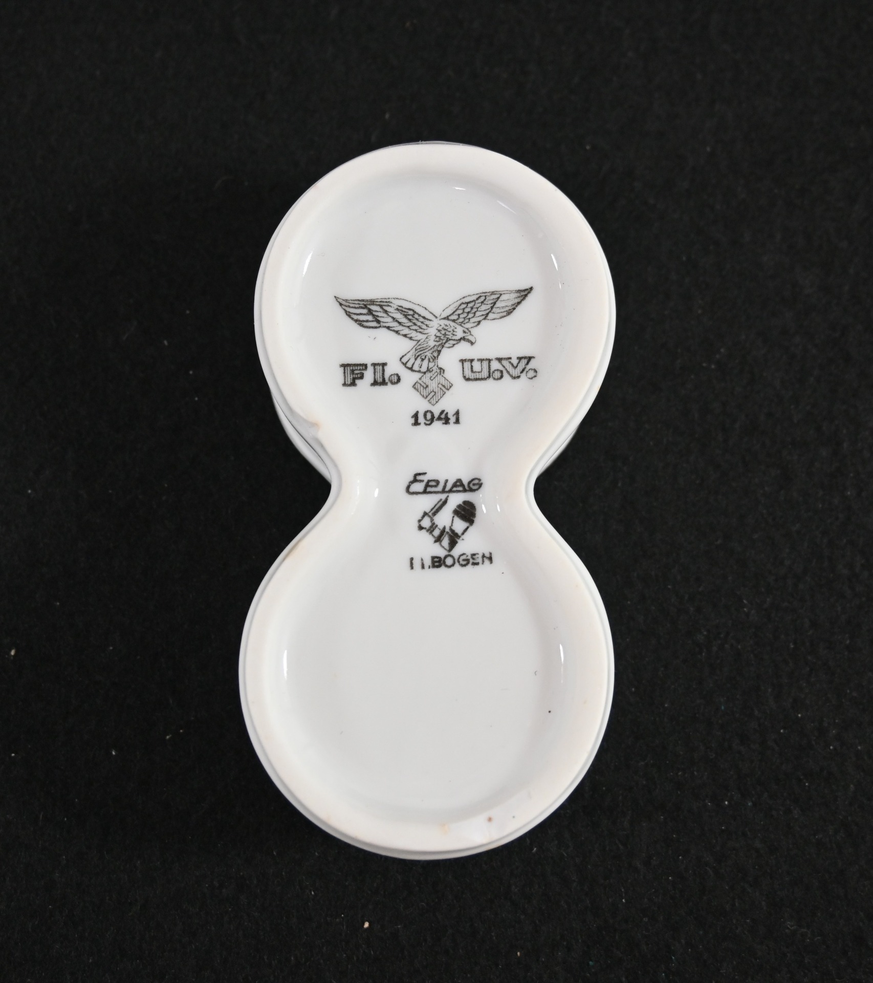 The dish shows overall normal signs of usage. It has 2 tiny chips on the bottom, but nothing major. Nicely marked on the bottom with the Luftwaffe eagle, dated '1941' and maker marked 'Epiag'.