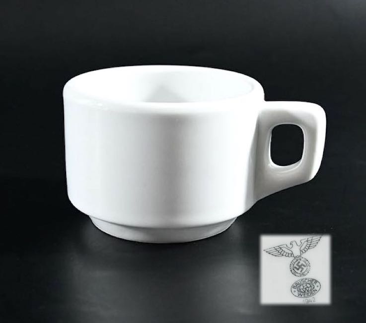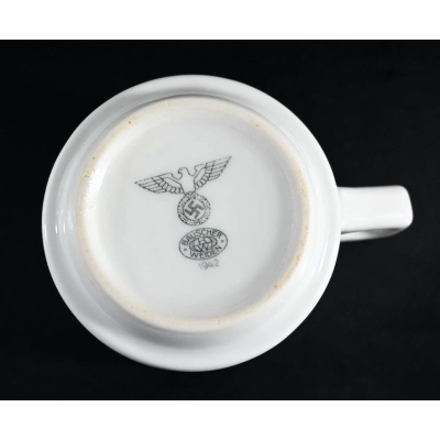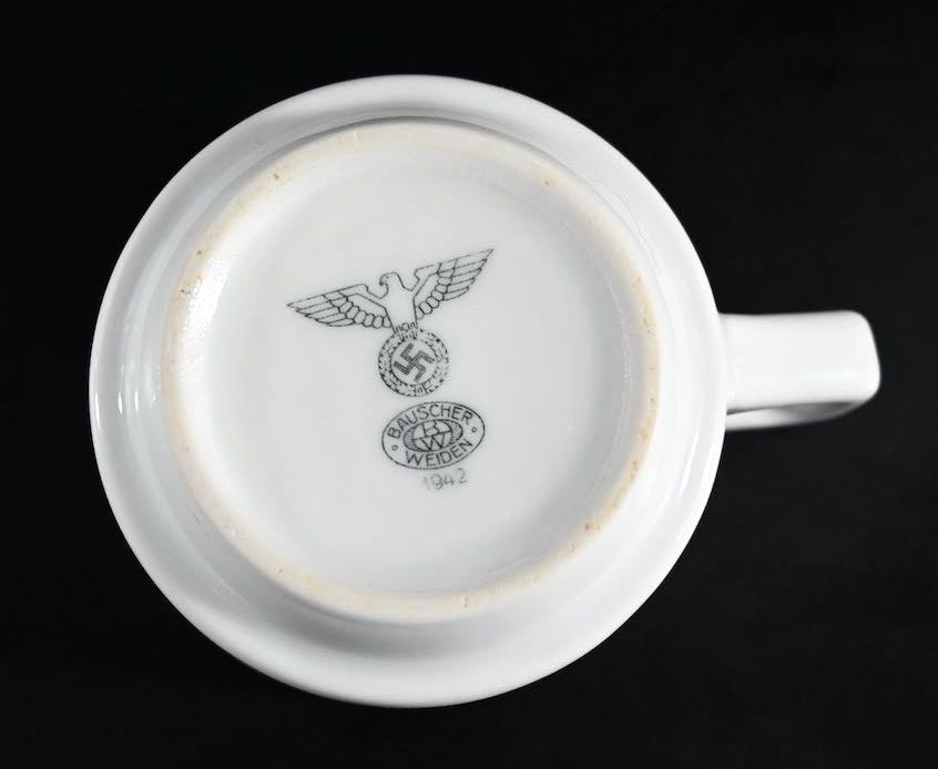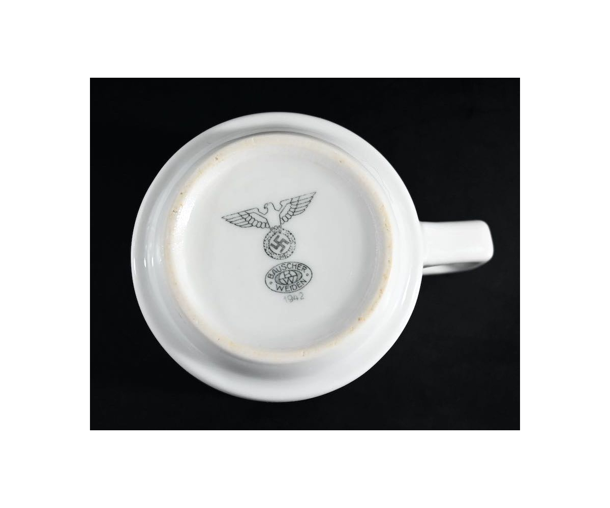 The cup is in very good condition. It shows only minor signs of usage/scratches. Nicely marked on the bottom with the Heer eagle, the maker 'Bauscher' from 'Weiden' and year of production '1942'.