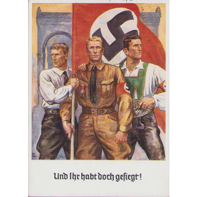 The postcard shows overall normal signs of storage wear. Nicely marked on the by with a stamp 'Studentenfahrt der Deutschen Technik'.