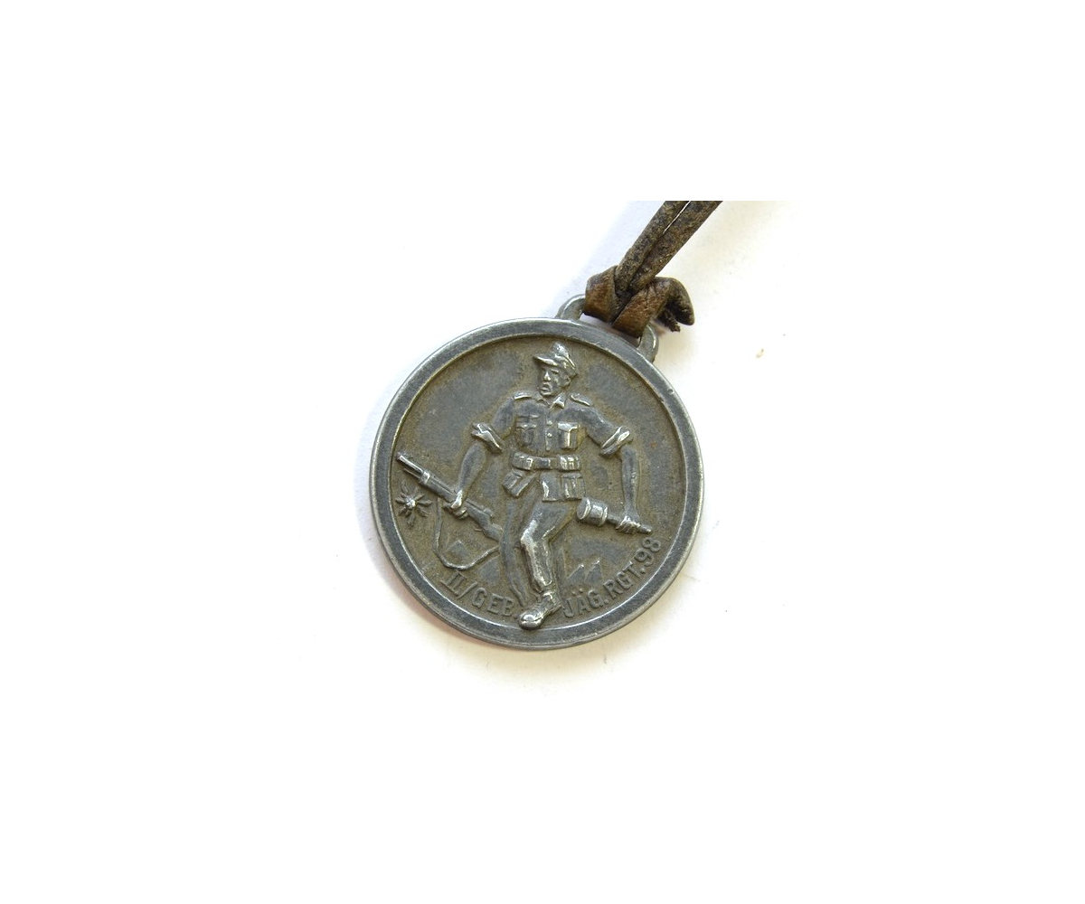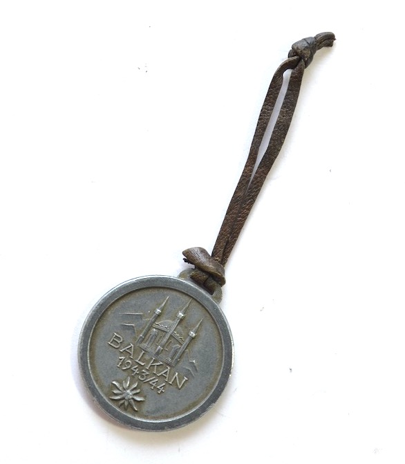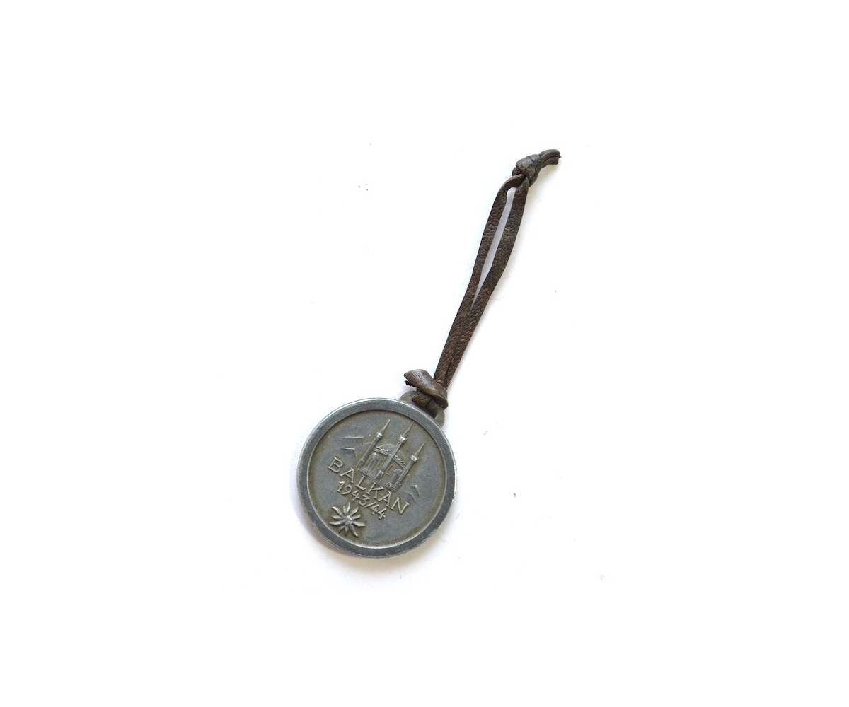 Rare Commemorative 'II.Kompanie Gebirgsjäger Regiment 98 Balkan 1943/44' pendant or 'Tragbares Erinnerungsabzeichen'.
