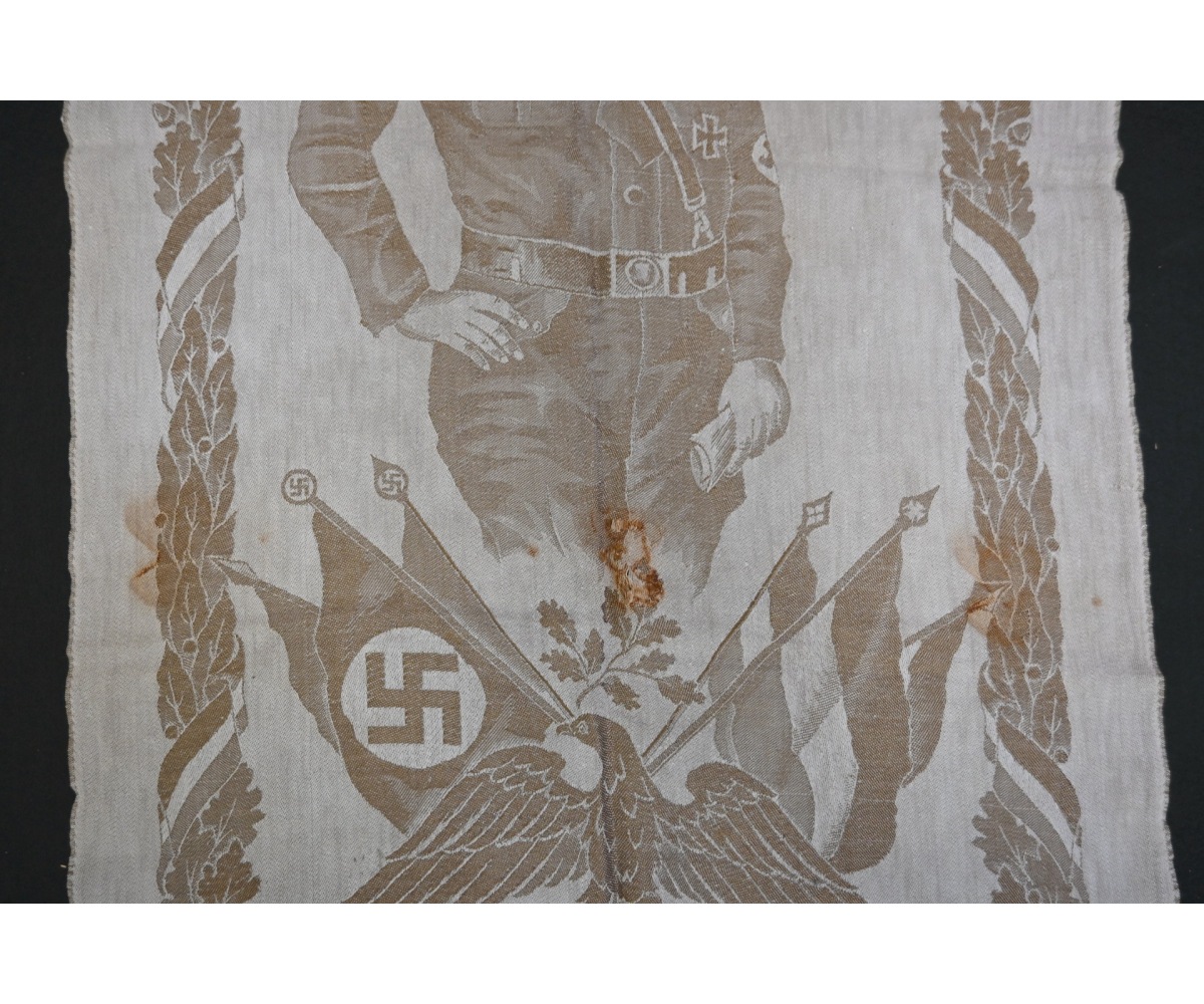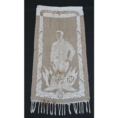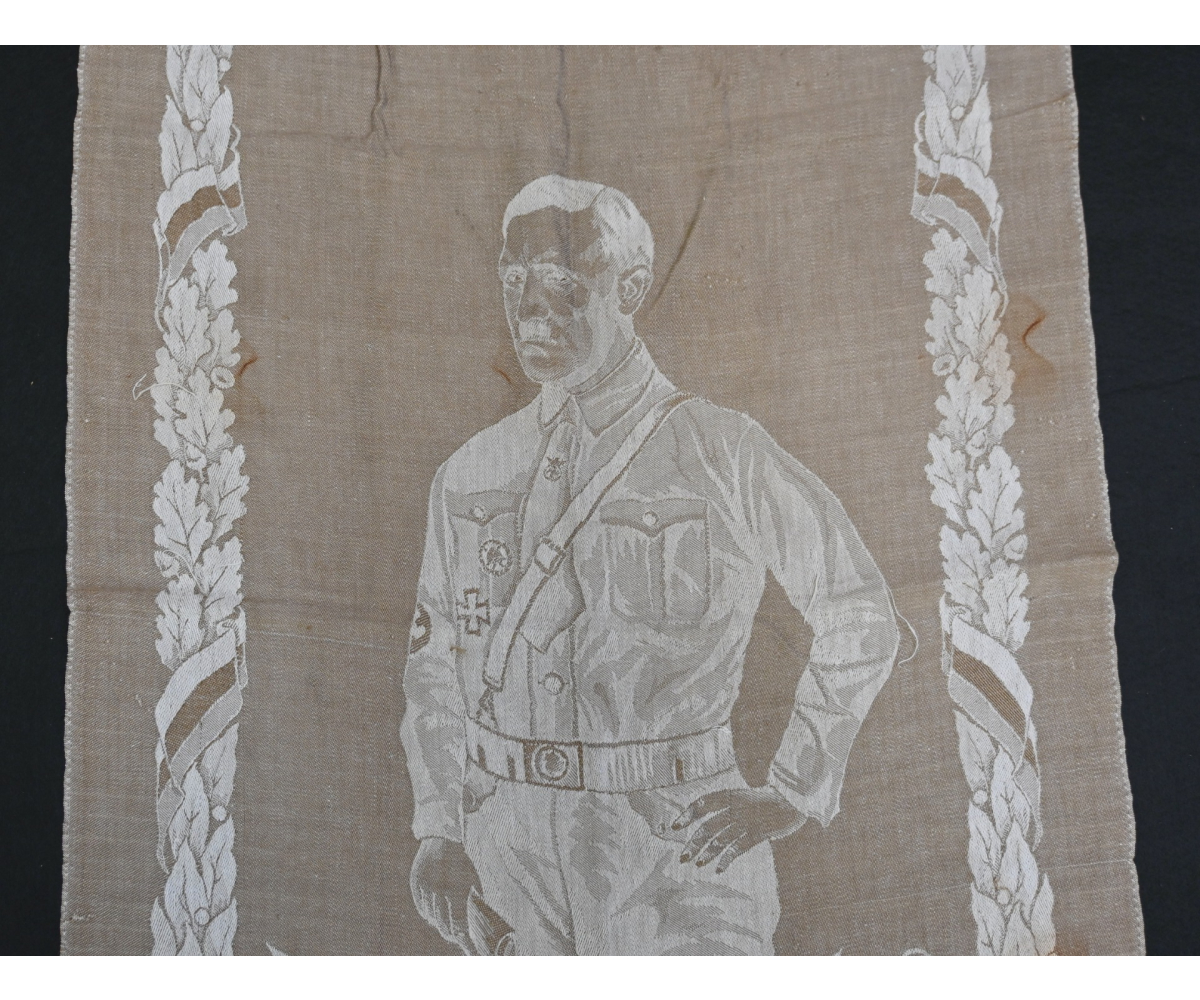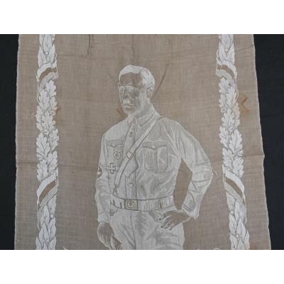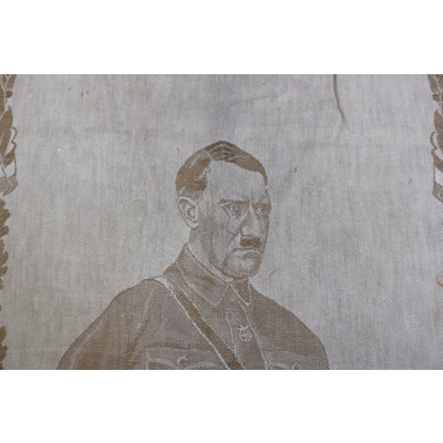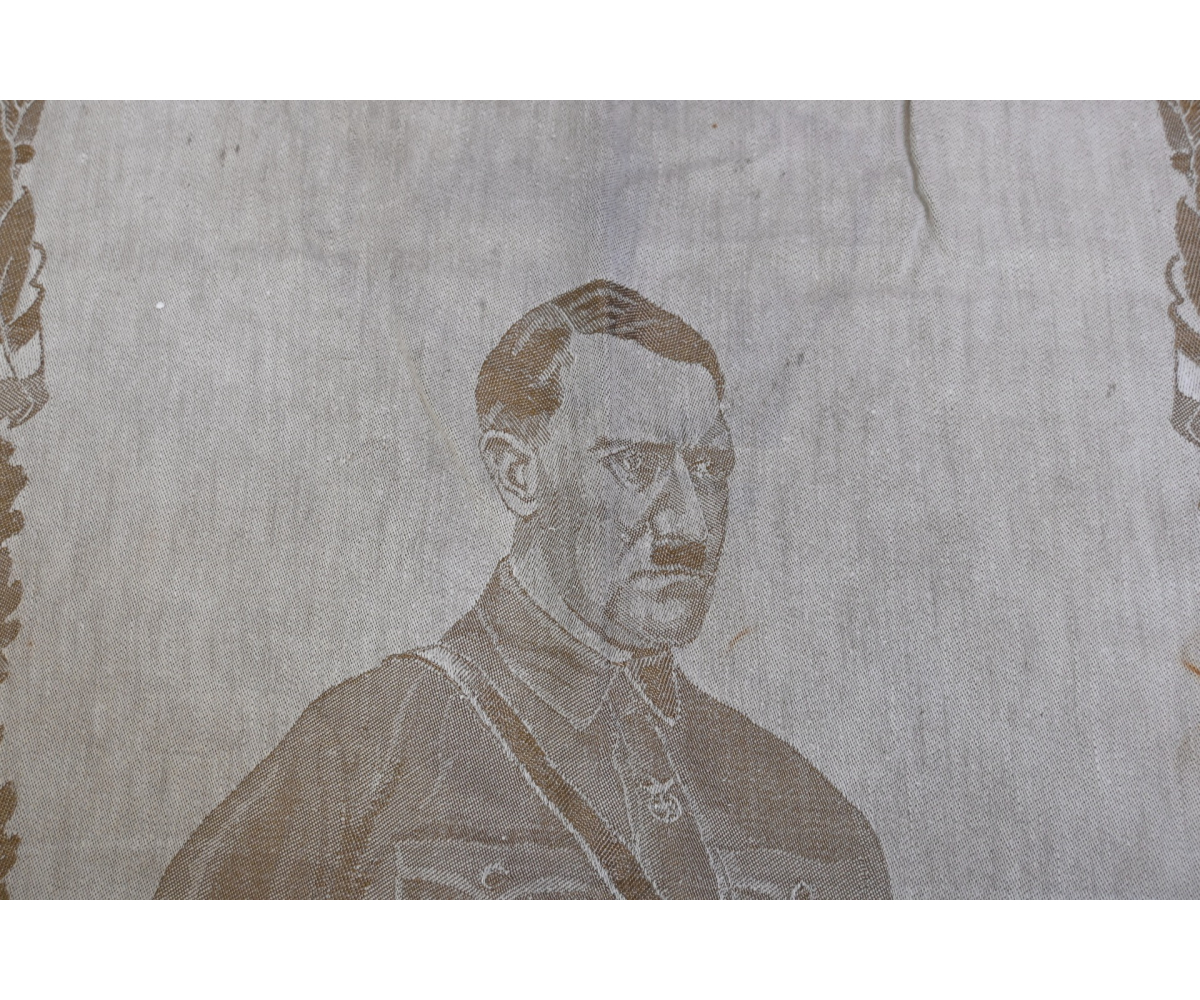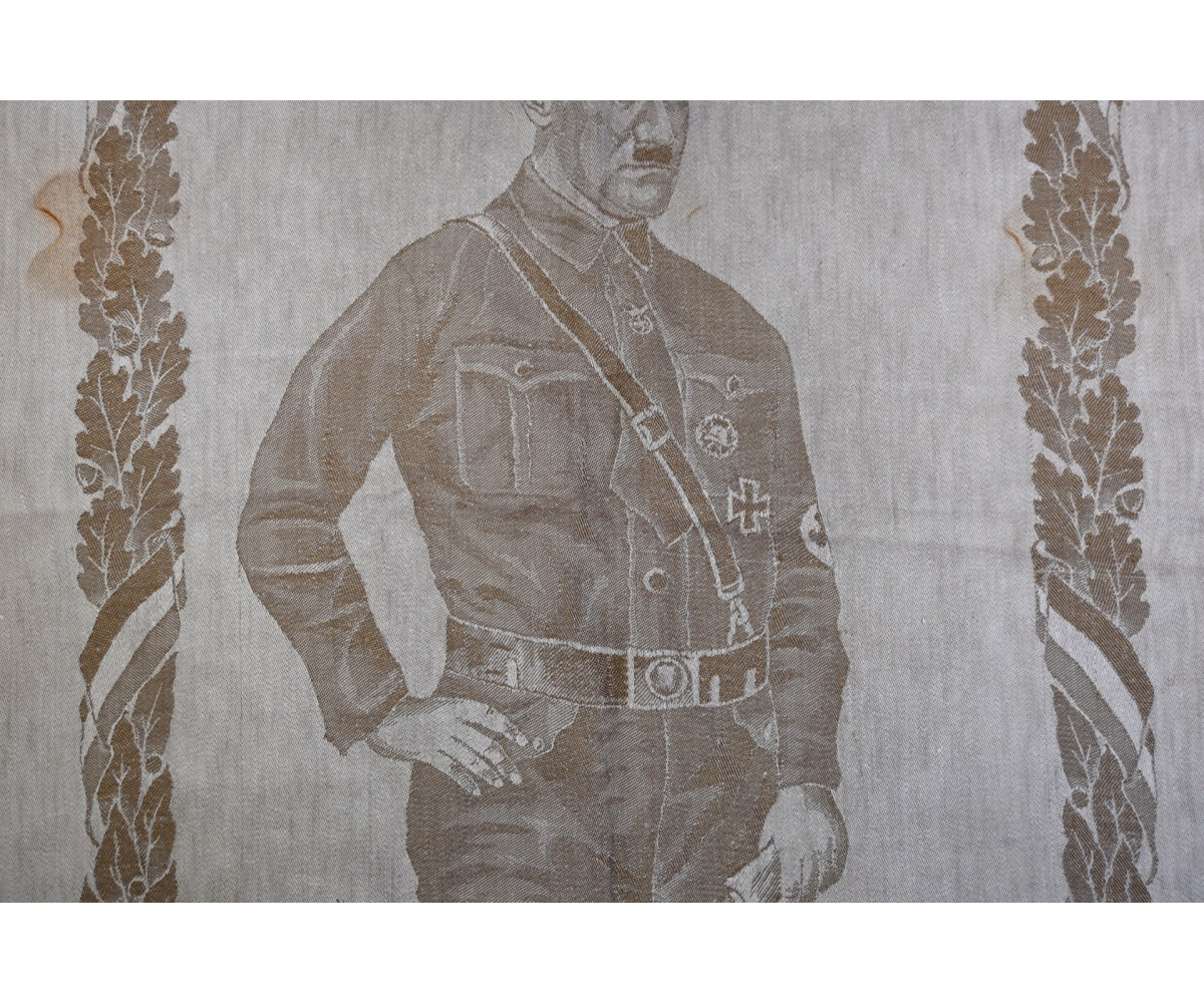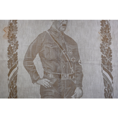 Very rare linnen tapestry (or 'Wandteppich') depicting Adolf Hitler in his pre-chancellorship (1930's) uniform.