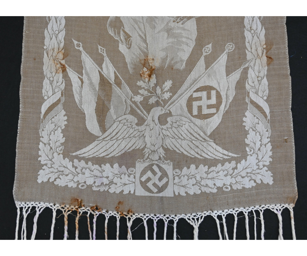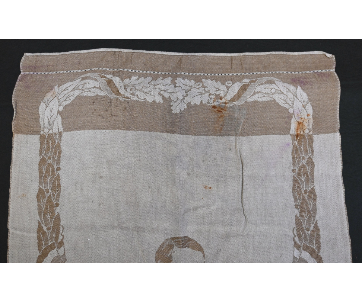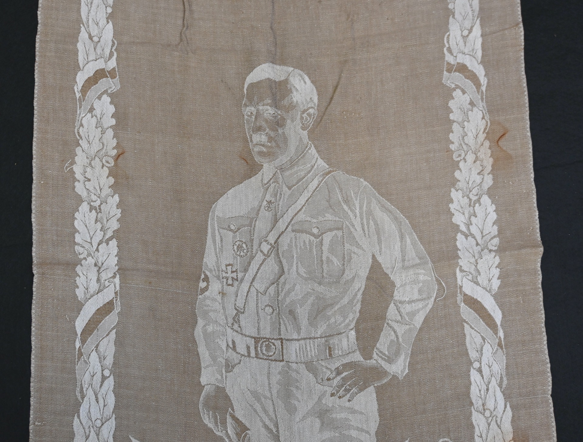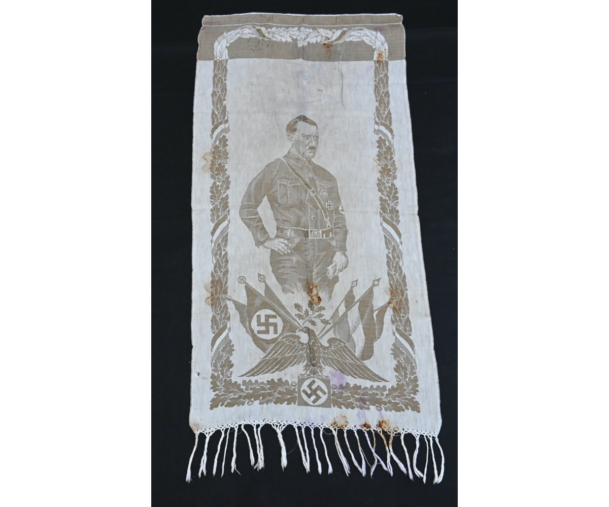 Very rare linnen tapestry (or 'Wandteppich') depicting Adolf Hitler in his pre-chancellorship (1930's) uniform.