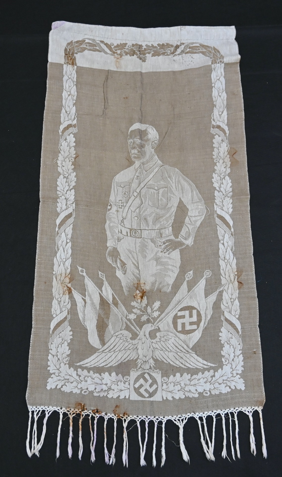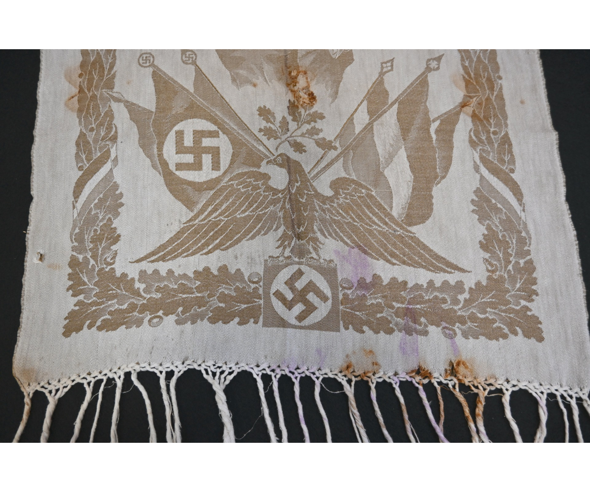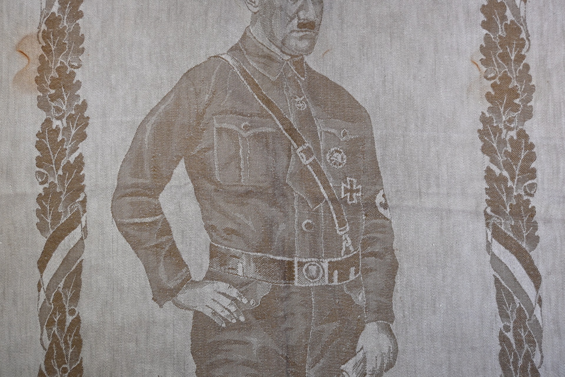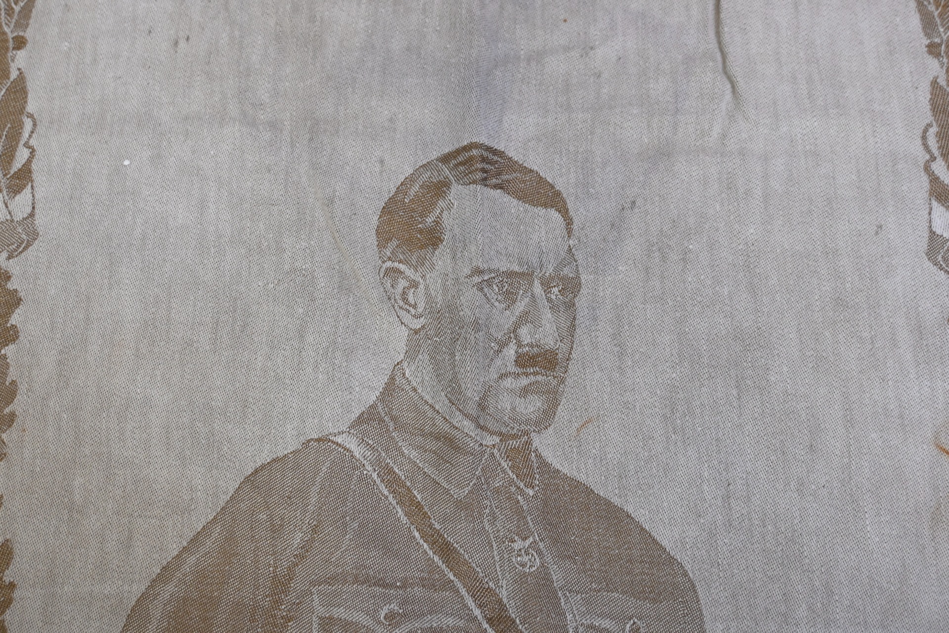Very rare linnen tapestry (or 'Wandteppich') depicting Adolf Hitler in his pre-chancellorship (1930's) uniform.