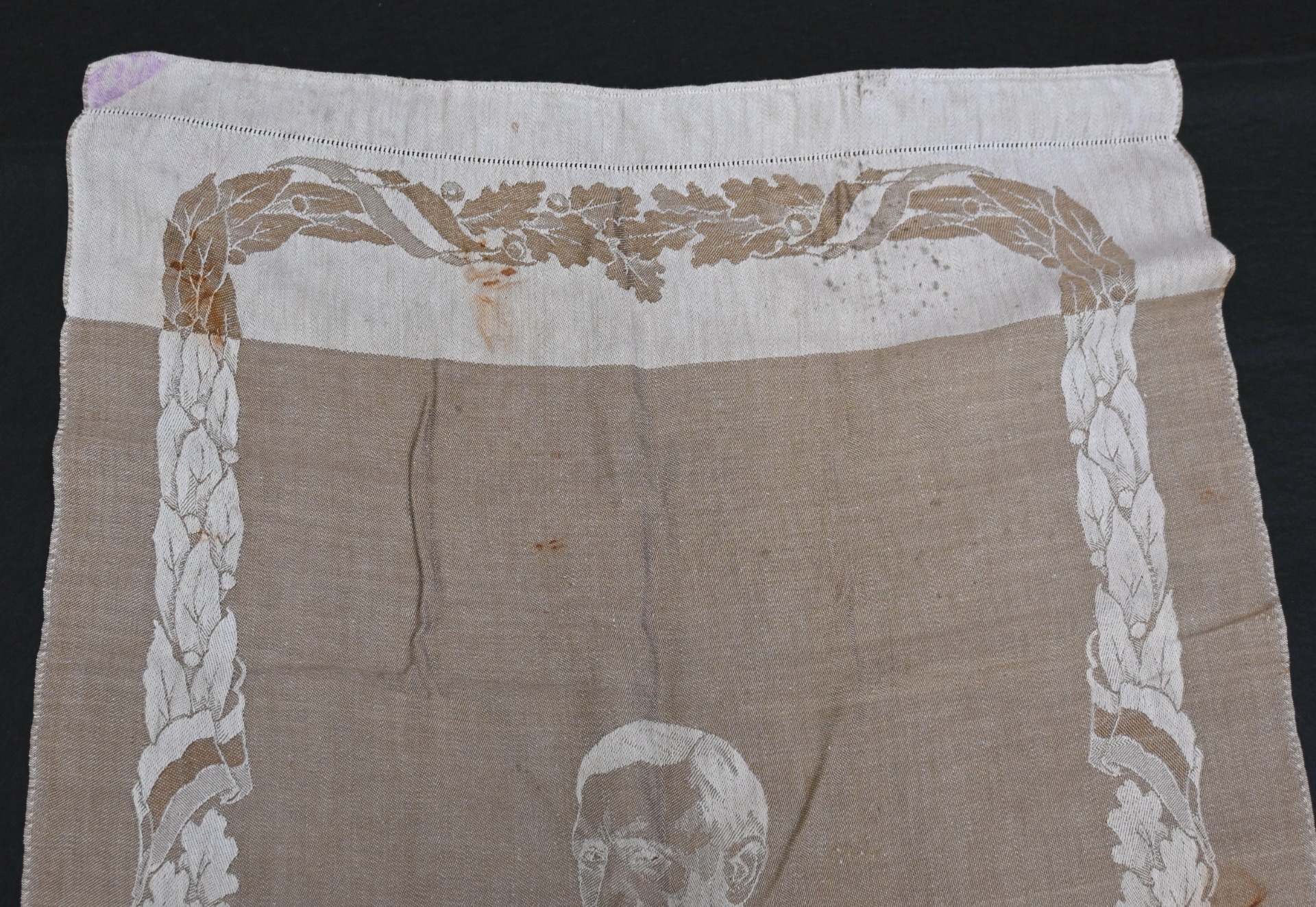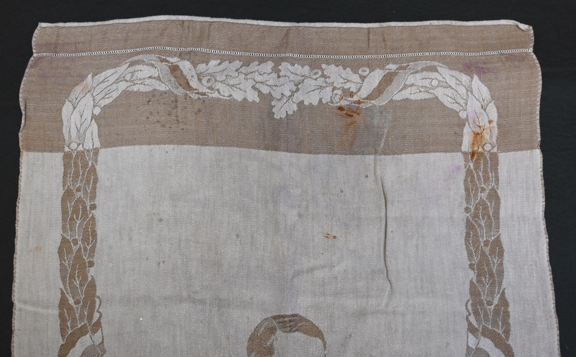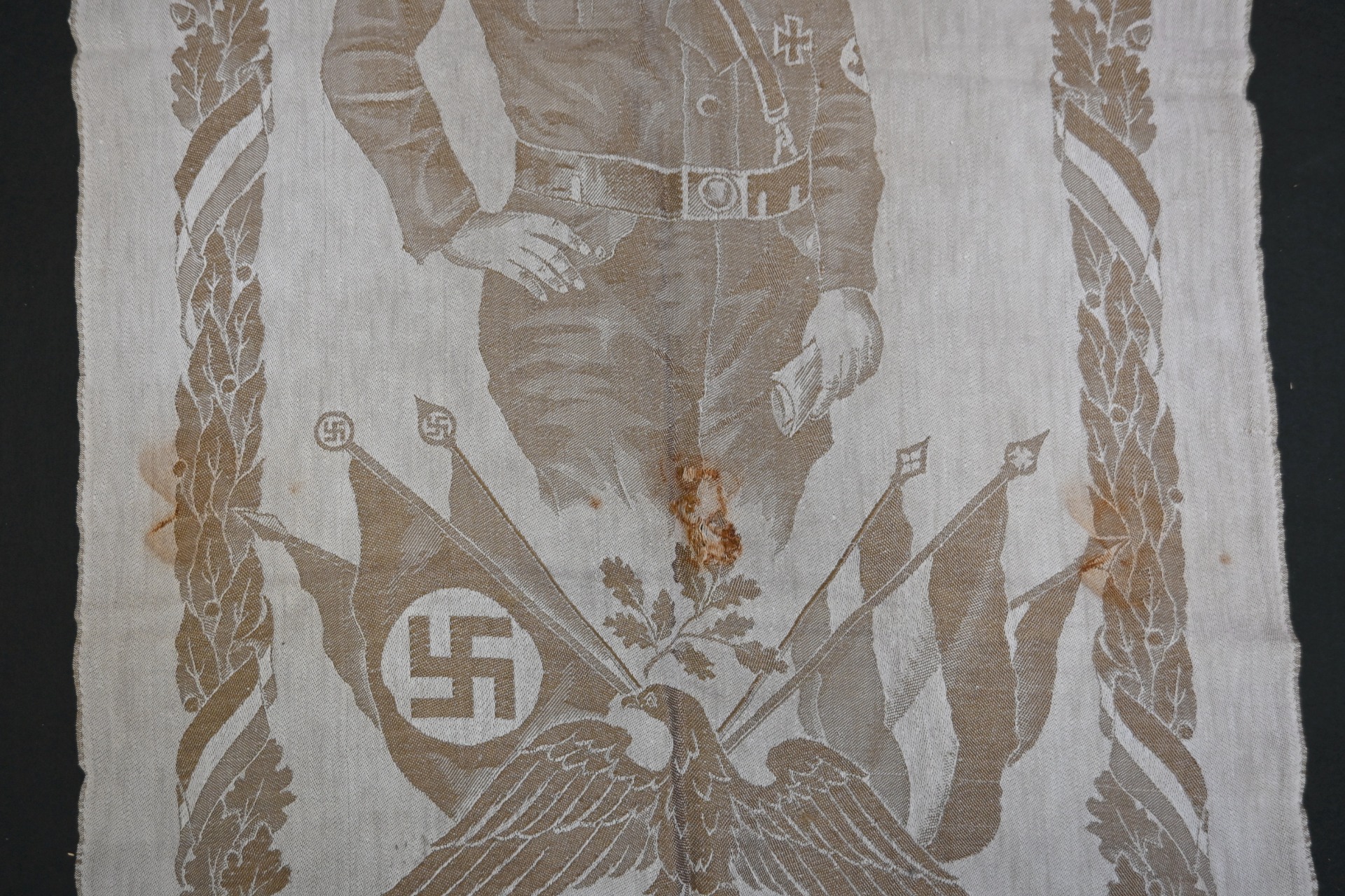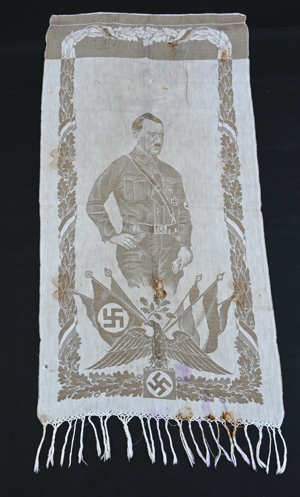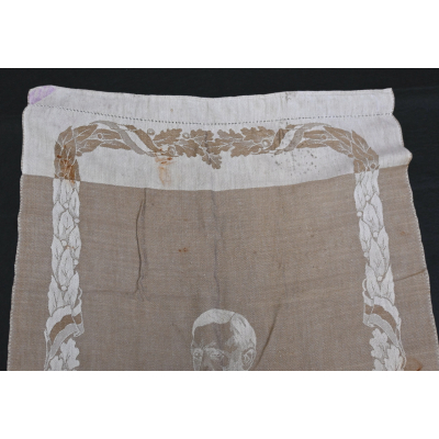 Very rare linnen tapestry (or 'Wandteppich') depicting Adolf Hitler in his pre-chancellorship (1930's) uniform.