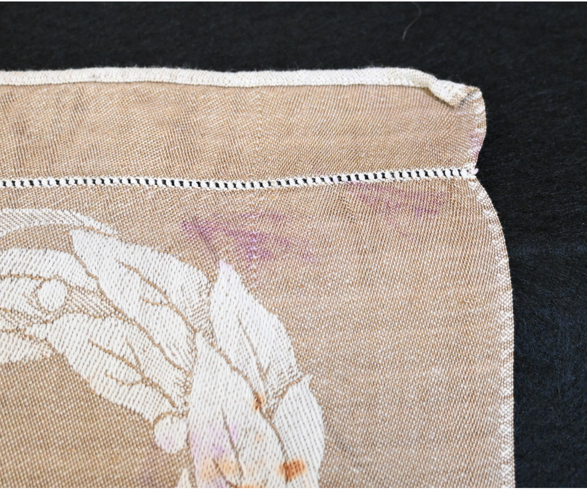 Not visible maker marked, but it's most likely produced by the 'Mechanische Weberei Sorau' from 'Brandenburg, Silesia'