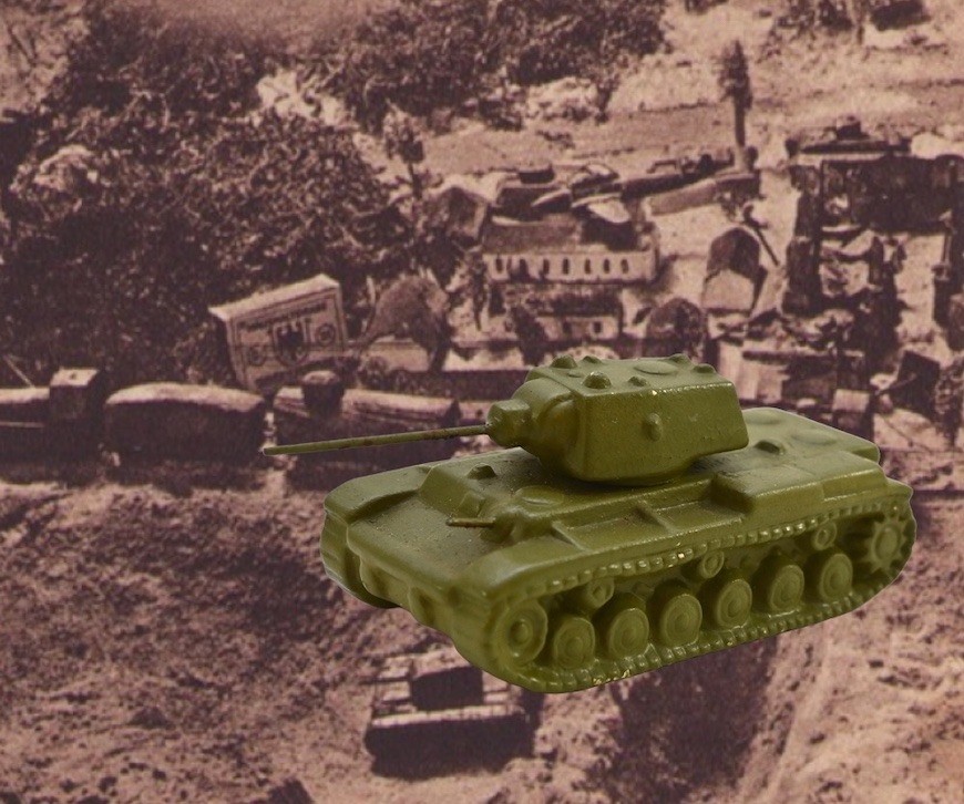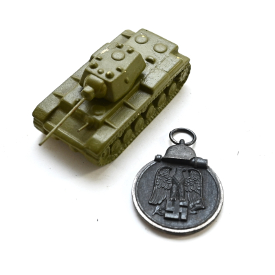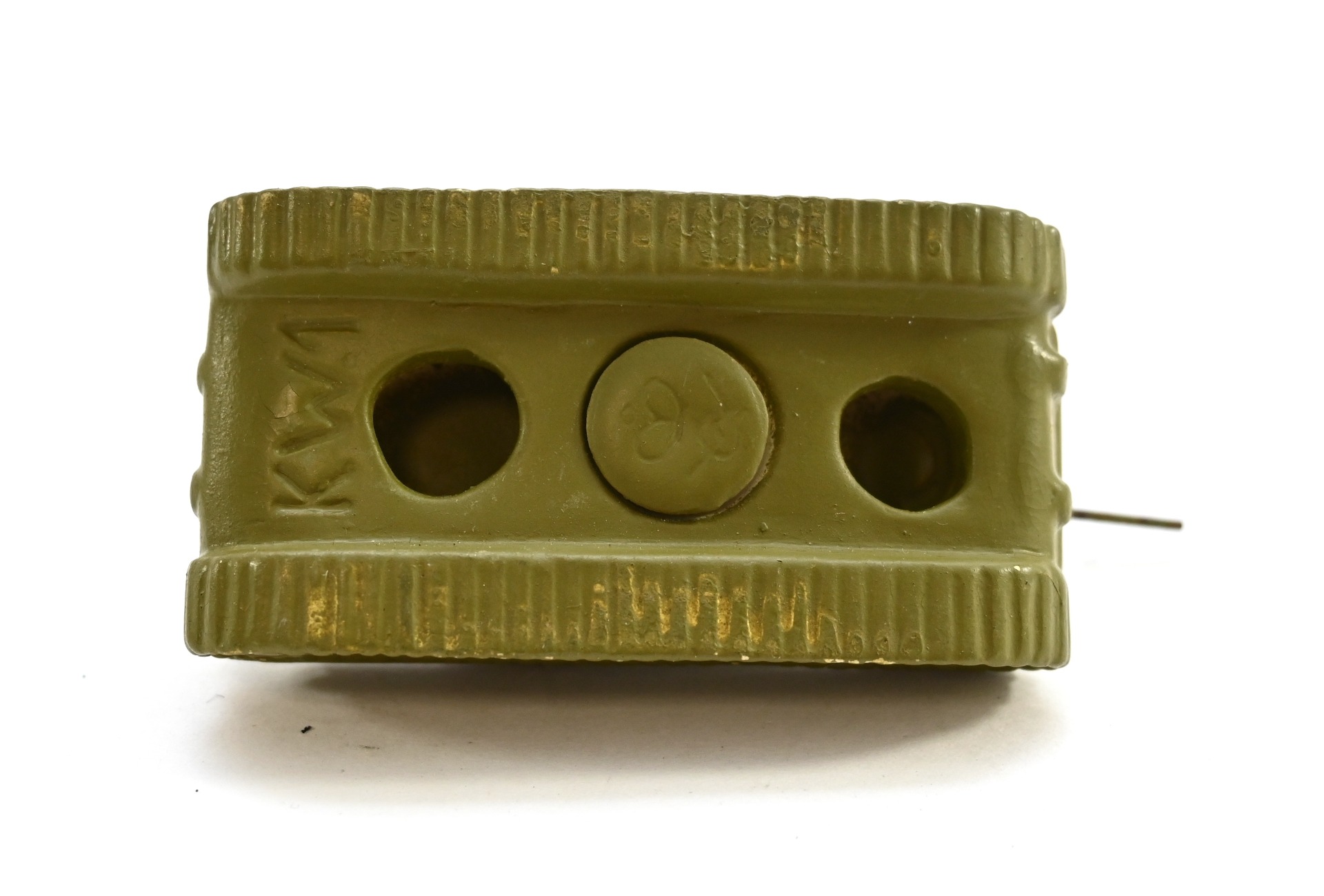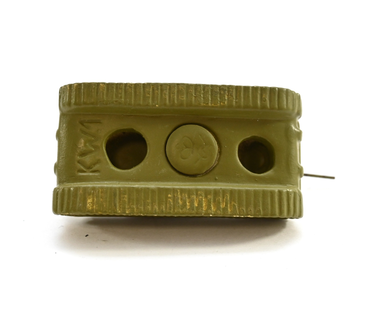 It's also marked 'KW-1' on the bottom. During the Second Wold War, the German army captured a large number of Heavy 'Soviet KV-1s' tanks, which were repaired, sometimes upgraded and serviced in the Wehrmacht. They were renamed to 'Pz.Kpfw KW-1' or 'Panzerkampfwagen KW-1'.