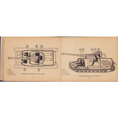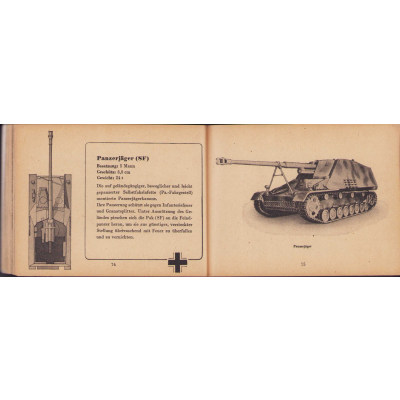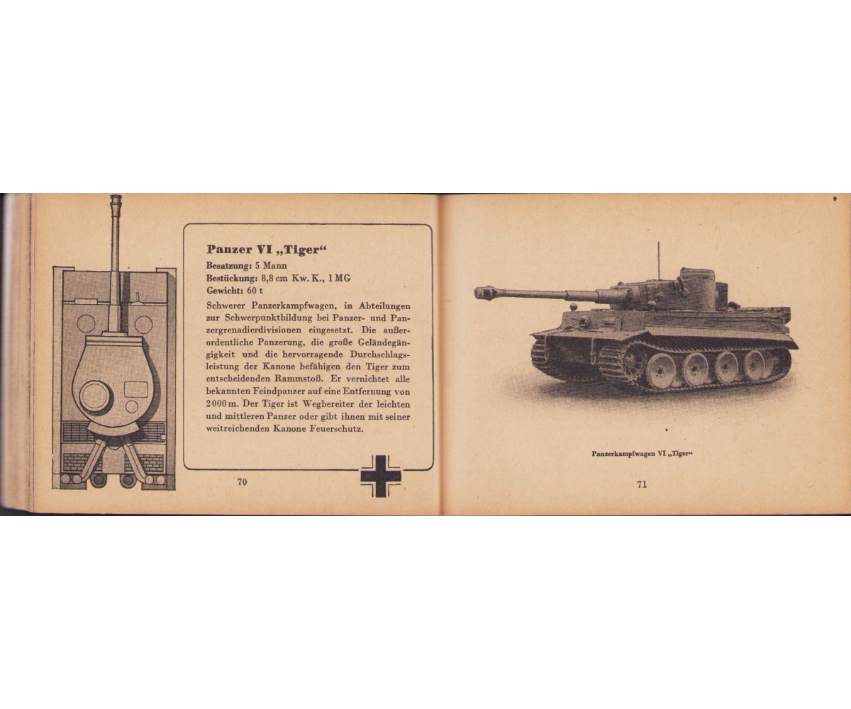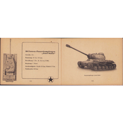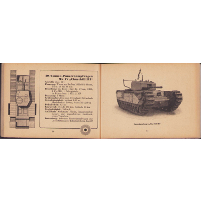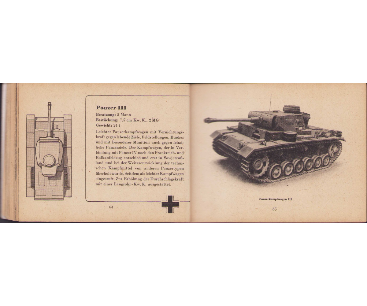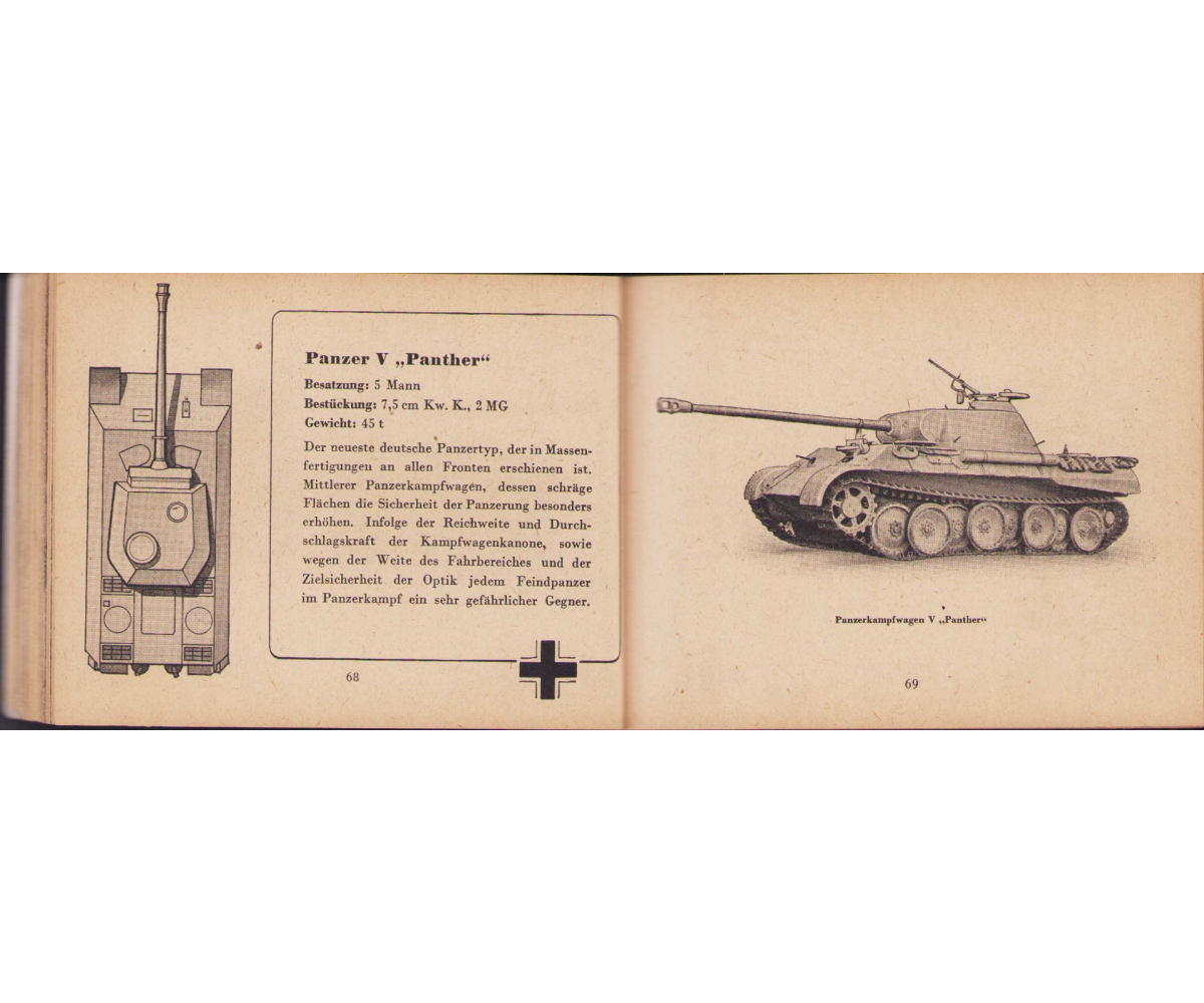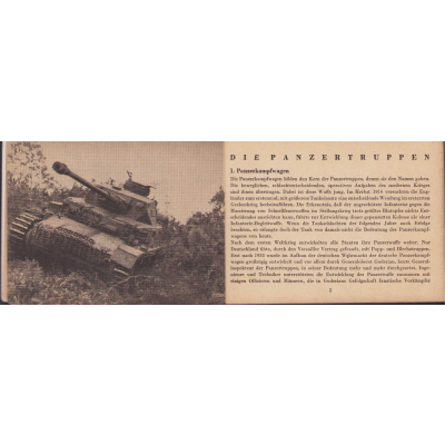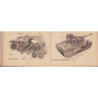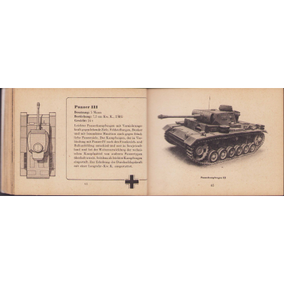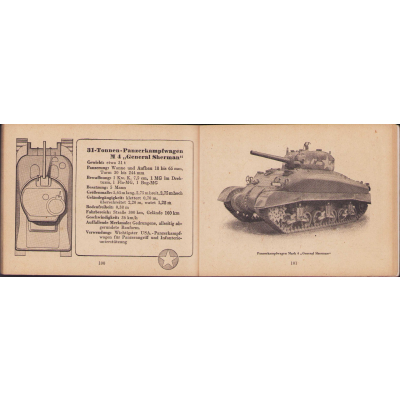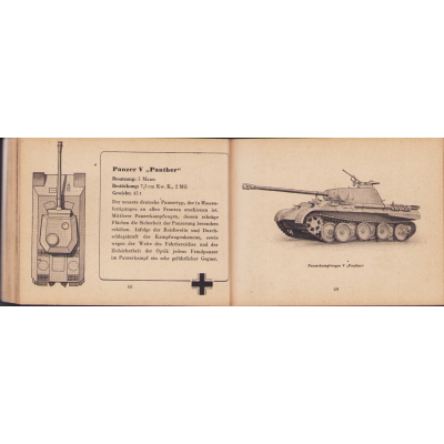 The small book shows overall normal signs of wear. It's solid and complete with all 128 pages. Contains loads of illustrations about tanks from the Wehrmacht and the Allies. Also technical information. Printed in 1944.