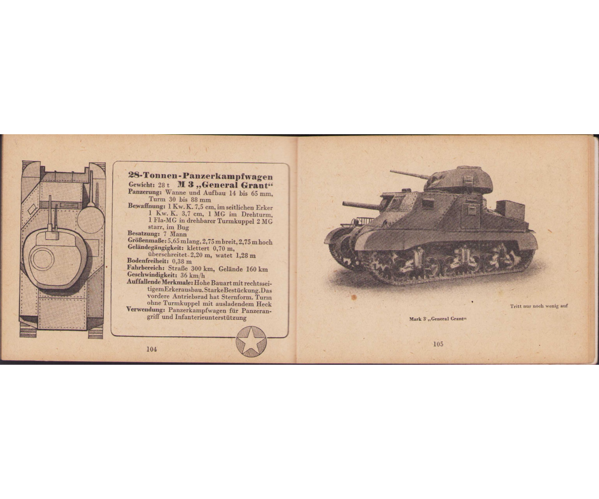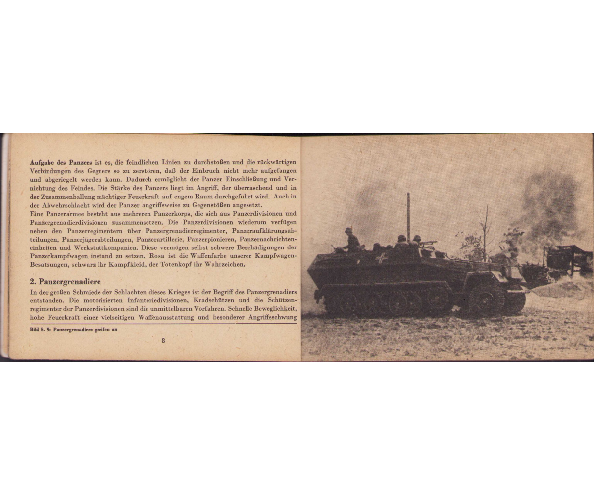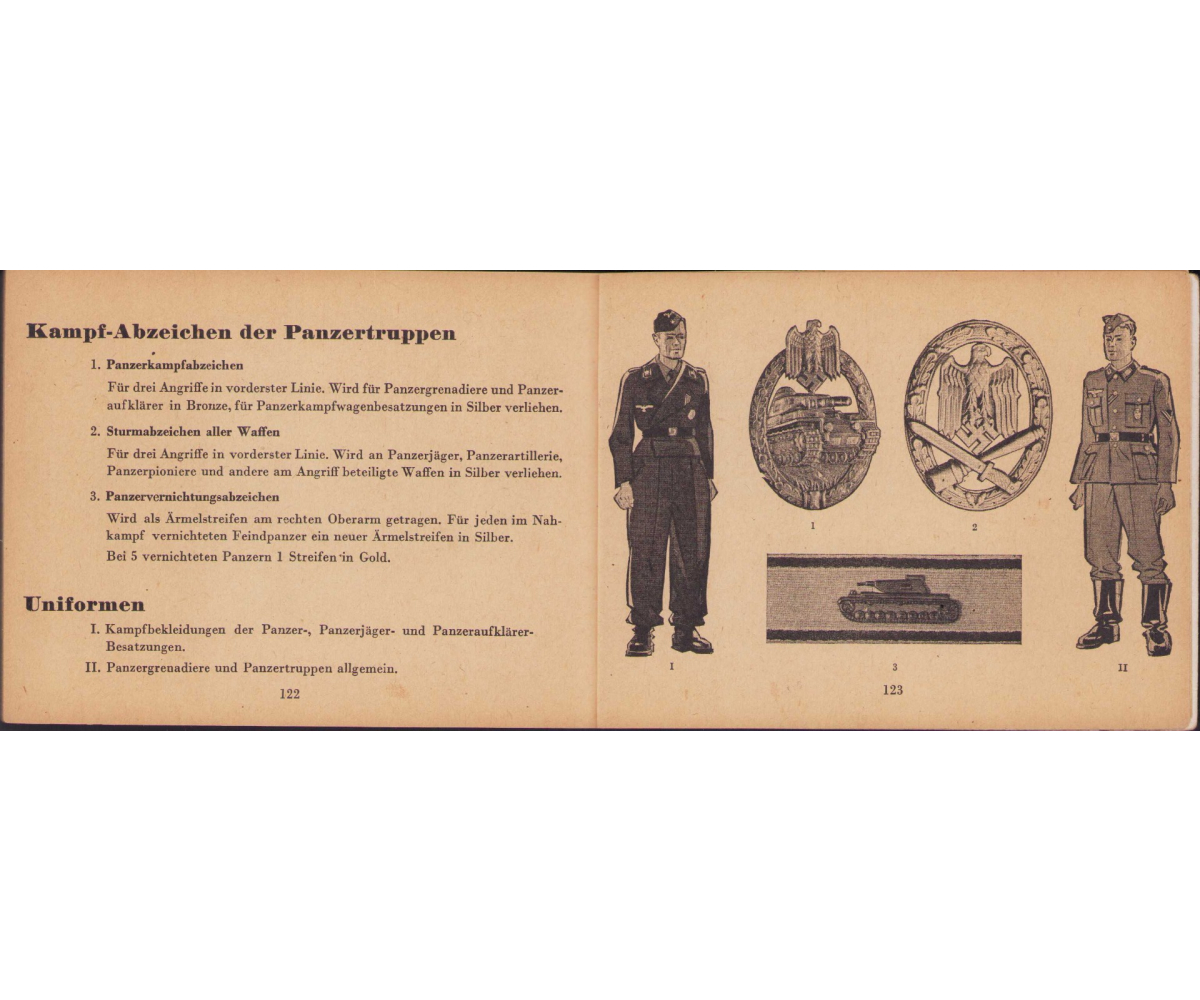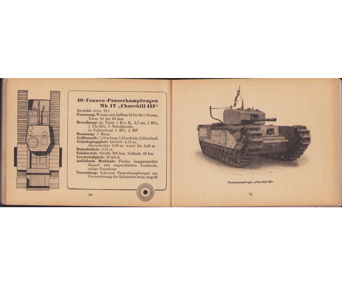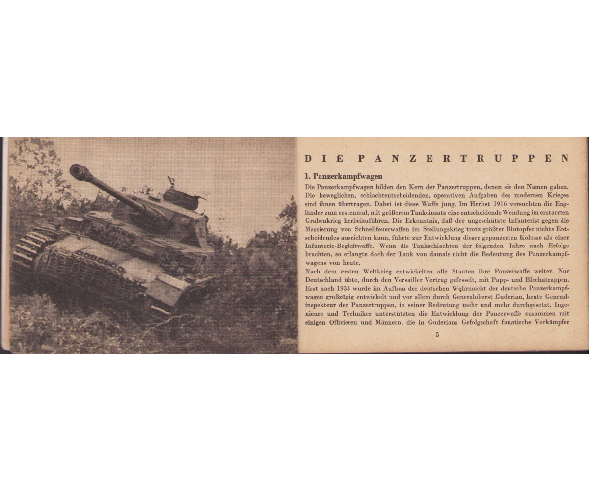 The small book shows overall normal signs of wear. It's solid and complete with all 128 pages. Contains loads of illustrations about tanks from the Wehrmacht and the Allies. Also technical information. Printed in 1944.