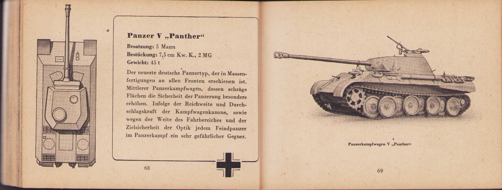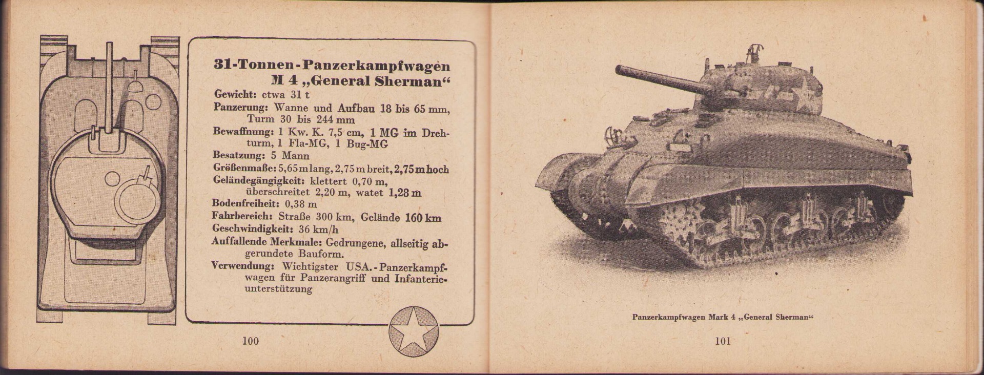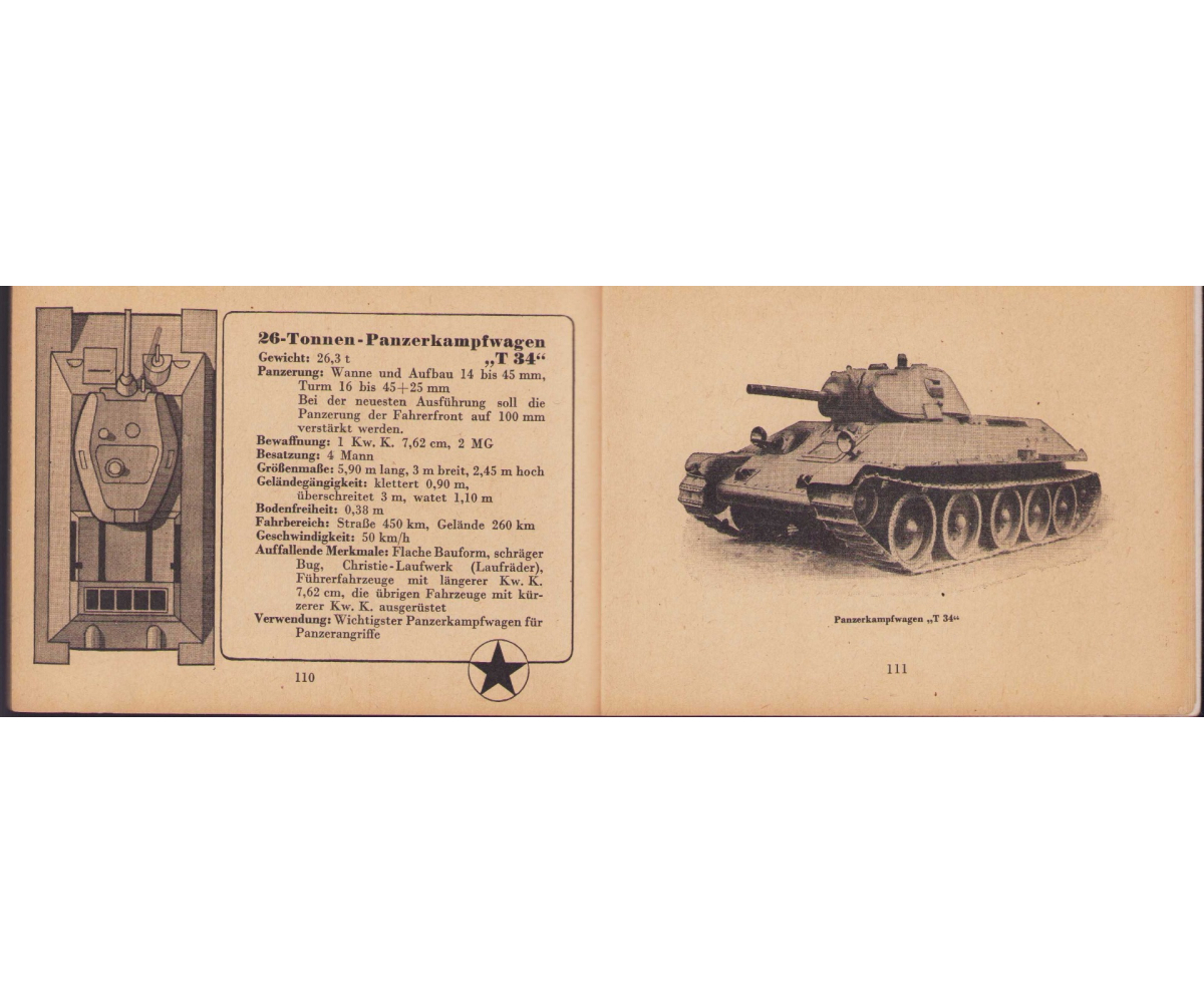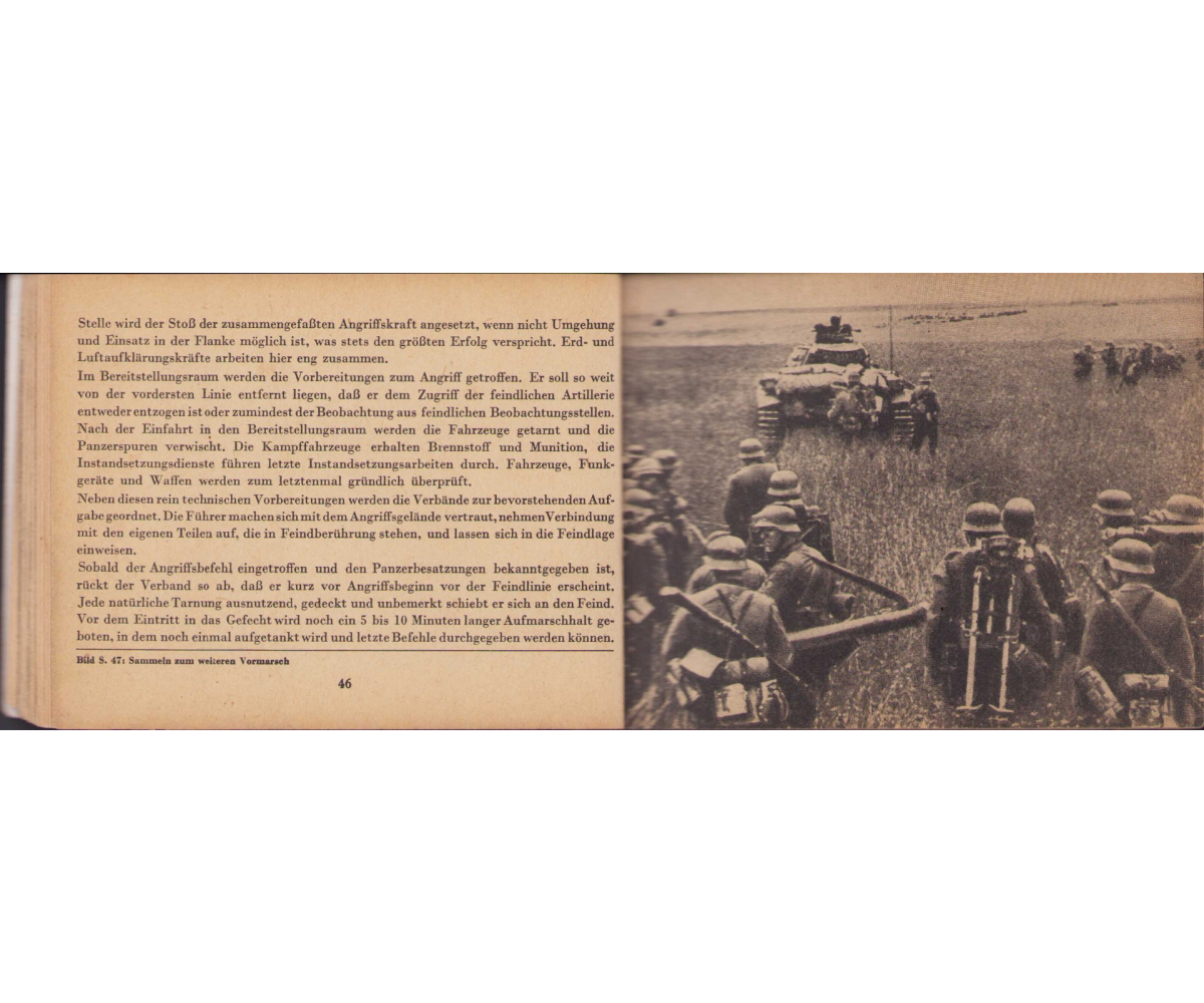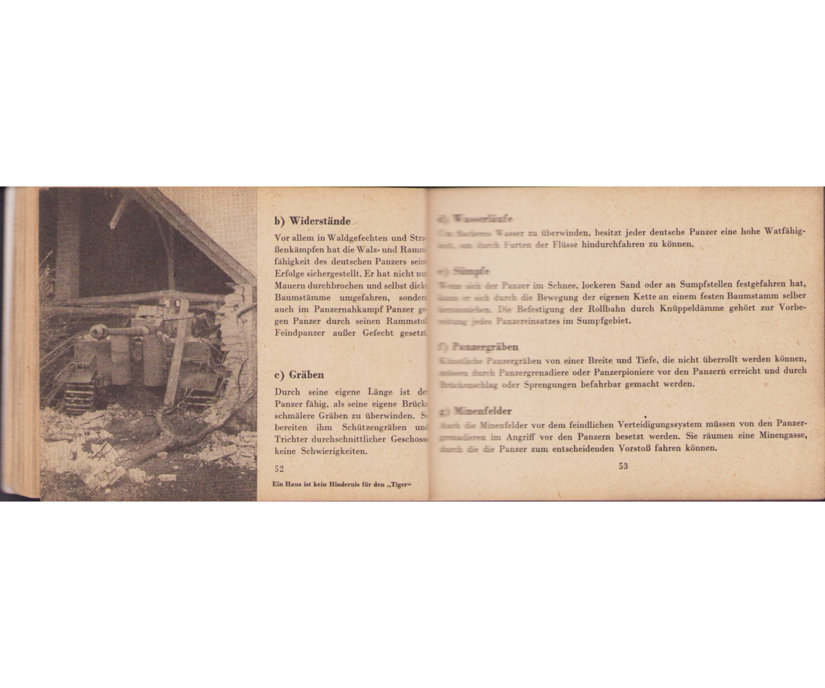 The small book shows overall normal signs of wear. It's solid and complete with all 128 pages. Contains loads of illustrations about tanks from the Wehrmacht and the Allies. Also technical information. Printed in 1944.