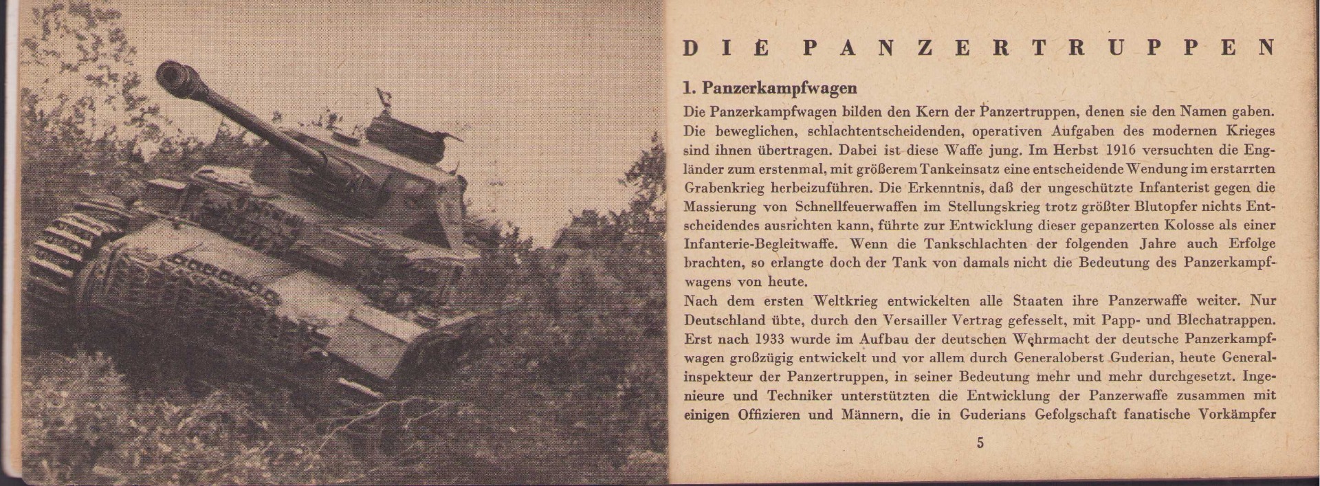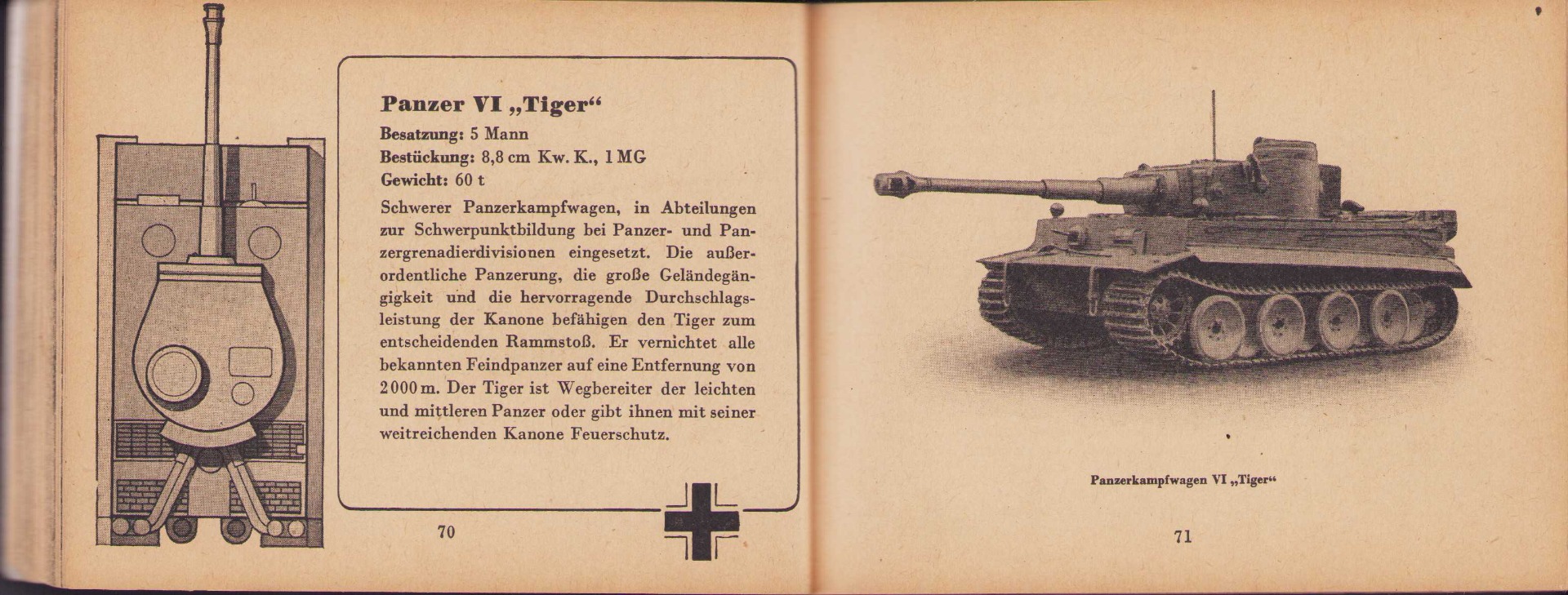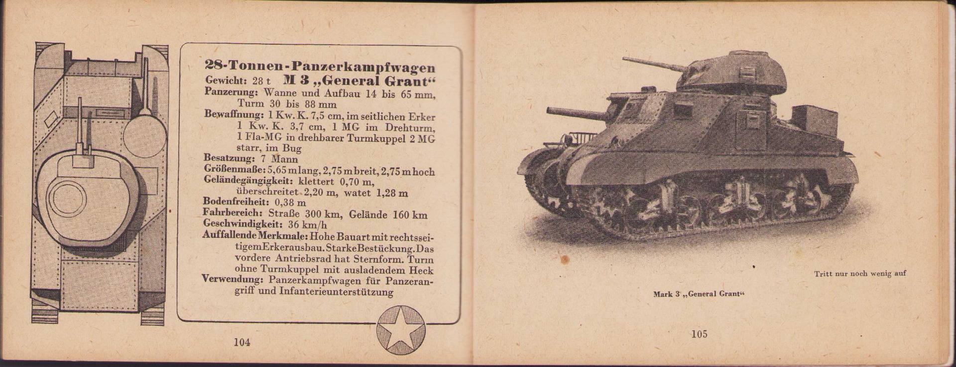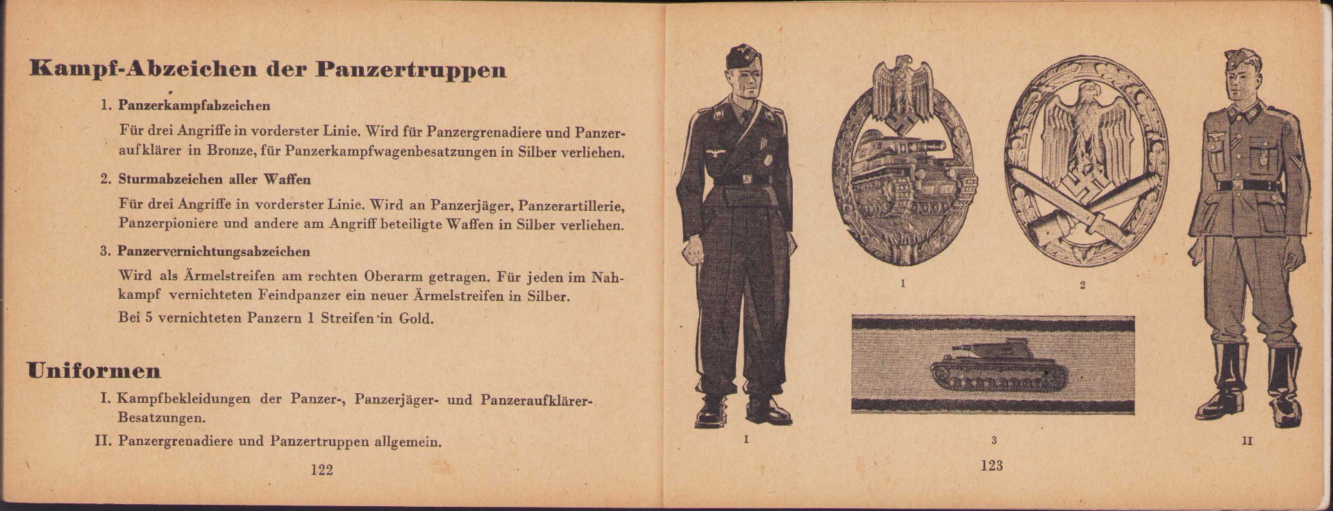 The small book shows overall normal signs of wear. It's solid and complete with all 128 pages. Contains loads of illustrations about tanks from the Wehrmacht and the Allies. Also technical information. Printed in 1944.