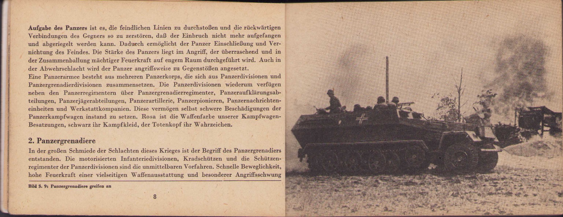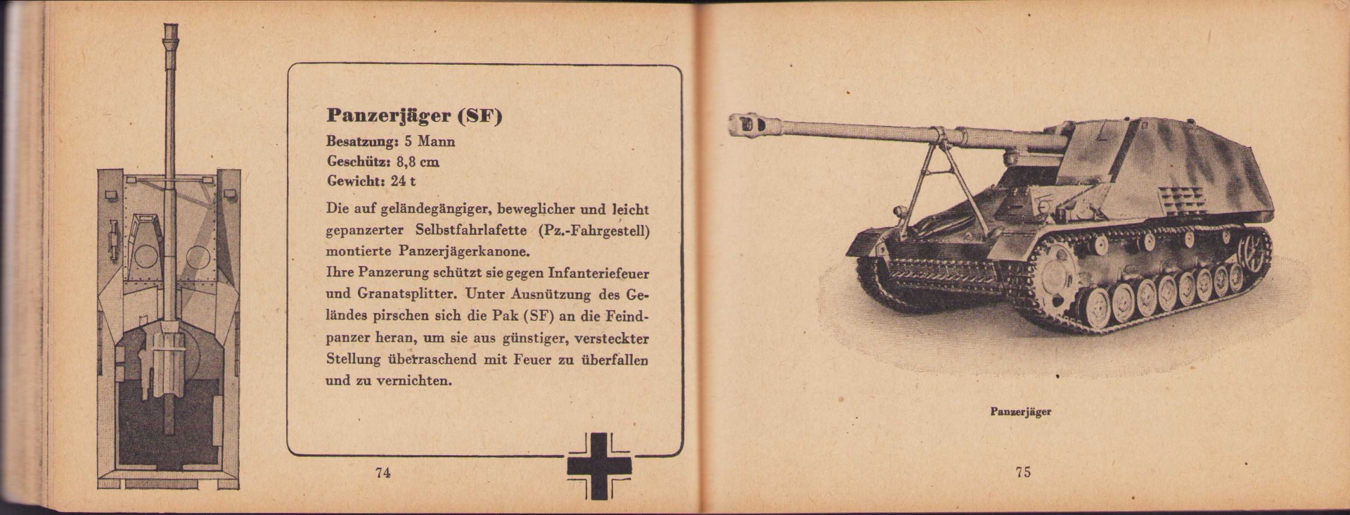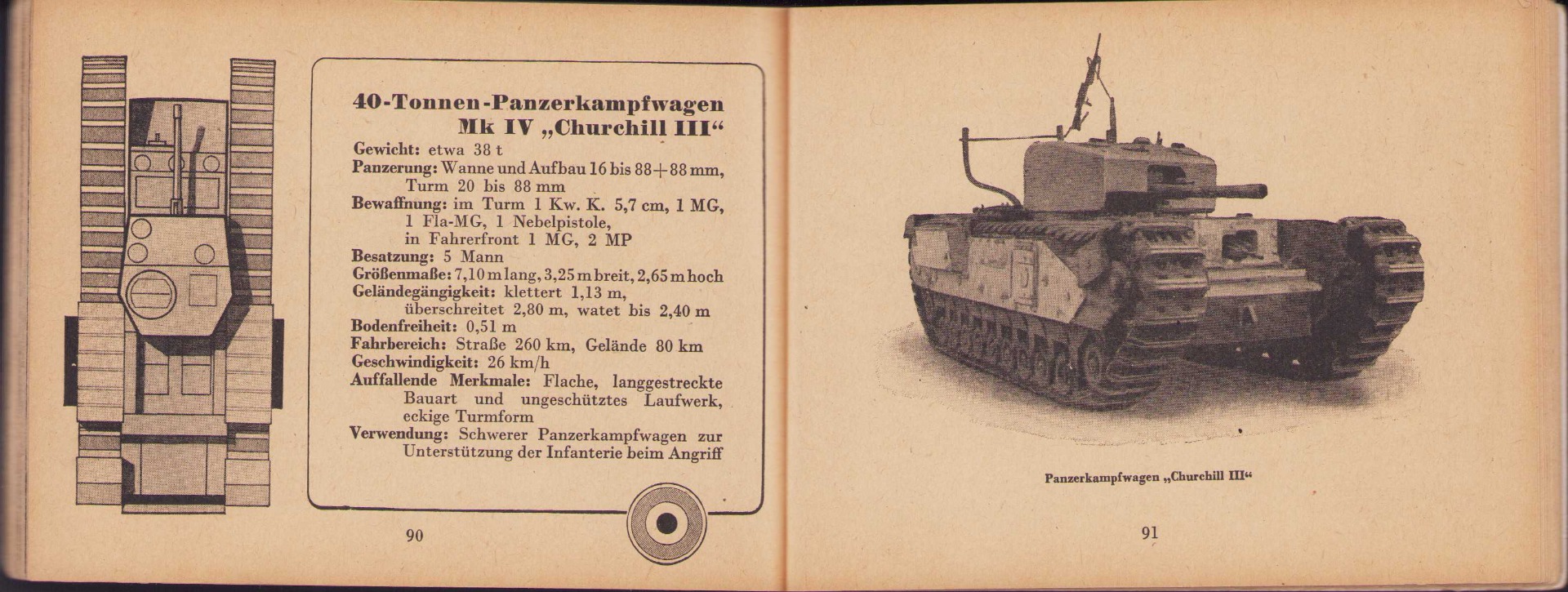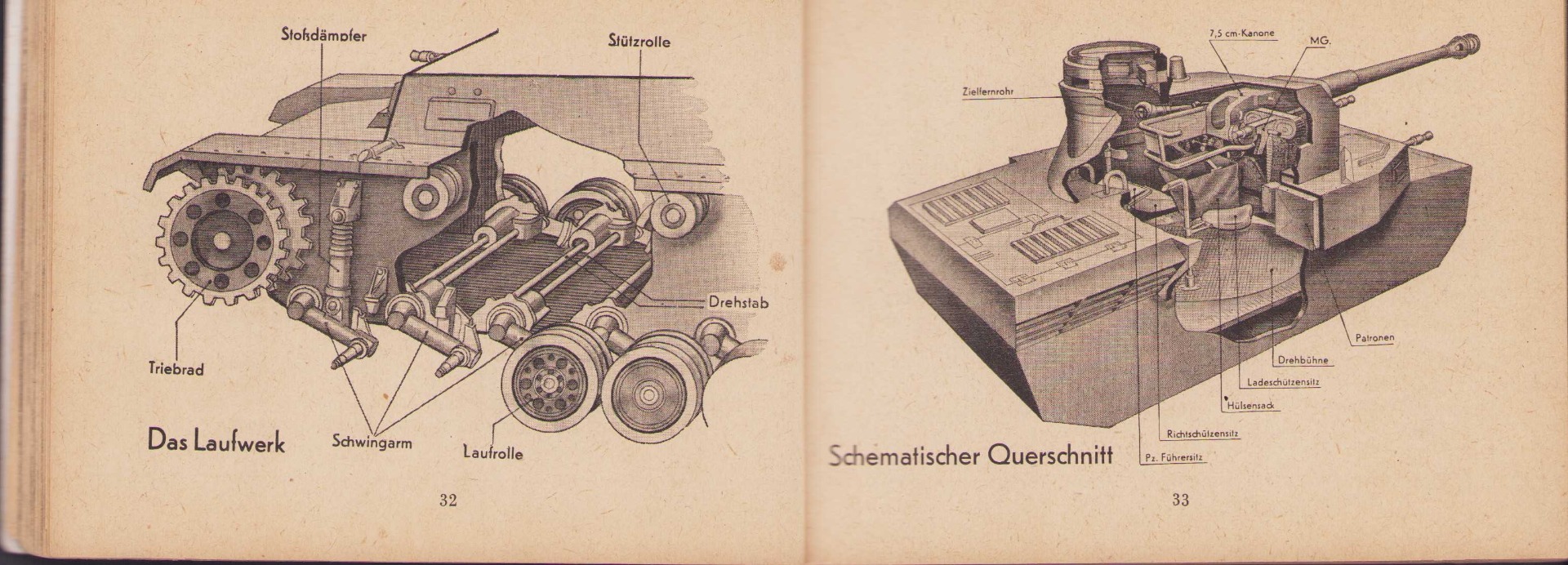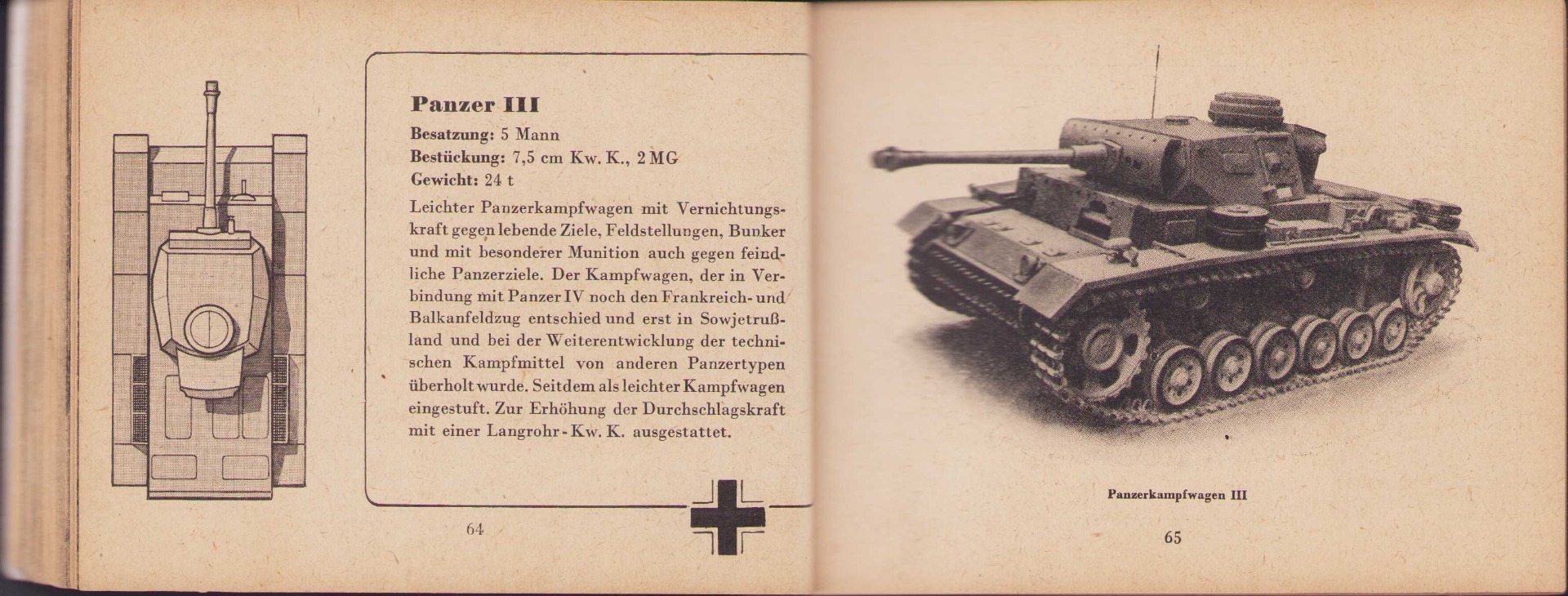 The small book shows overall normal signs of wear. It's solid and complete with all 128 pages. Contains loads of illustrations about tanks from the Wehrmacht and the Allies. Also technical information. Printed in 1944.