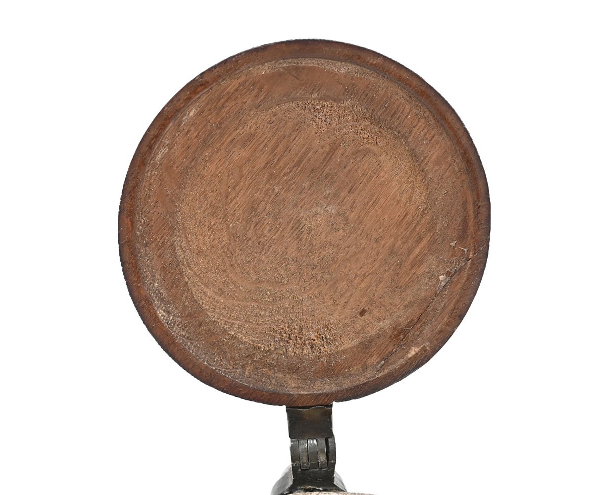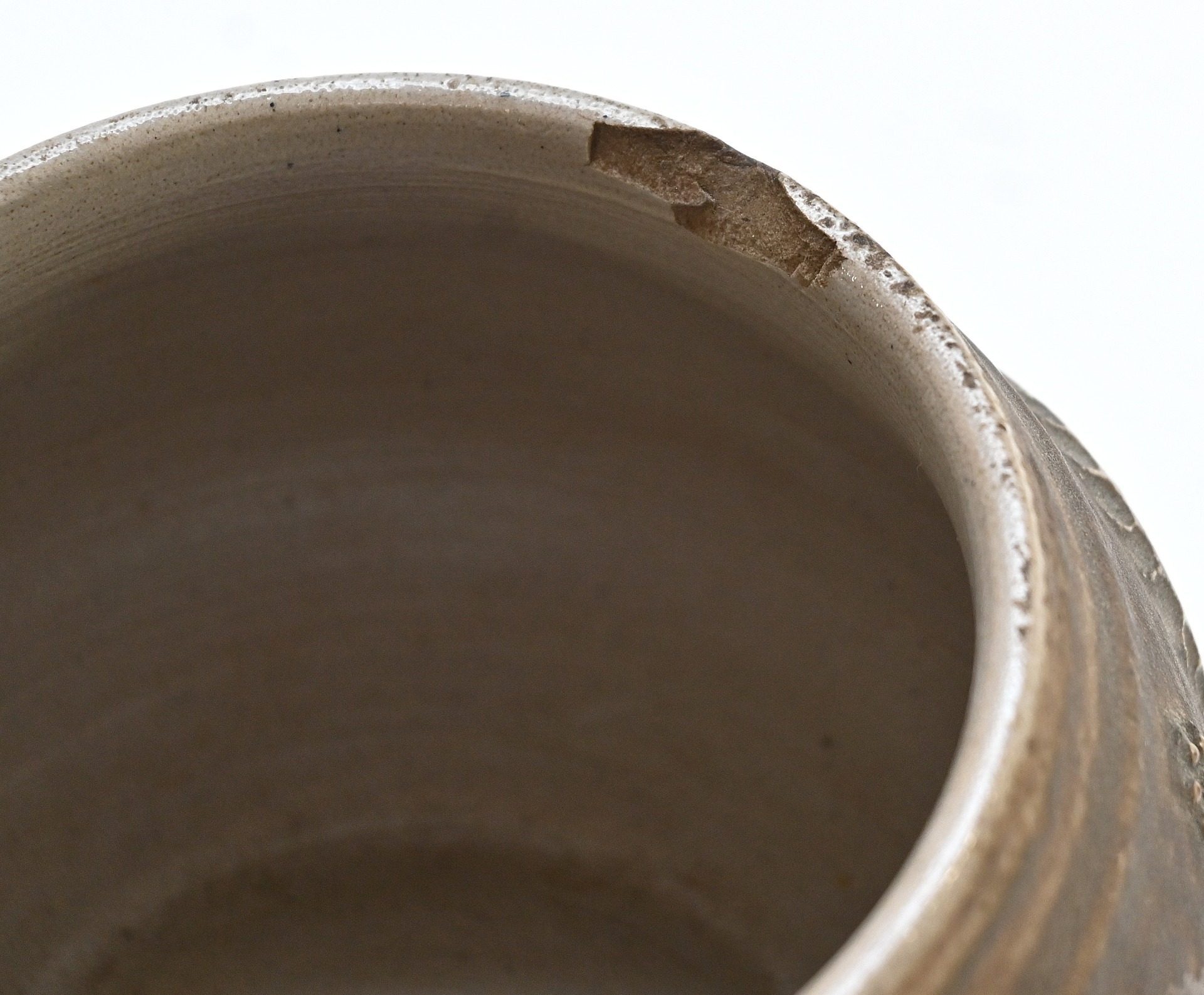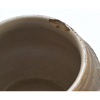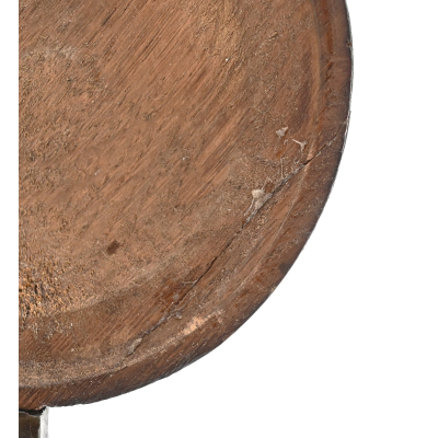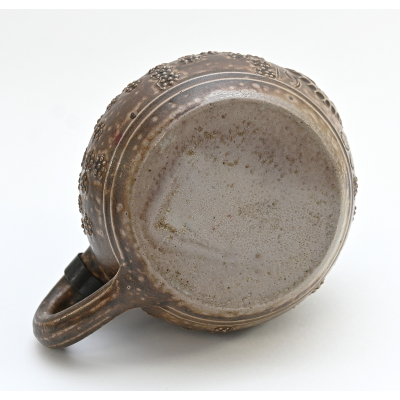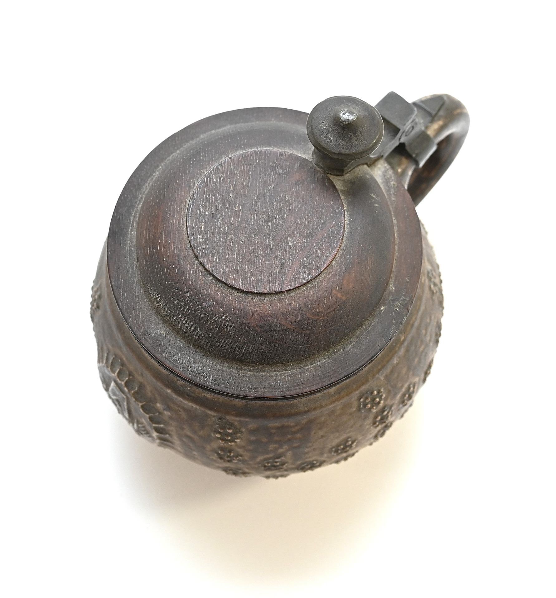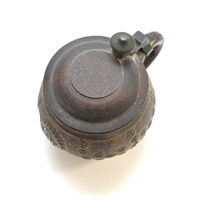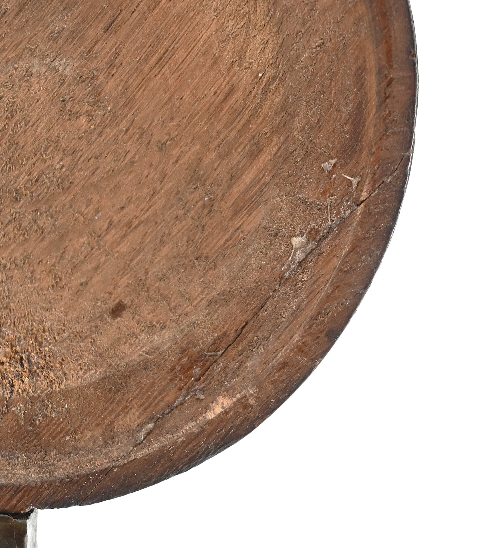 The beer stein shows overall normal signs of wear. It was issued in the year 1936. What makes this stein unique is that it has a wooden lid instead of a zinc one.