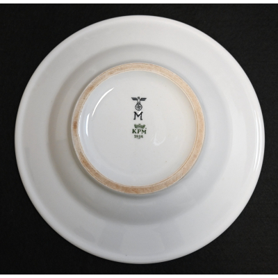 It is in excellent condition and shows only some normal signs of user scratches. Nicely marked at the bottom with the Kriegsmarine acceptance stamp, the maker 'KPM' and the year of production '1938'. The grey-black-grey lined decoration means it was issued for Beamte of the Kriegsmarine. The diameter is approx. 25cms.