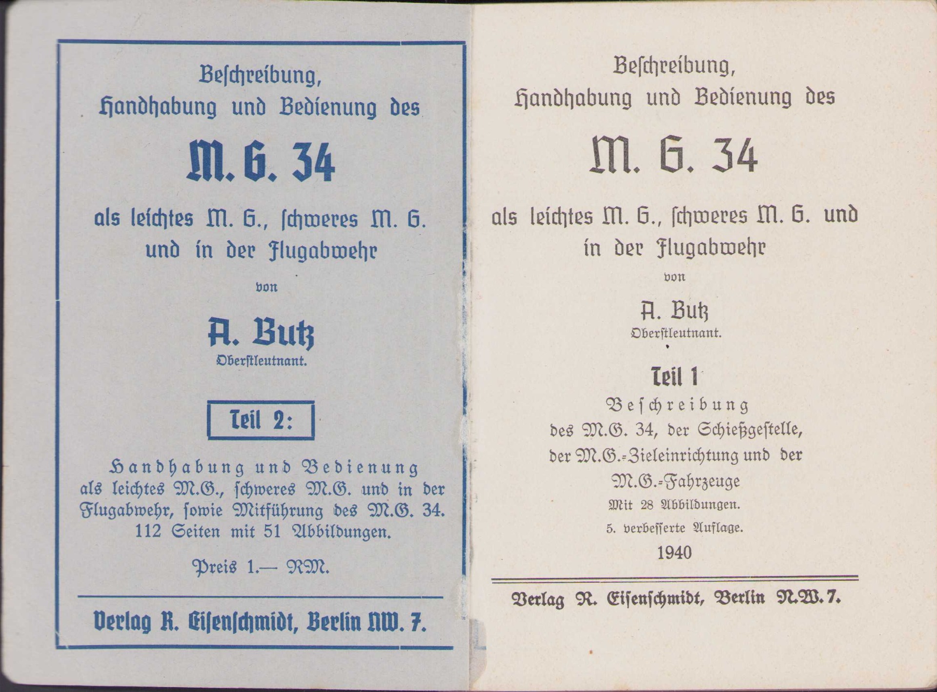 Very nice and hard to find MG34 instruction booklet part 1 in used, but good condition.