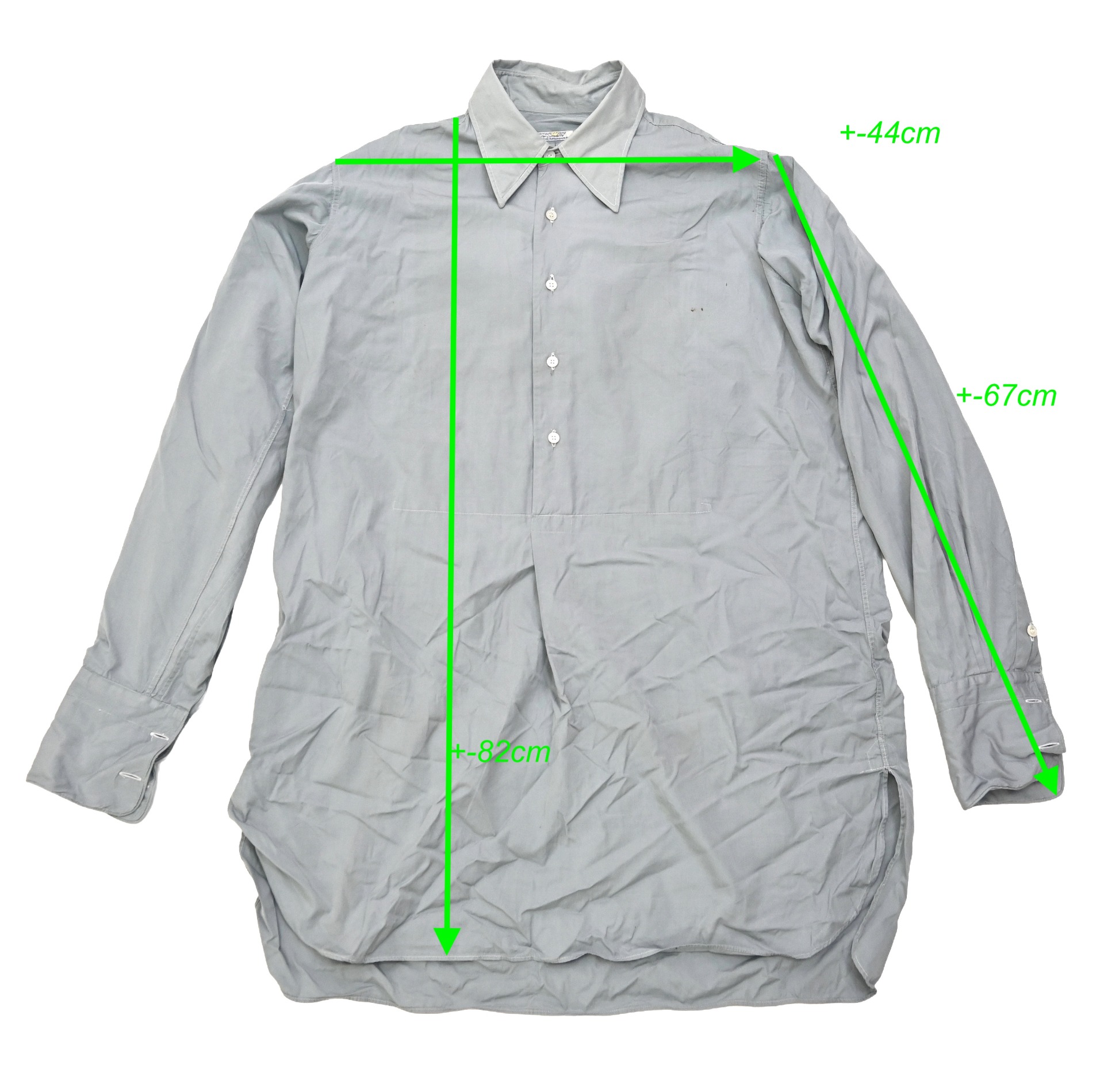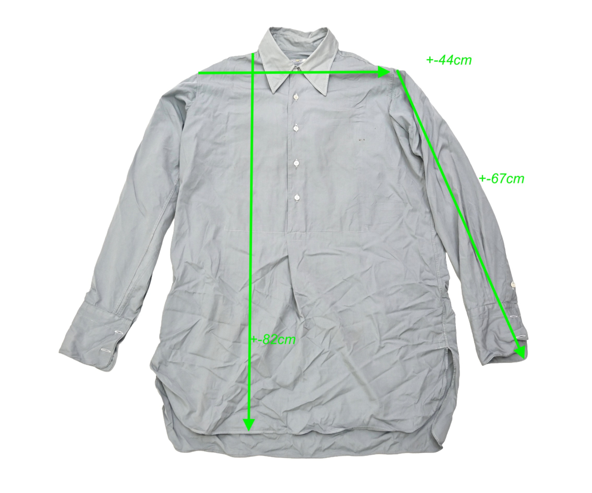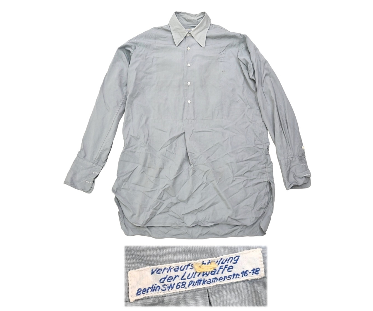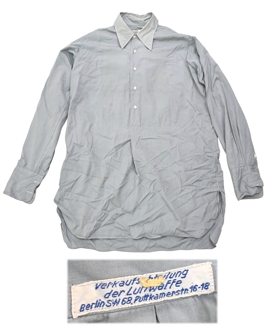 These shirts where used by luftwaffe soldiers to wear, among else, under their 'Fliegerbluse' or 'Viertaschenrock'. It's in excellent condition and complete with buttons and 'Verkaufsabteilung der Luftwaffe Berlin' tag in the neck. For the sizes in cm, please see the last photo.
