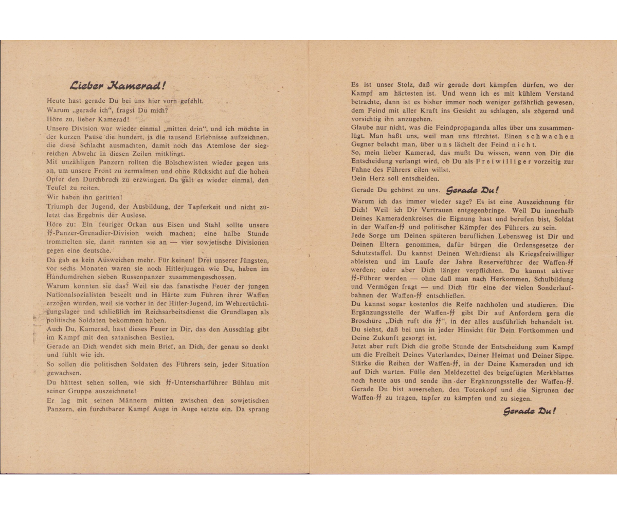 Very nice and hard to find Waffen-ss related recruitment folder/flyer in very good condition.