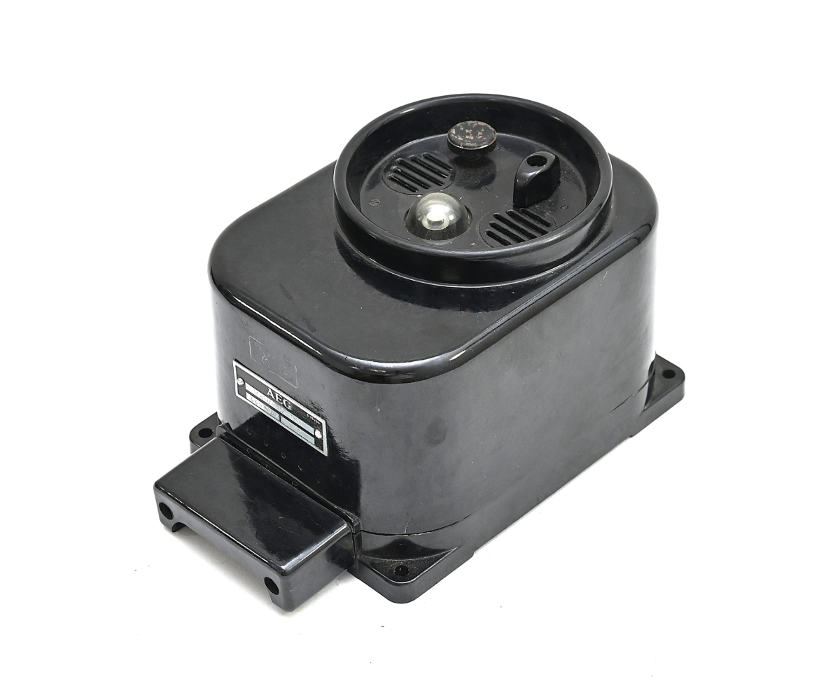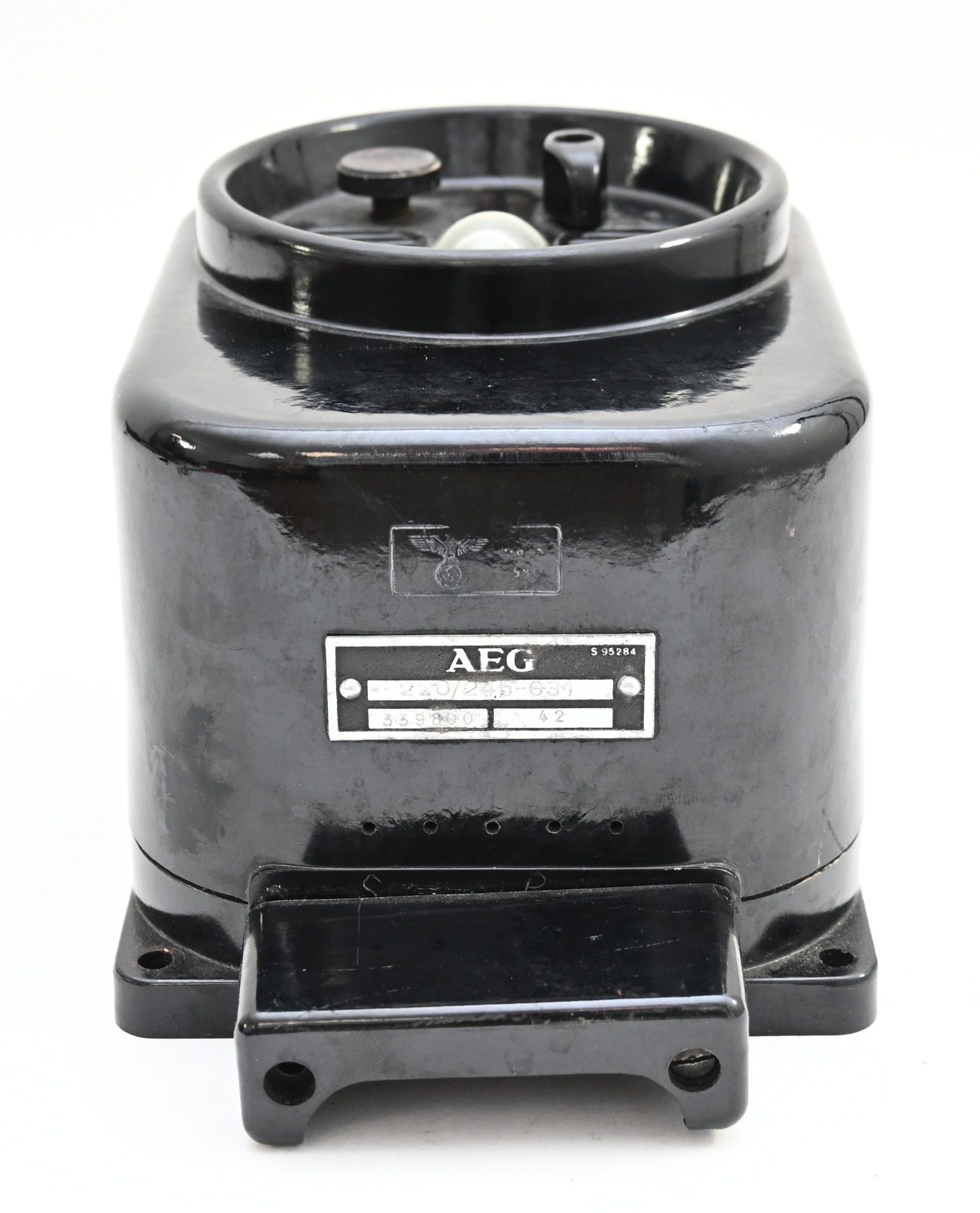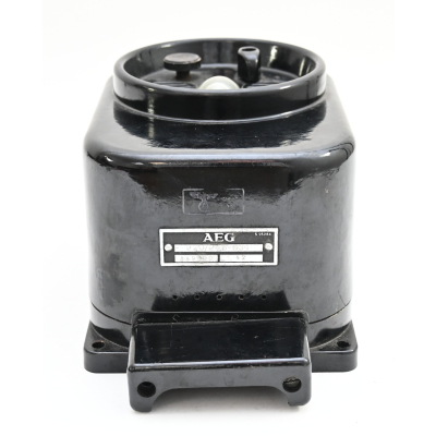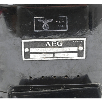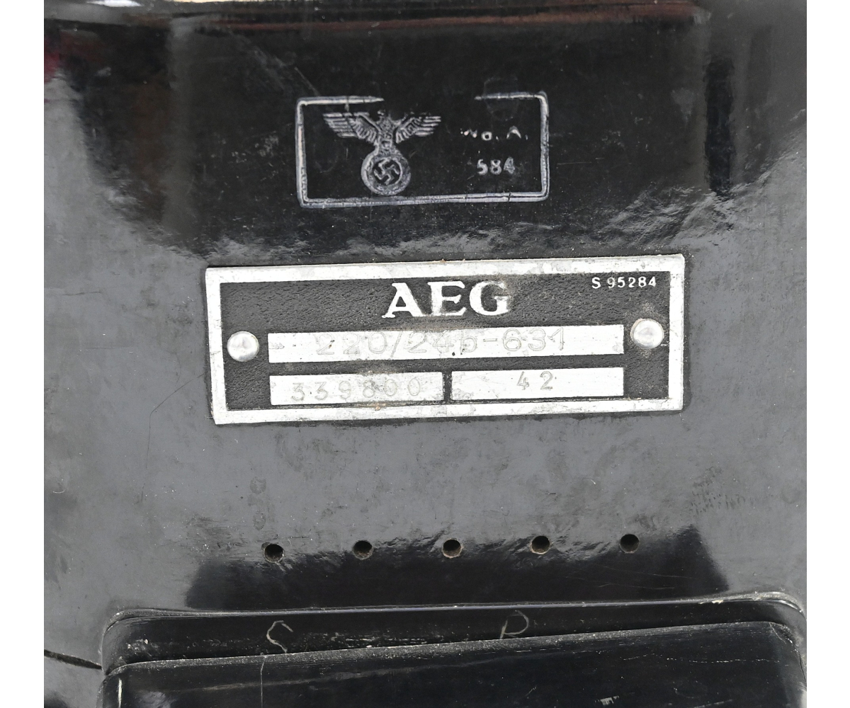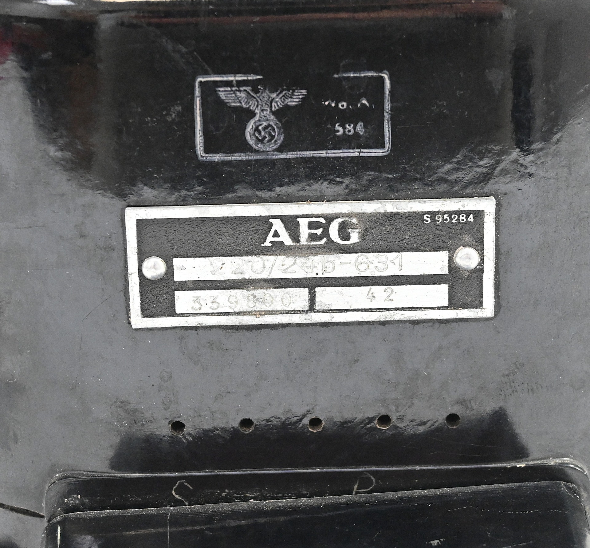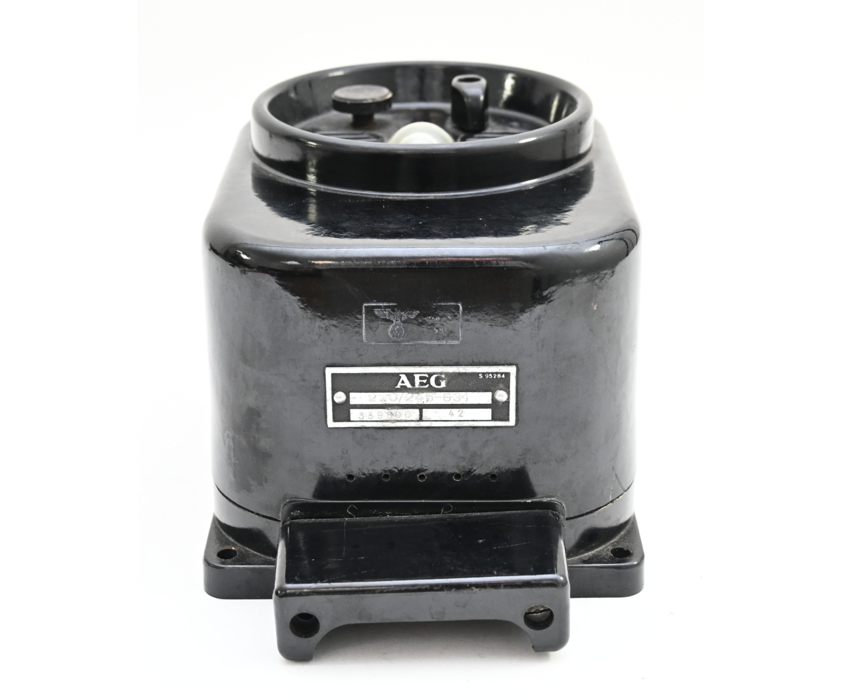 The device shows overall normal signs of wear. The bakelite is solid and there are no damages. Nicely marked on the bottom with a white WaA584 marking and the AEG factory tag which is dated 1942. This device was probably used in barracks or government buildings.