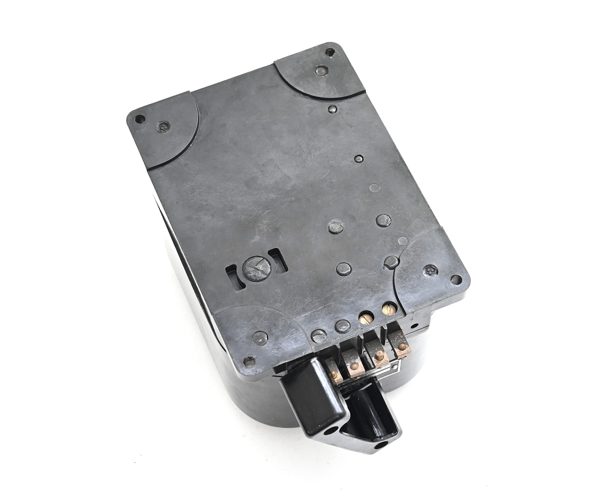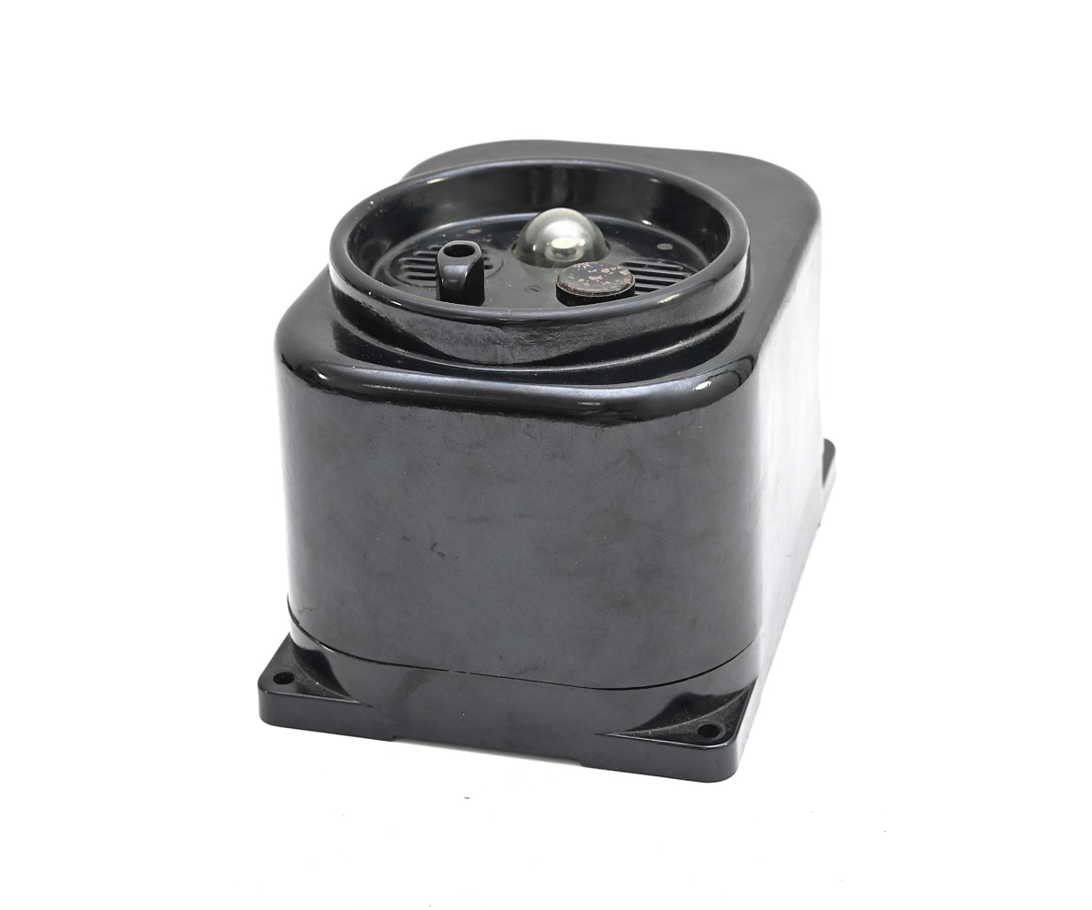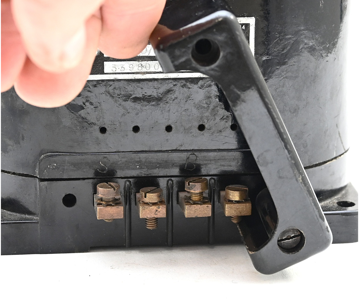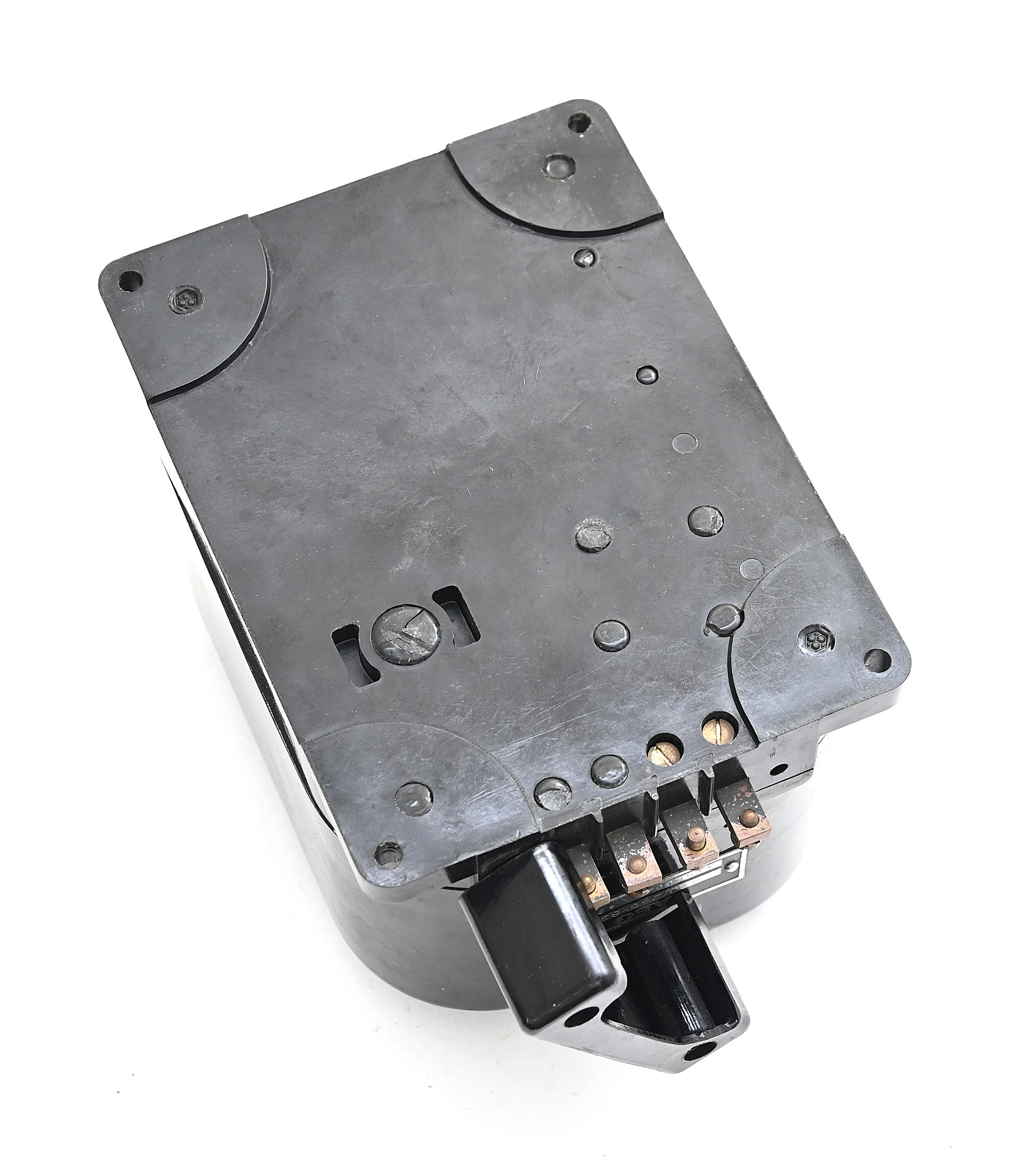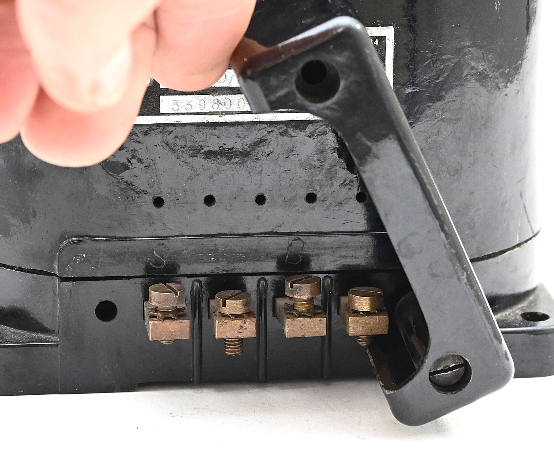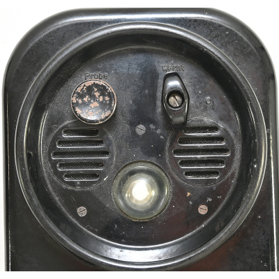 The device shows overall normal signs of wear. The bakelite is solid and there are no damages. Nicely marked on the bottom with a white WaA584 marking and the AEG factory tag which is dated 1942. This device was probably used in barracks or government buildings.
