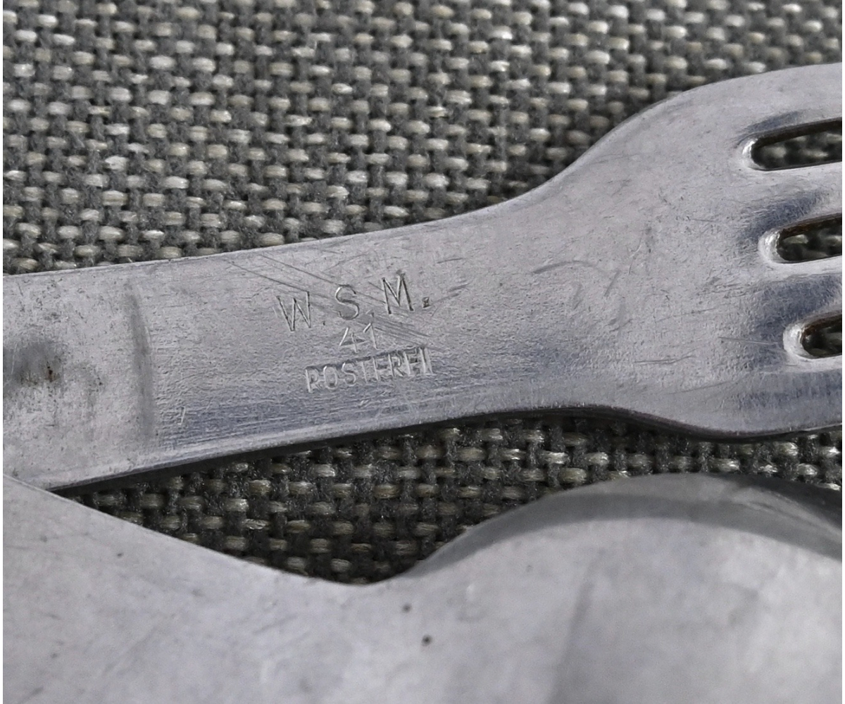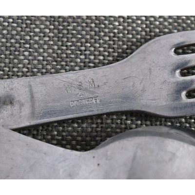 The Göffel shows overall normal signs of wear. Nicely marked on the back with the marker initials 'W.S.M.' ('Walter Solbach Metallbau) and the year of production '1941'.