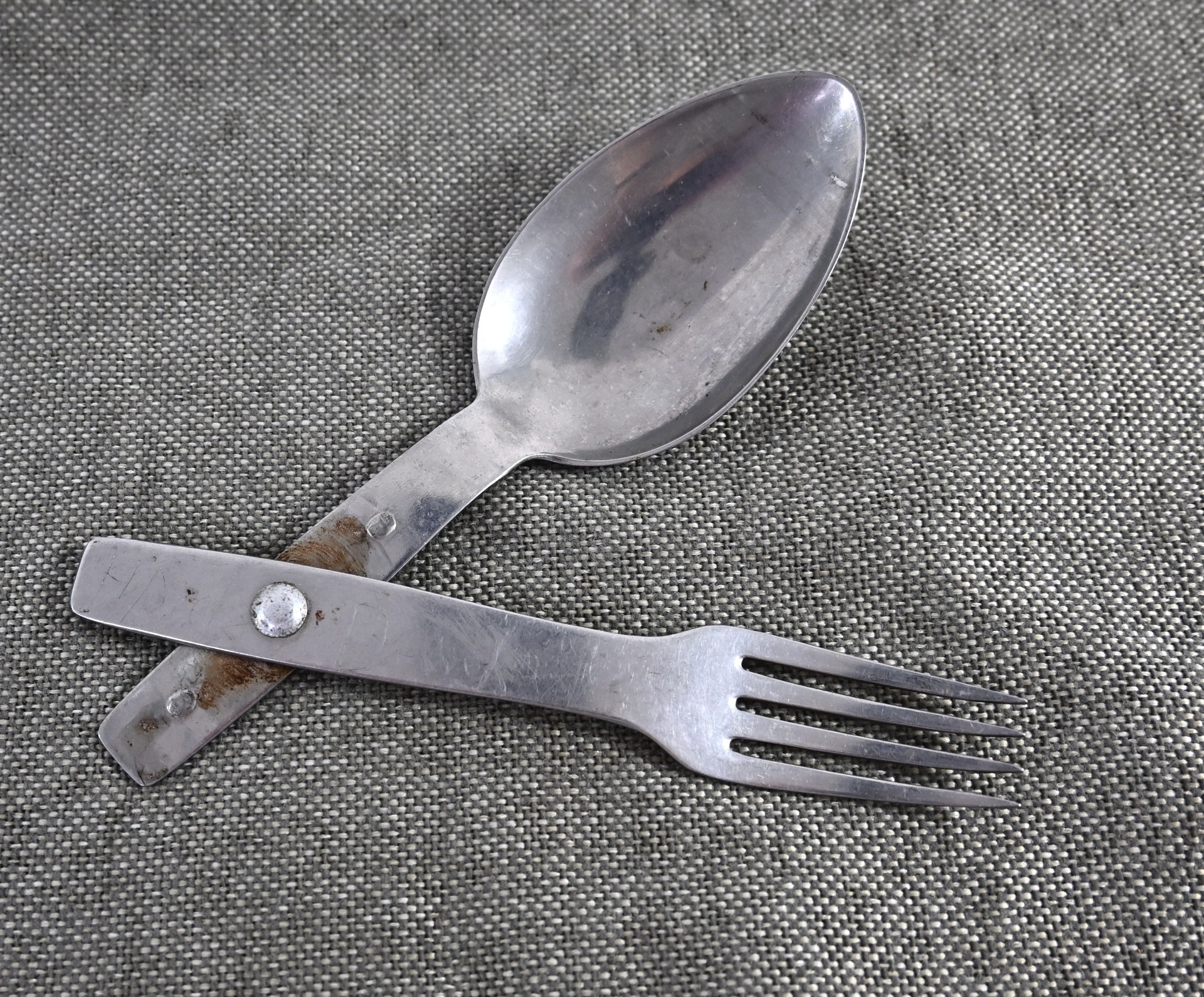 Very nice and very hard to find folding spoon and fork made from stainless steel in very good condition.