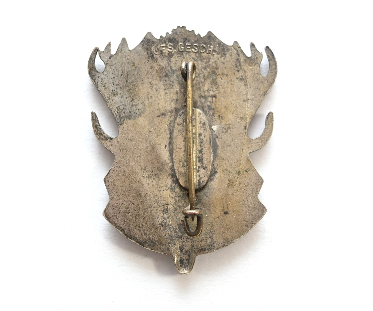 The abzeichen or badge shows overall normal signs of wear. Its complete with needle on the back and marked 'Ges.Gesch.'.