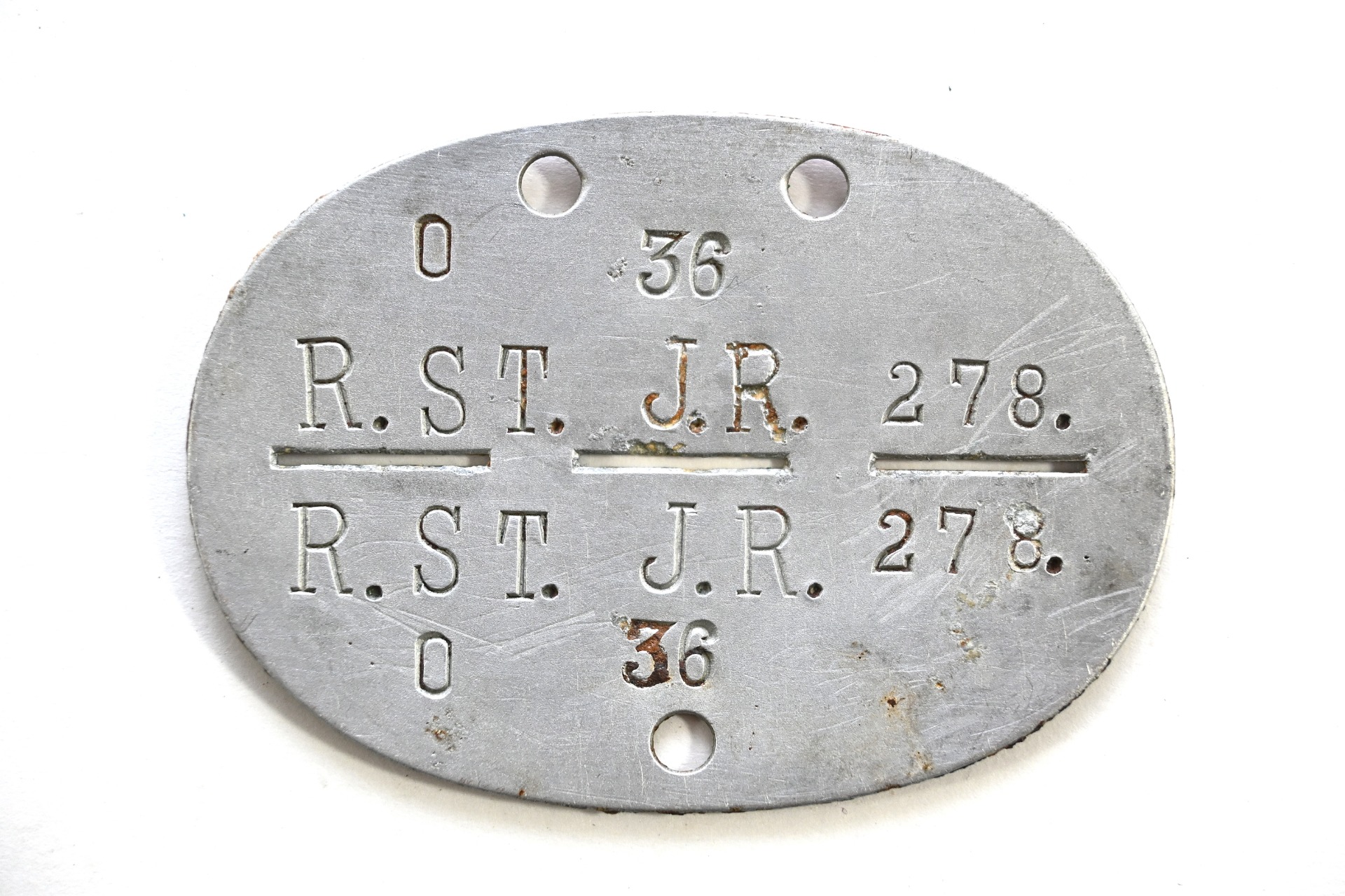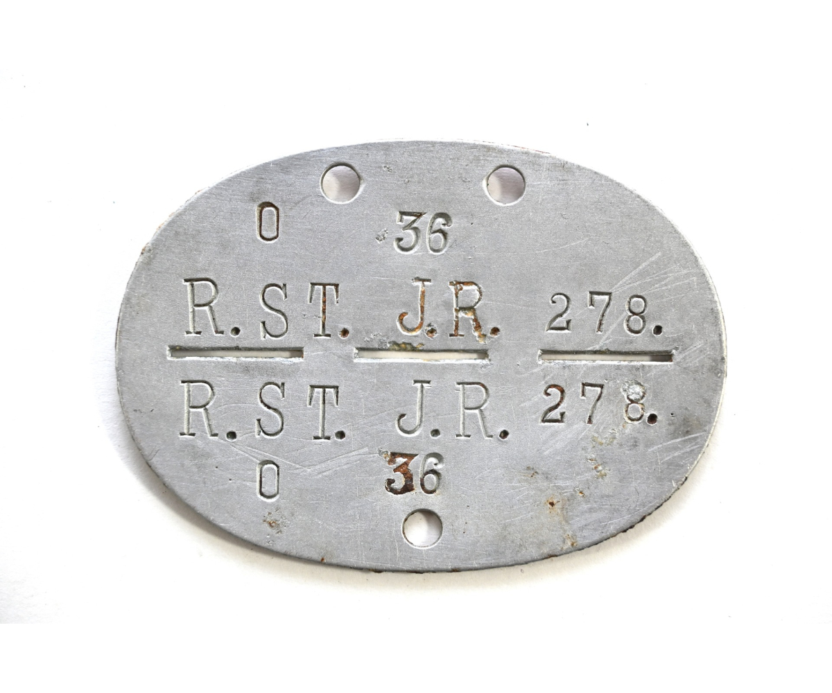 The tag or 'Erkennungsmarke' shows overall normal signs of wear. It belonged to a NCO/CO that served in the Regimentsstab Infanterie Regiment 278. This regiment was formed in late August 1939 and was part of the 95.Infanterie-Division. It saw its first combat during the invasion of France in Mai 1940. From June 1941 onwards it operated in the east in Urkaine, Brjansk, Kursk, Rshew, Gomel, Bobriusk and more.