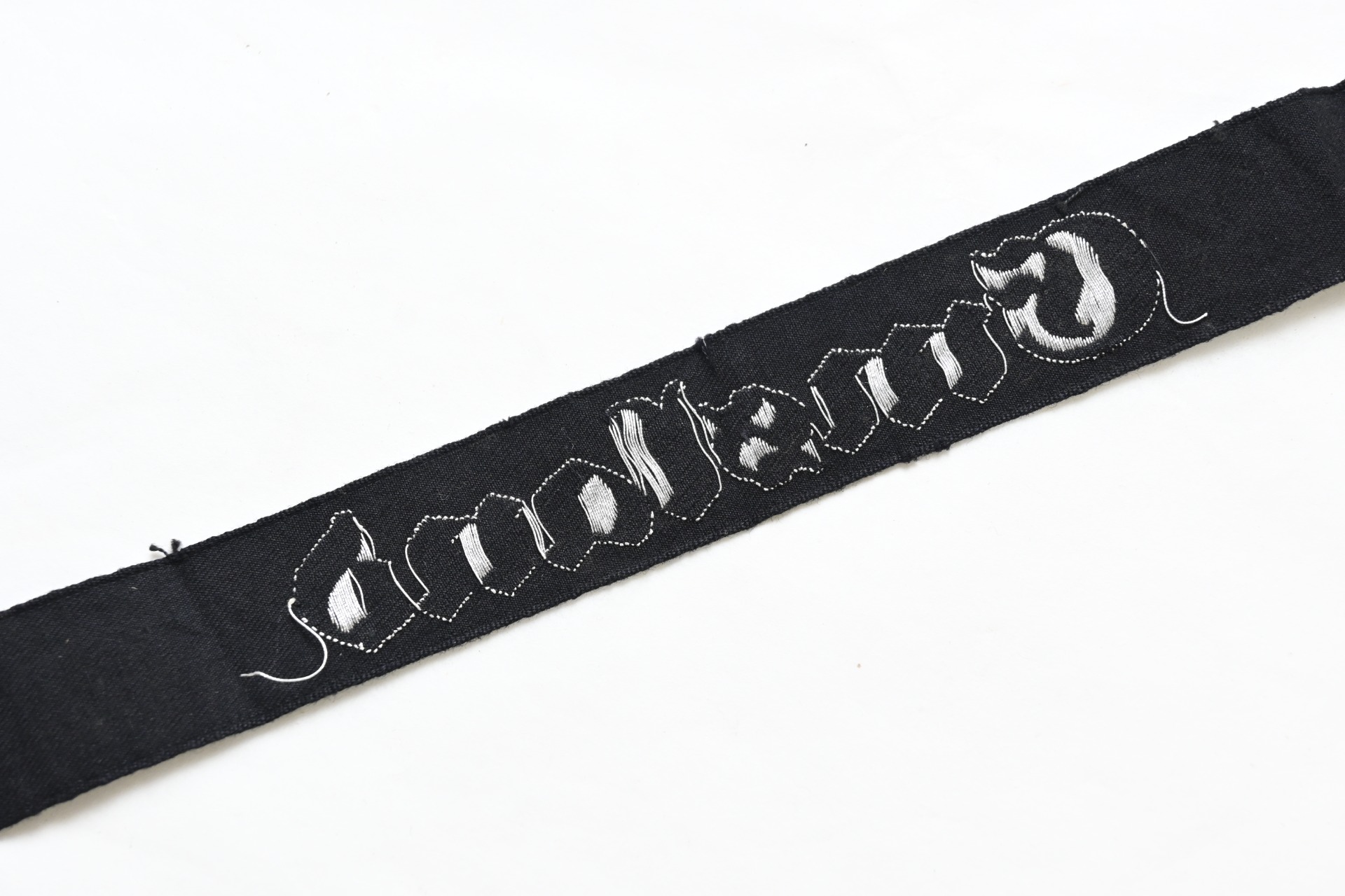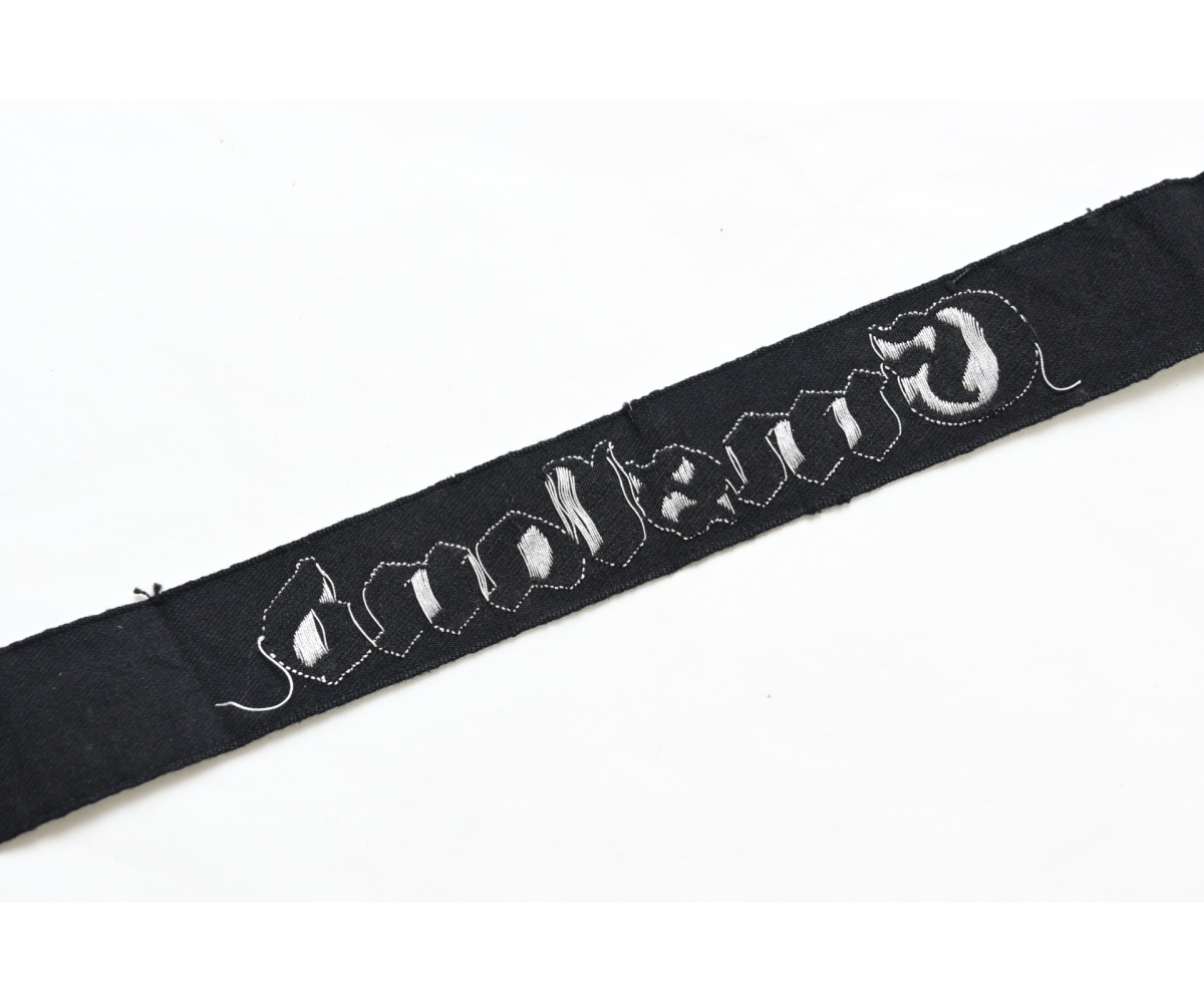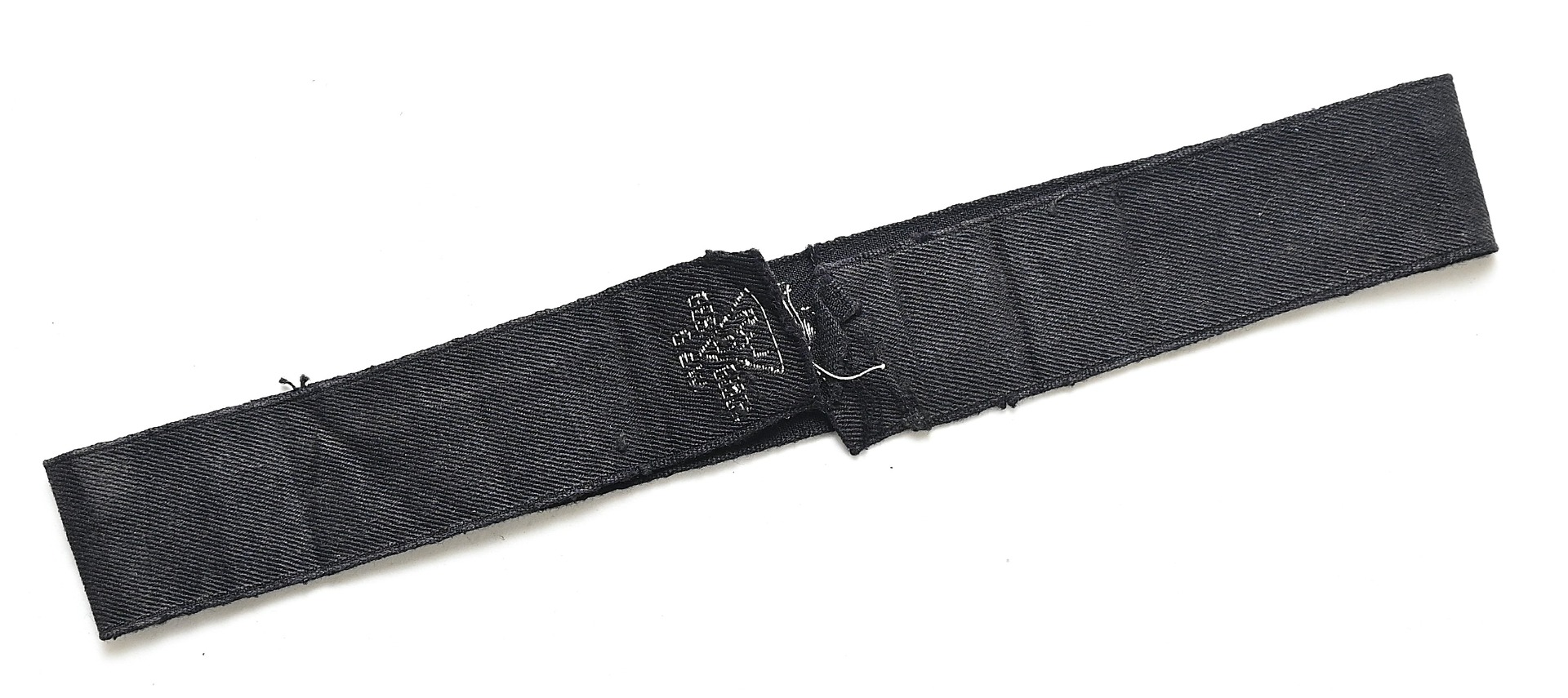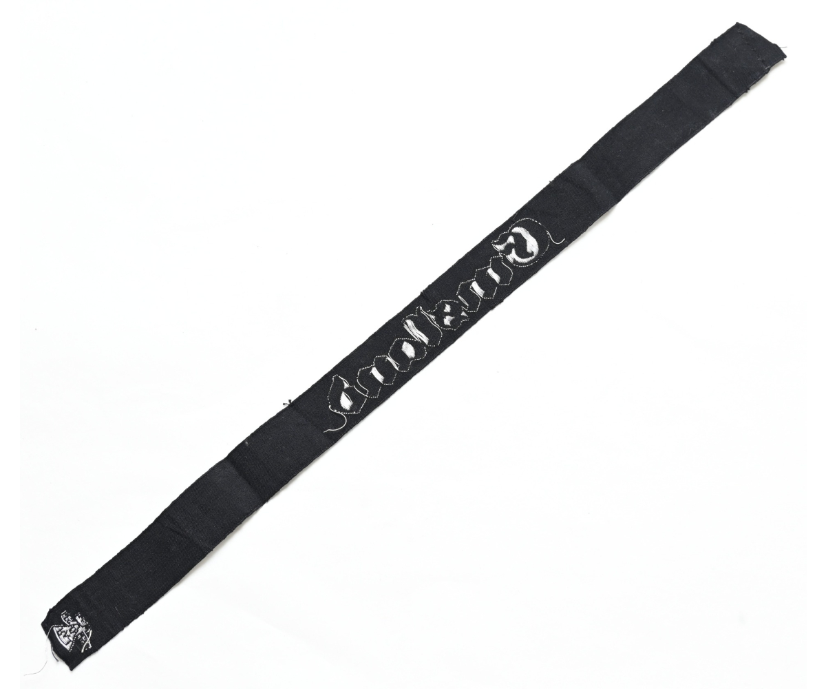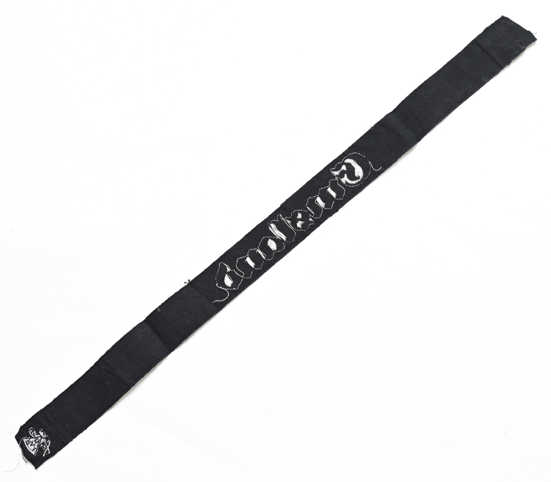 The cufftitle shows overall normal signs of wear. It has been removed from a uniform at some point. The length is 40cms.