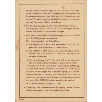 Very nice Reichsarbeitsdienst ID-card in excellent condition.