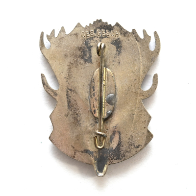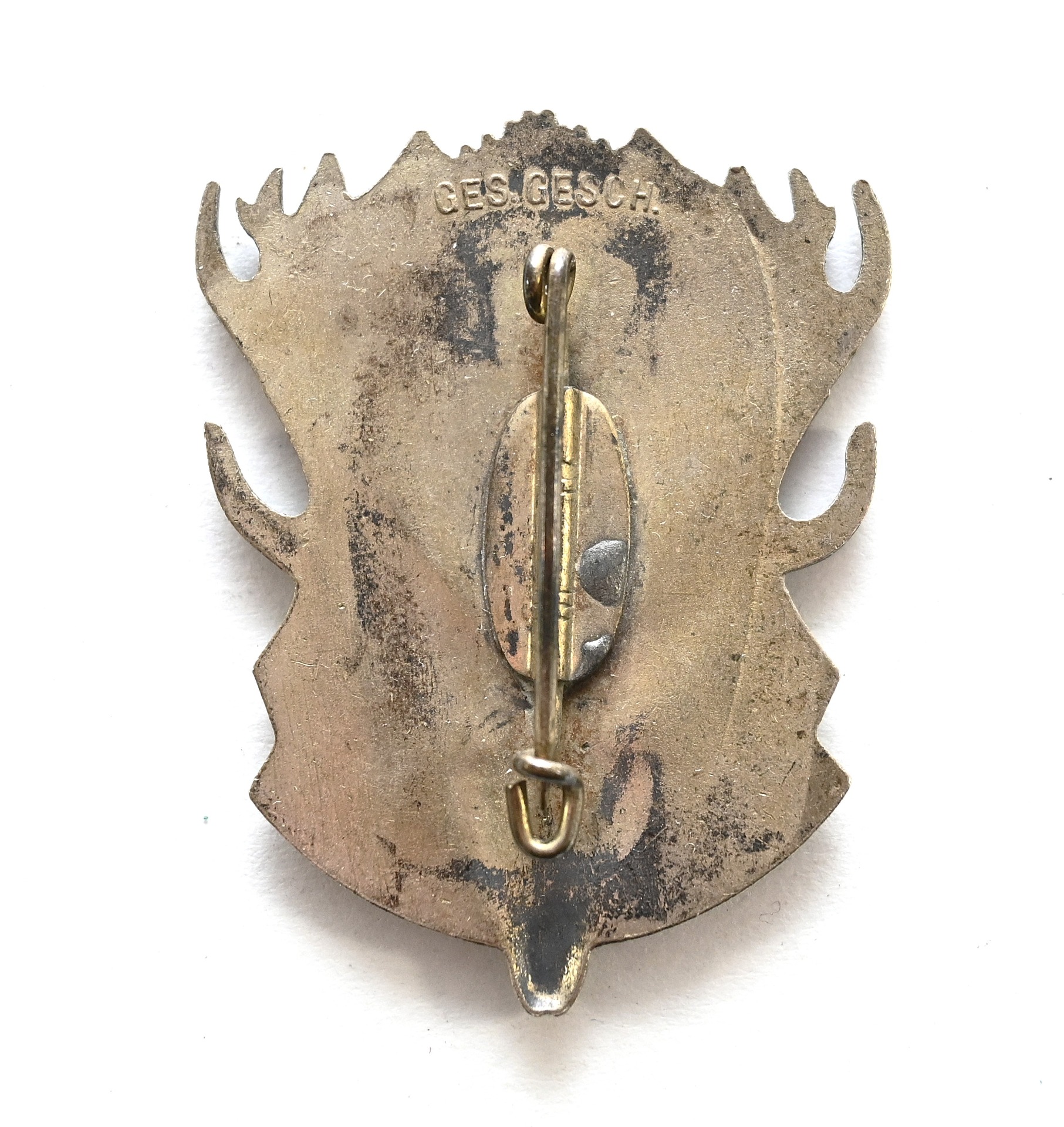 The abzeichen or badge shows overall normal signs of wear. Its complete with needle on the back and marked 'Ges.Gesch.'.