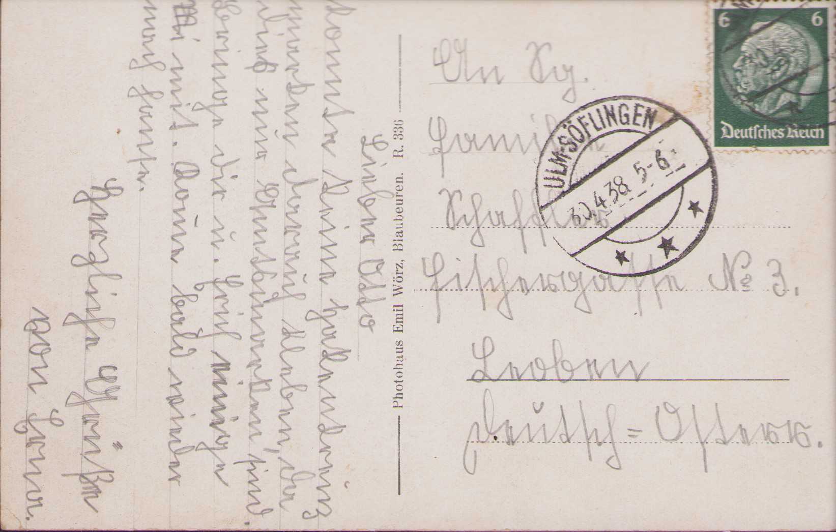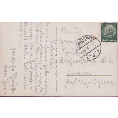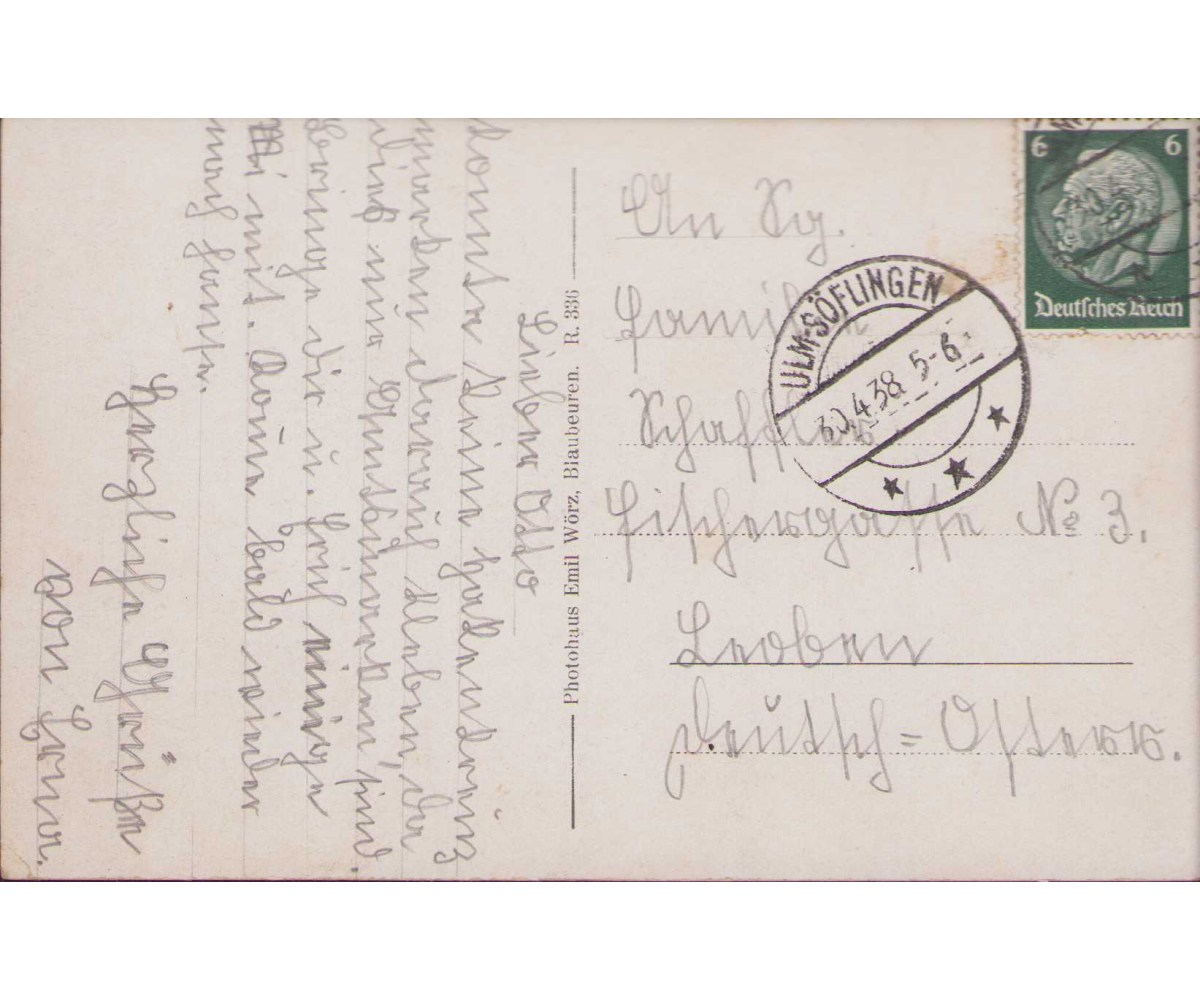The postcard shows overall normal signs of wear. Handwritten message on the back. Dated April 1938.