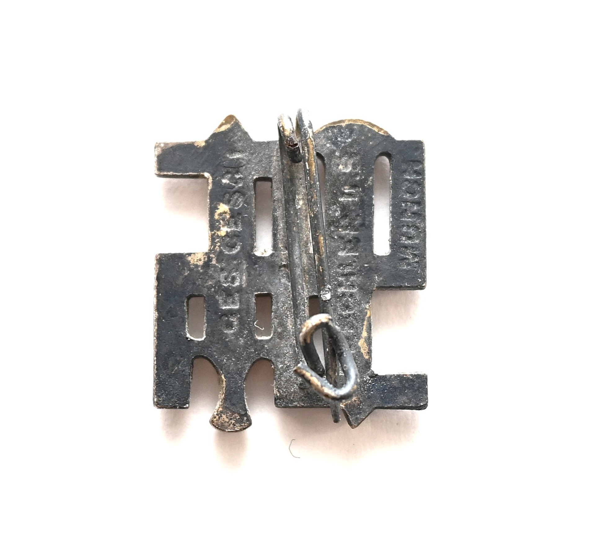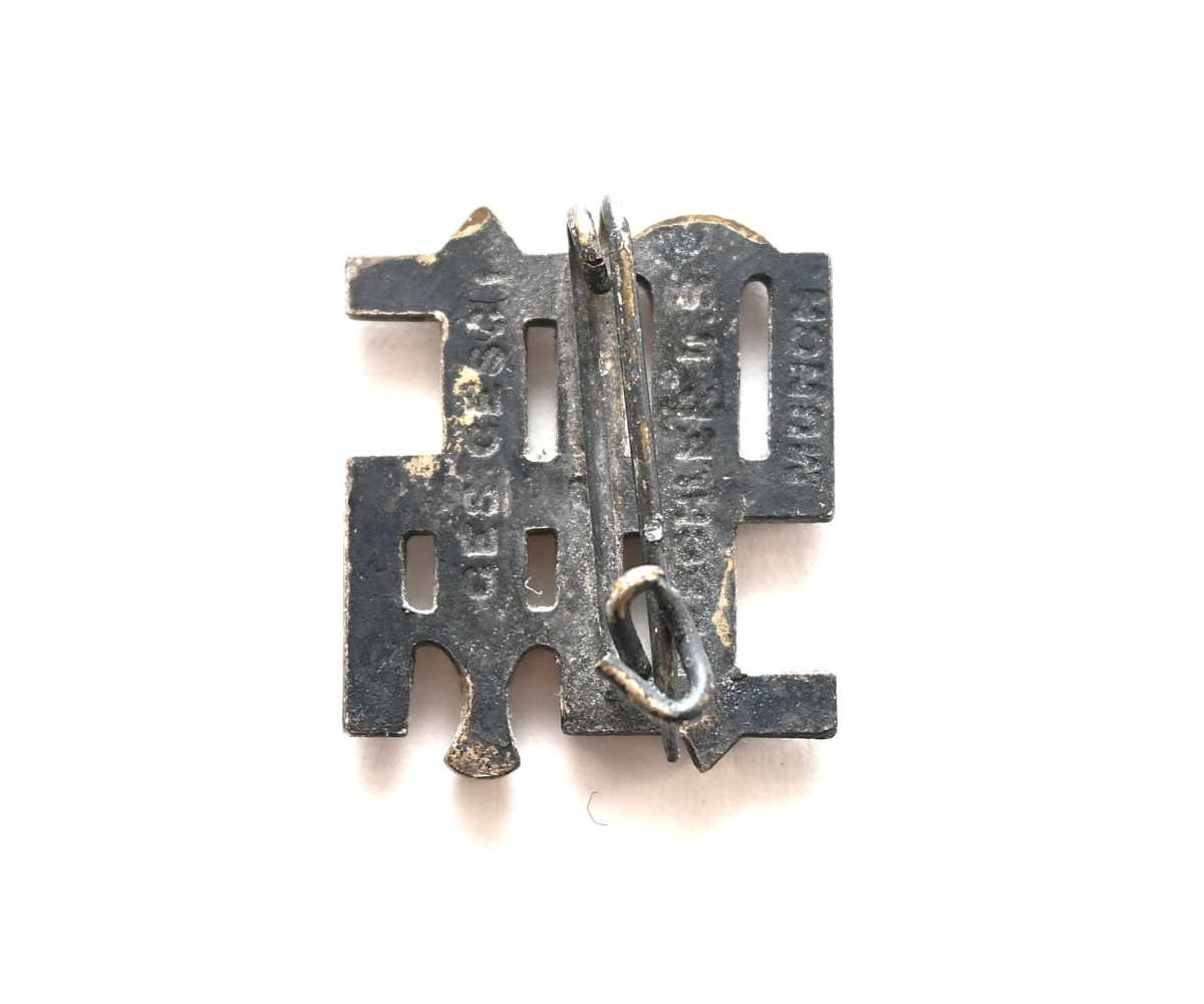The badge shows overall normal signs of wear. It's complete with working pin on the back. Marked 'Ges.Gesch' and maker marked by Deschler & Sohn from München.