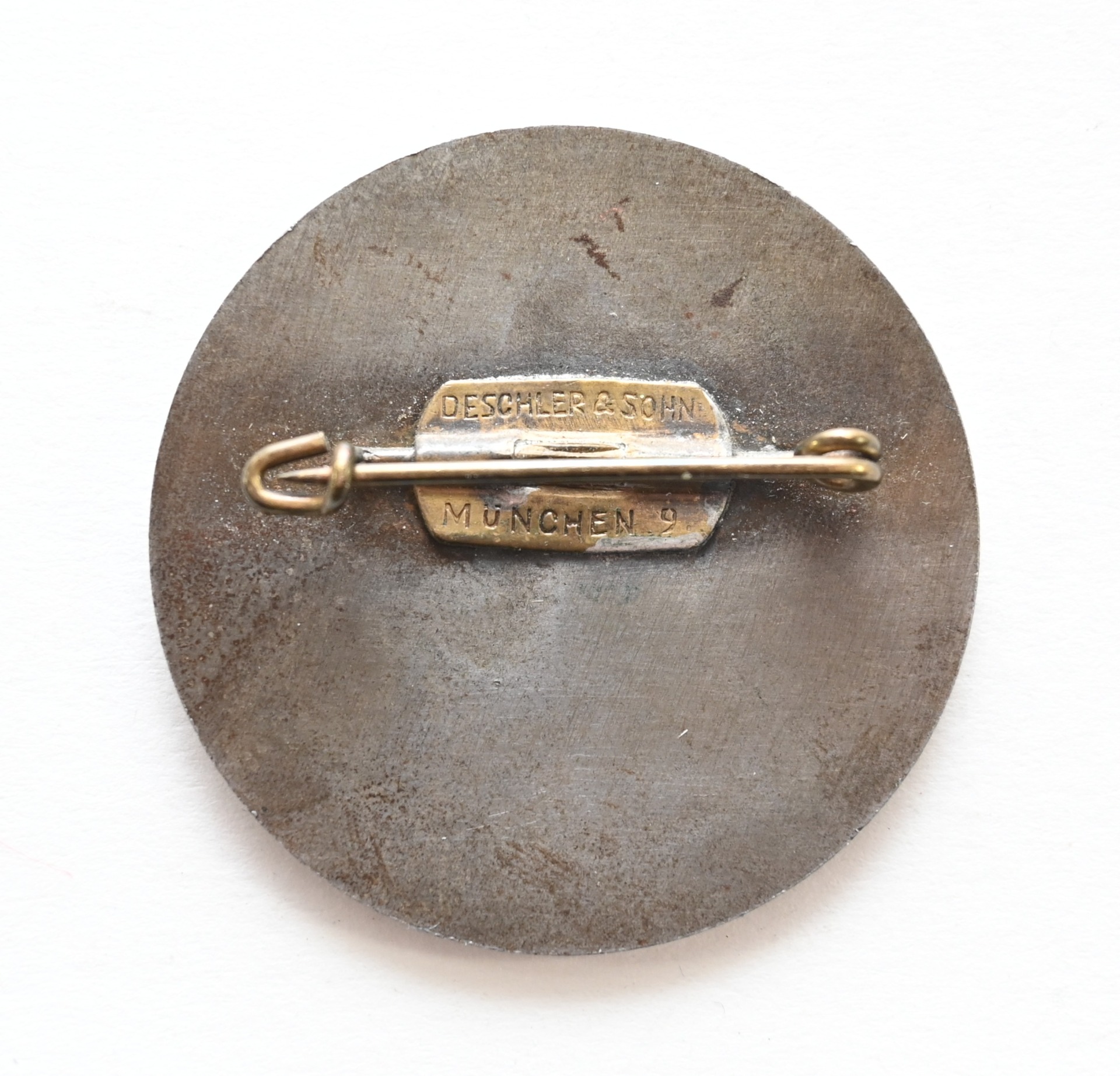 The badge, which is a solid variant shows overall normal signs of wear. It's complete with working pin on the back. Nicely marked by the maker Deschler & Sohne from München.