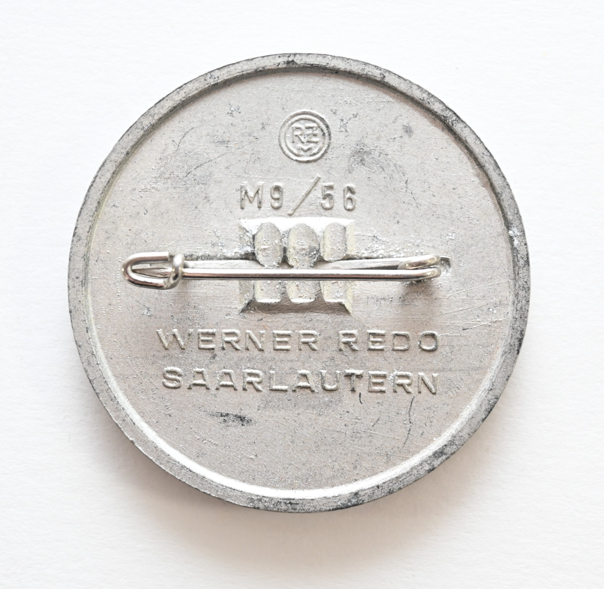 The bdge or 'Abzeichen' shows overall normal signs of wear. It's complete with needle on the back. Nicely marked 'RZM M9/56' and the maker 'Werner Redo' from Saarlautern.