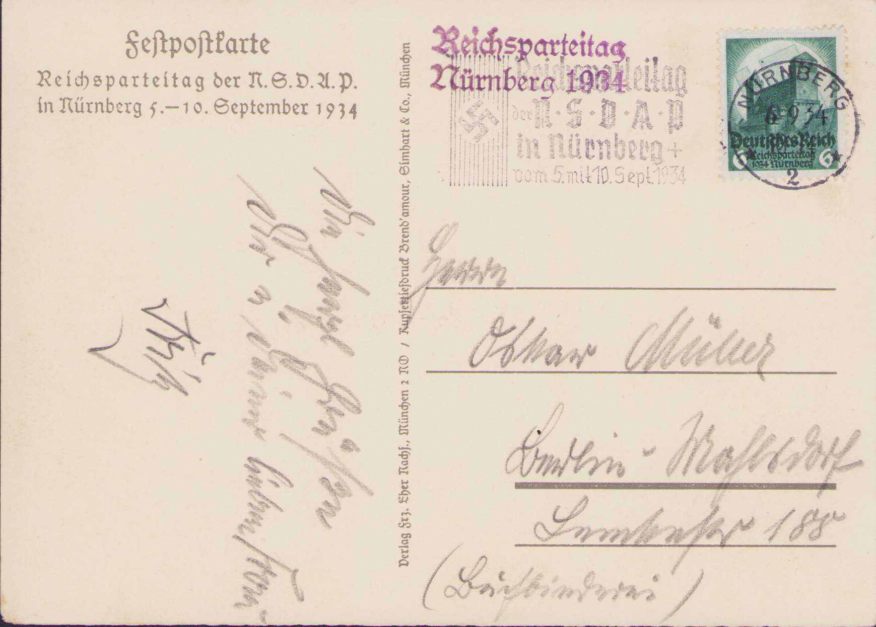 Very nice, early Thirties Reichsparteitag related postcard in used, but good condition.