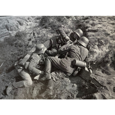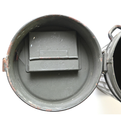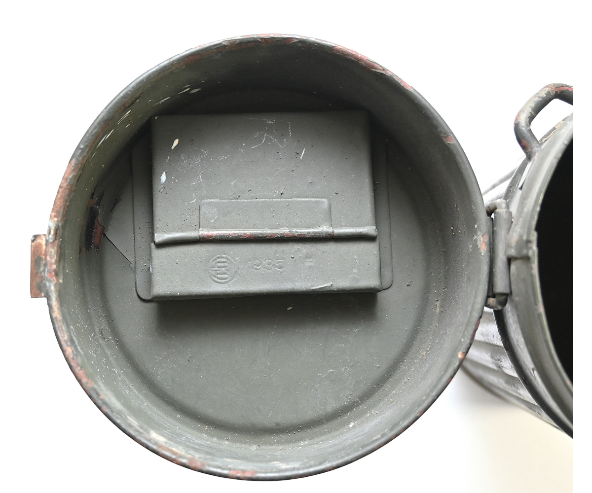 The canister shows overall normal signs of wear. It contains 99% of it's original color. Dated on the inside of the lid 1935. When the Reichswehr became the Wehrmacht large numbers of units where still equipped with this type of canister (see last photos).