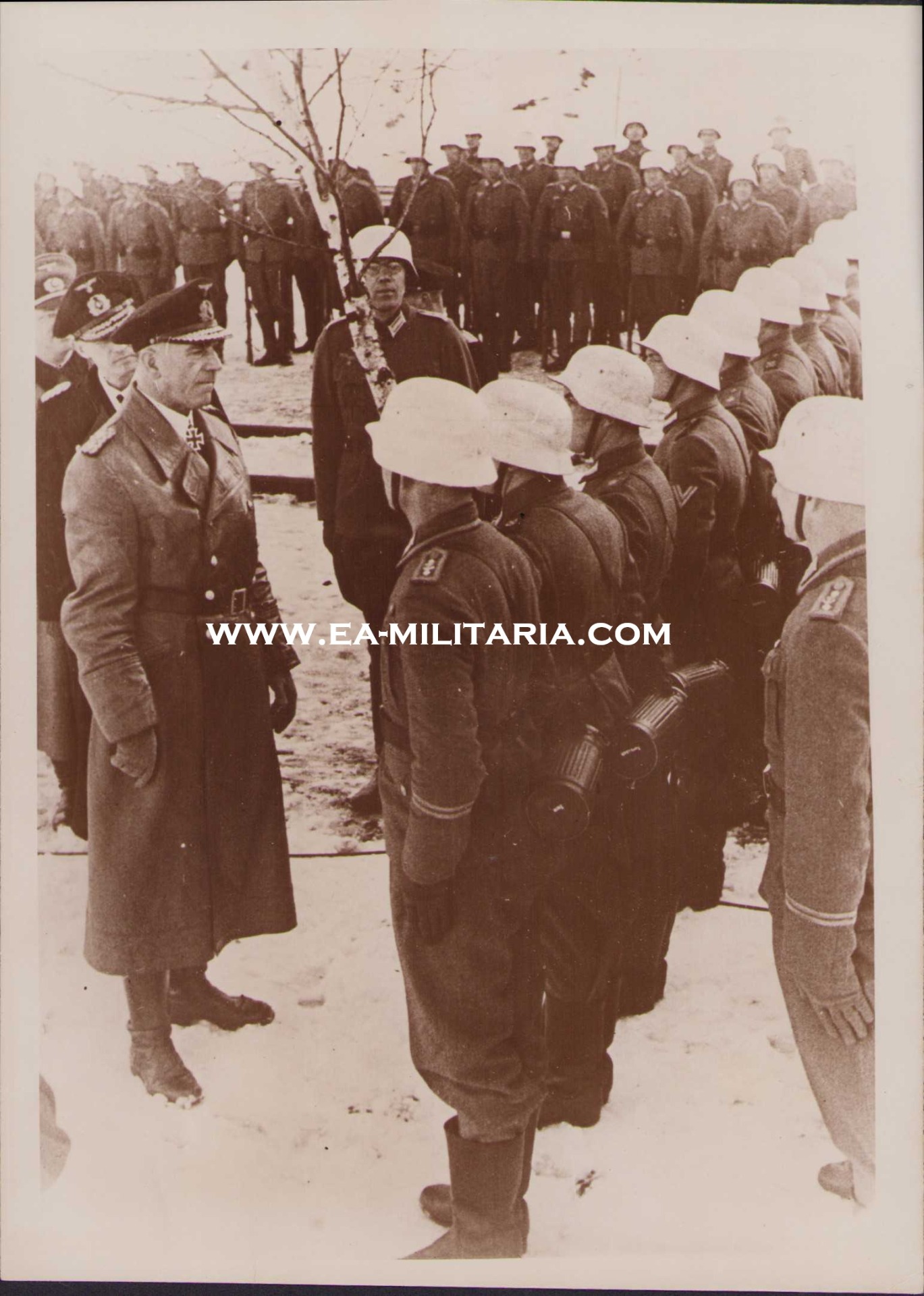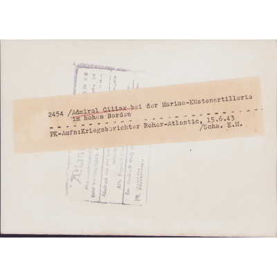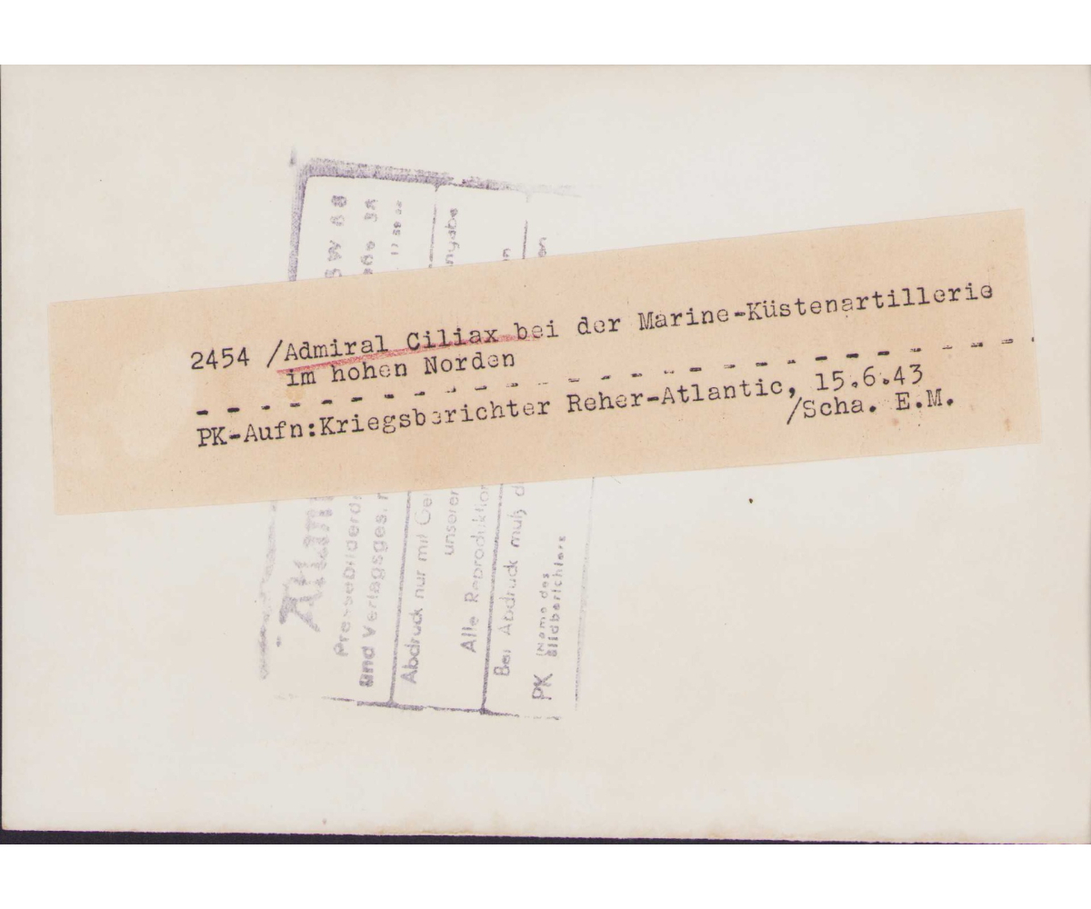 The photographs shows overall normal signs of wear. It's complete with paper caption on the back. Ciliax was Marinebefehlshaber Norwegen the moment the photo was released. Here he is visiting a Küstenartillerie unit. Check out their camo helmets!!
