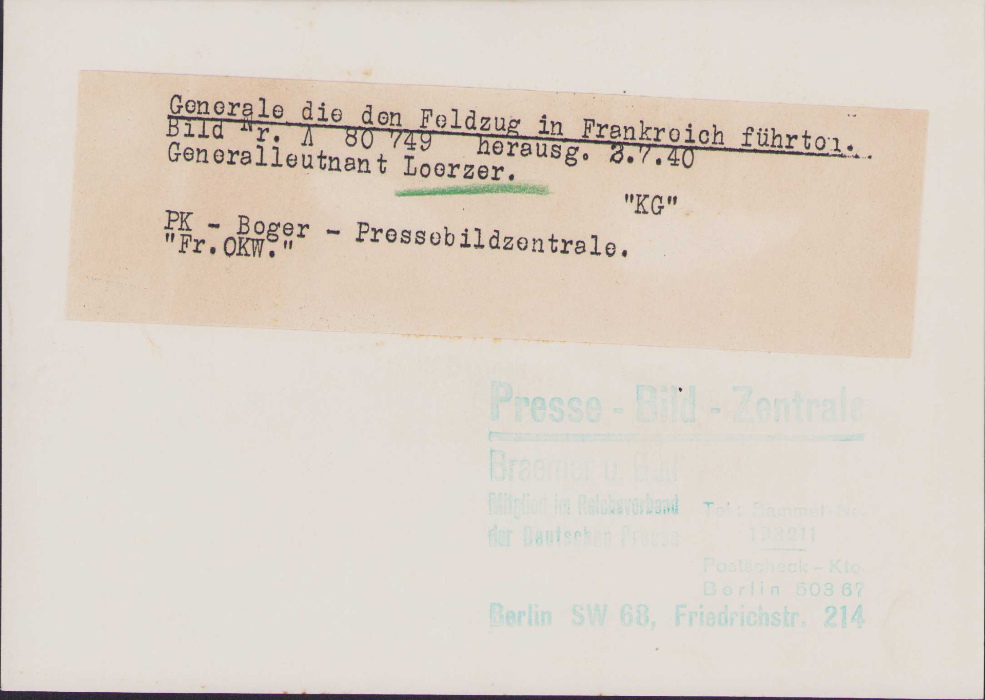 The photographs shows overall normal signs of wear. It's complete with paper caption on the back. General Loerzer was the commander of the II.Fliegerkorps.