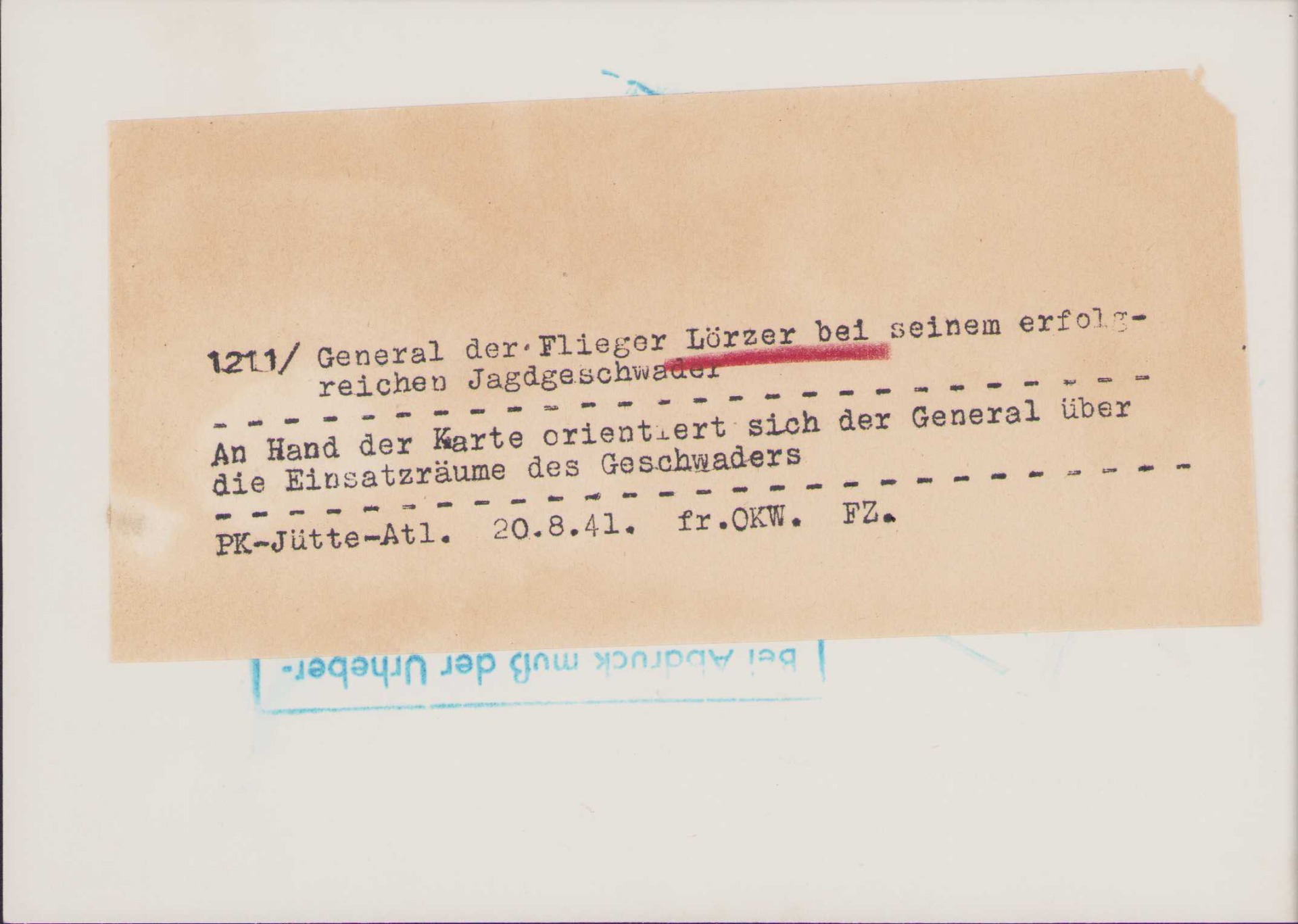 The photographs shows overall normal signs of wear. It's complete with paper caption on the back. General Loerzer was the commander of the II.Fliegerkorps.
